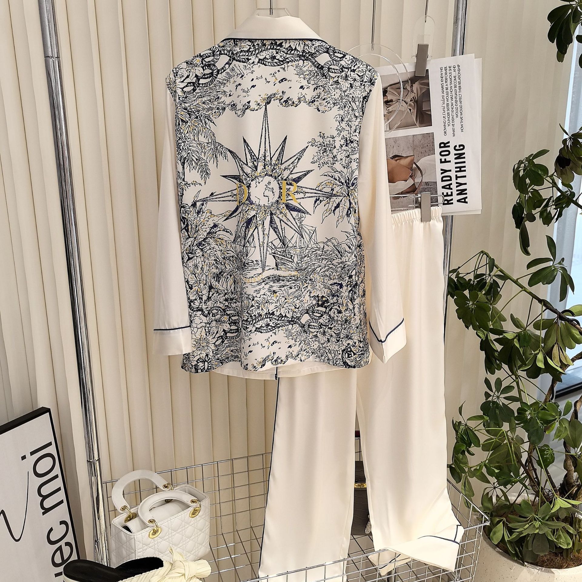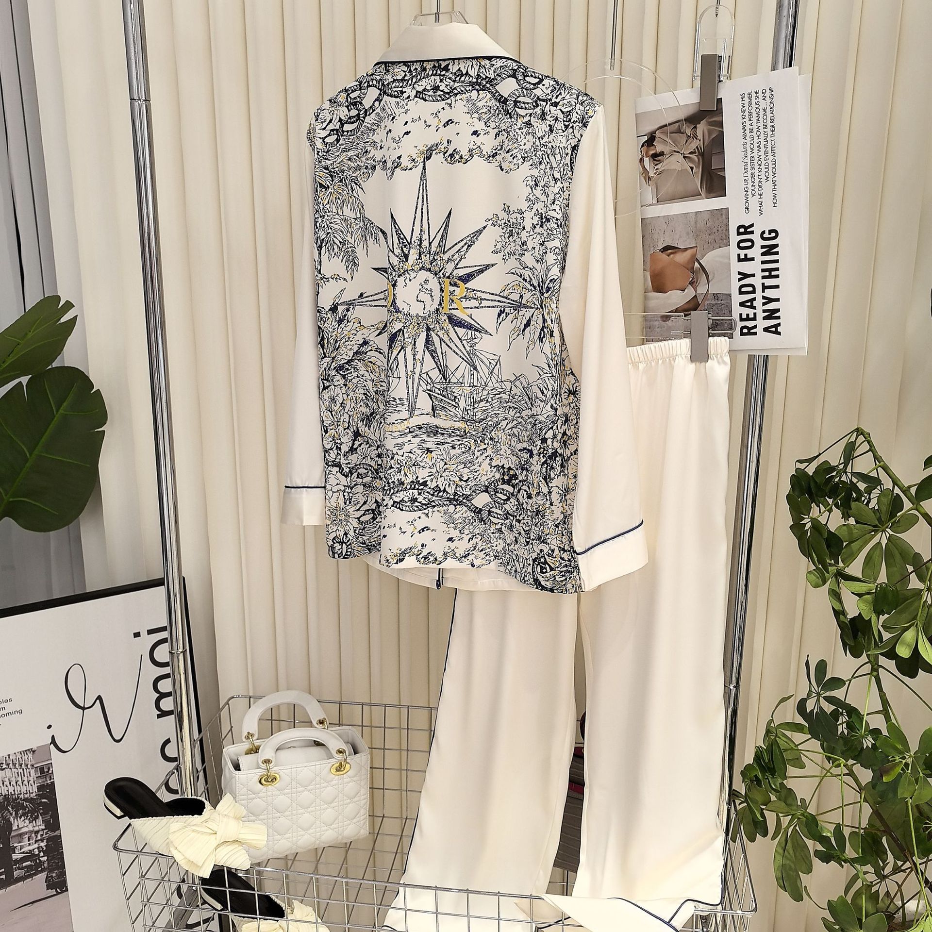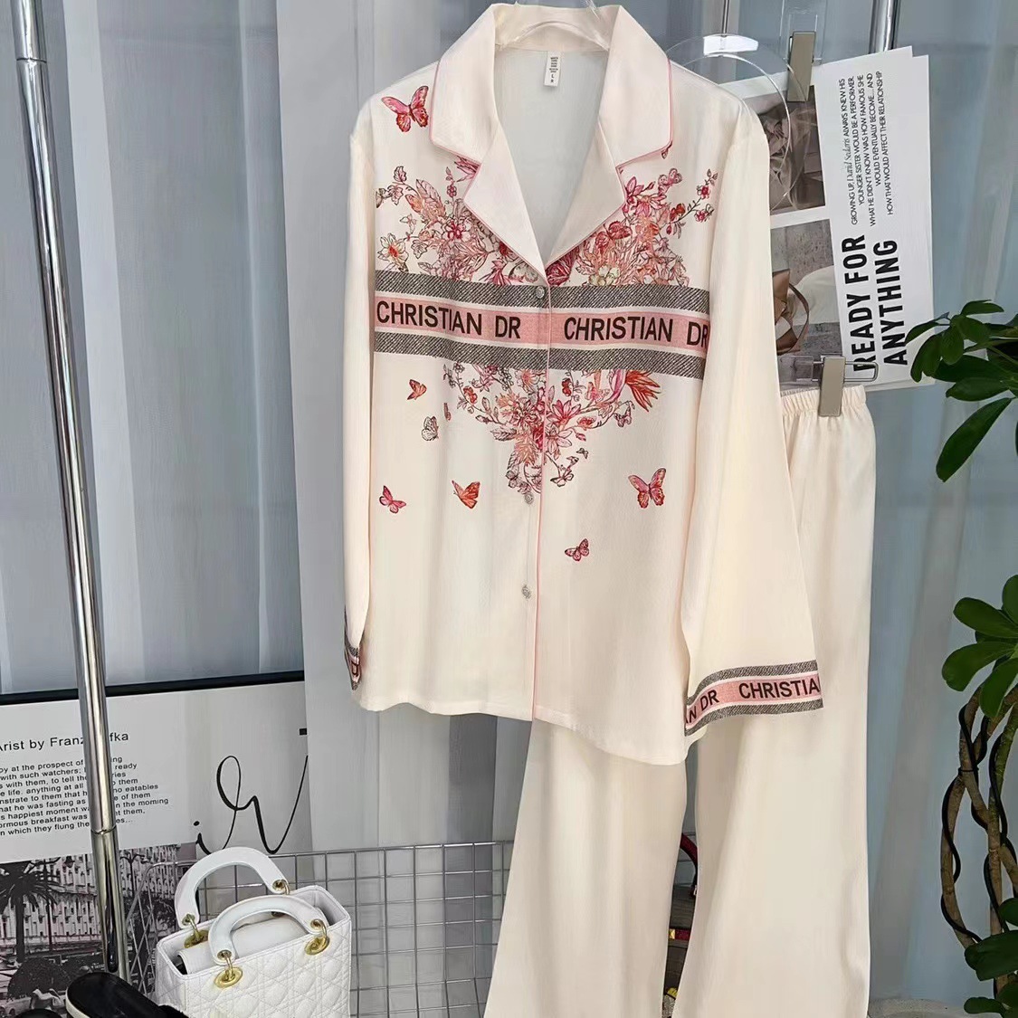 아이스 실크 파자마 여성 여름 반팔 얇은 느슨한 큰 브랜드 긴팔 여성 홈 세트 하이 엔드 투피스 세트