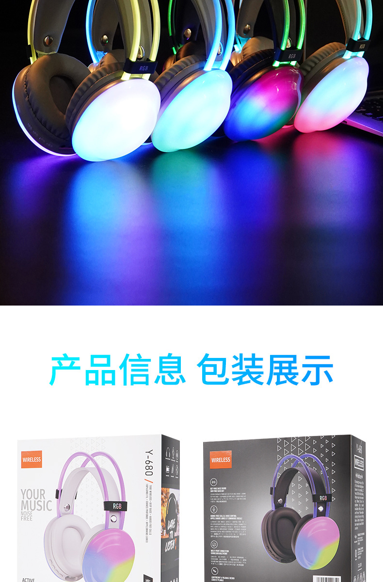 [신간] Y680 국경 블루투스 헤드셋 RGB 스트리머 다채로운 라이트 헤드셋 전자 스포츠 게임 헤드셋스토어 가기