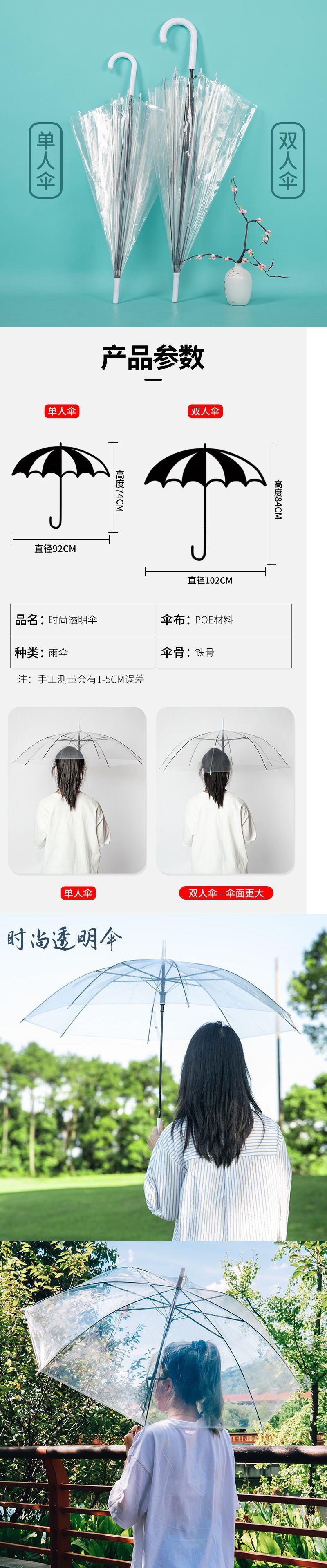 투명 접는 우산 투명 우산 대형 더블 남성과 여성의 인터넷 인기 학생 접히는 긴 손잡이 간단한 어린이 비스토어 가기