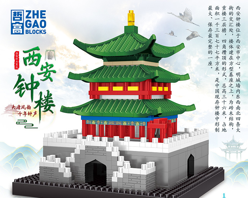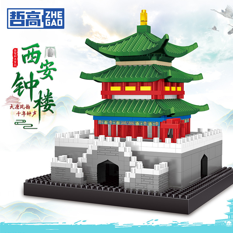 Lezi 8312-13 Xi 'an Bell Tower 마이크로 다이아몬드 빌딩 시리즈 조립 건물 블록 장난감 장식품 어린이 선물스토어 가기