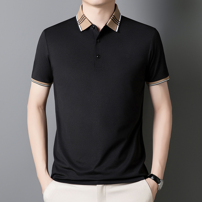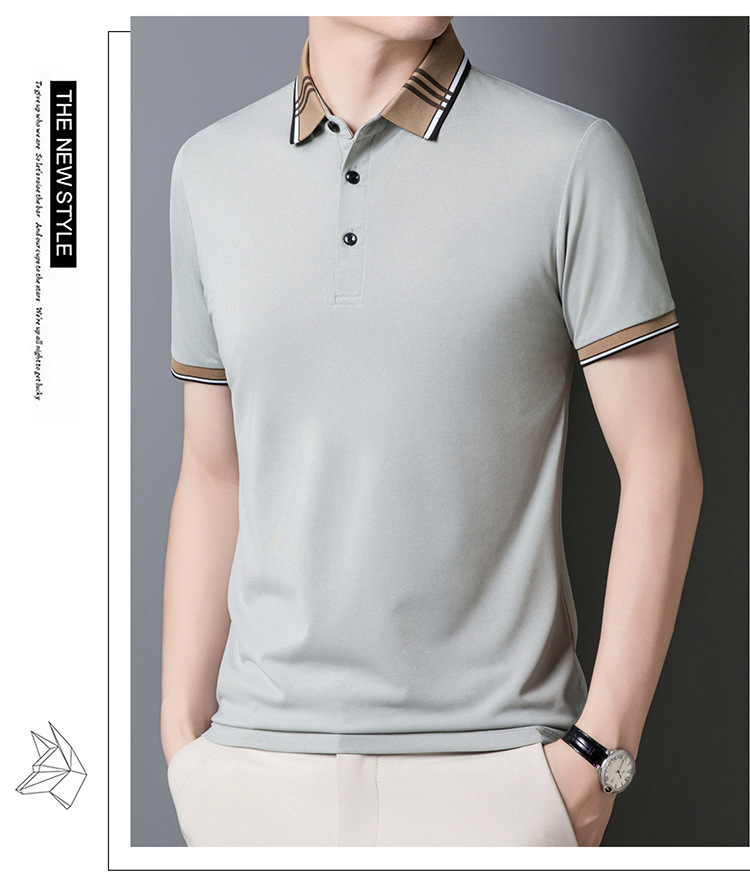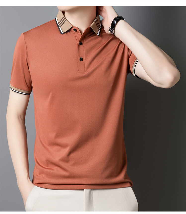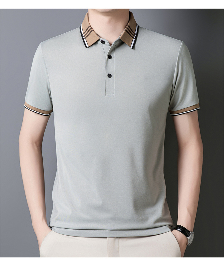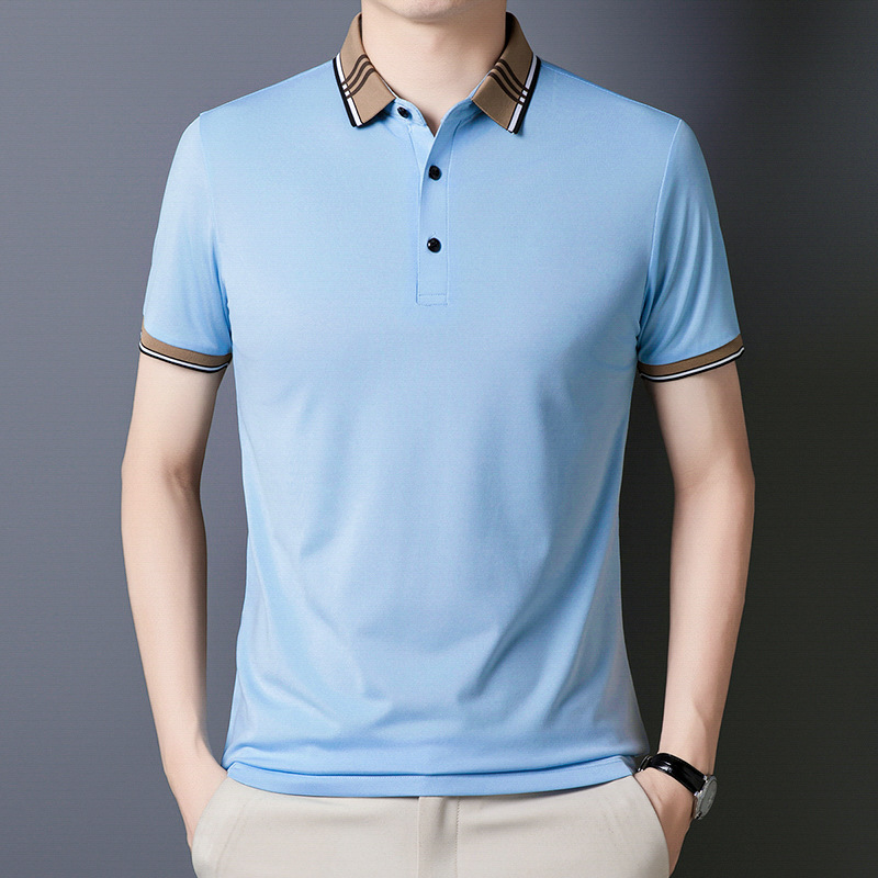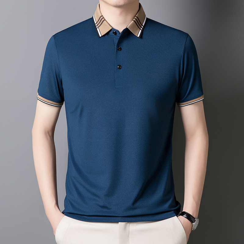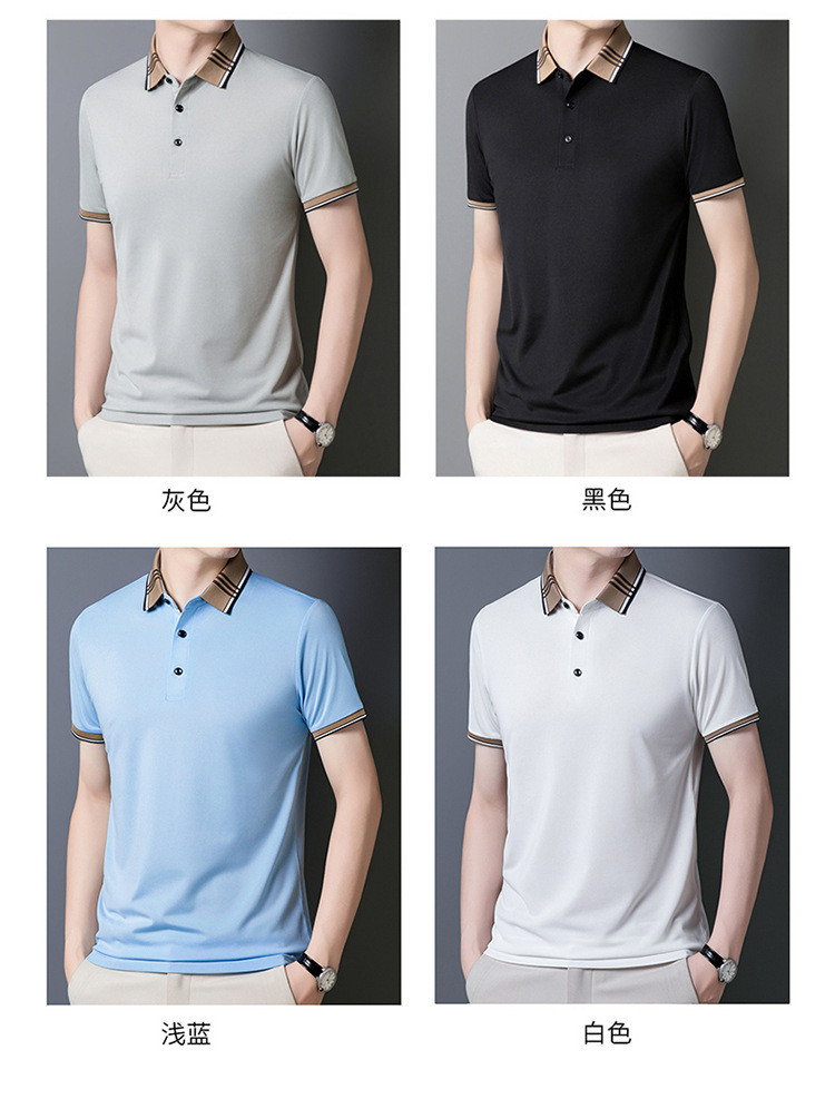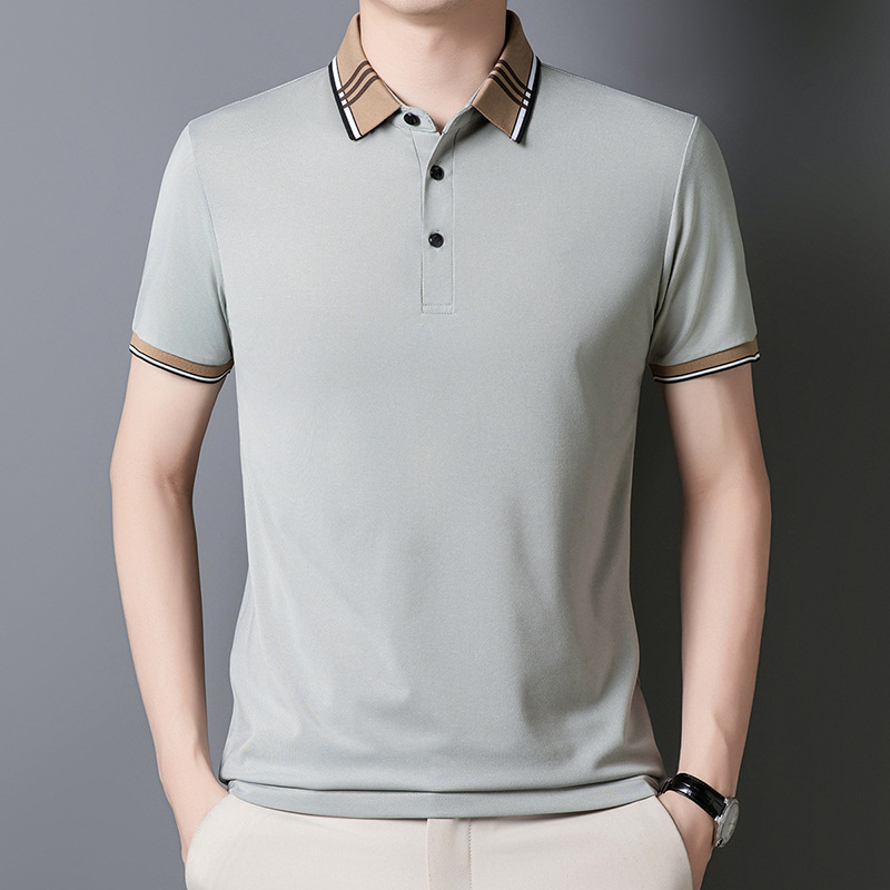 여름 신작 남성 반팔 폴로 셔츠 청년 및 중년 캐주얼 비즈니스 라펠 솔리드 컬러 반팔 탑 남성 트렌디 쇼트 T