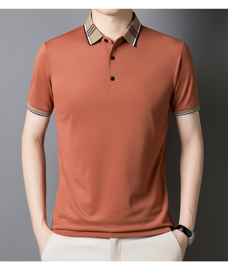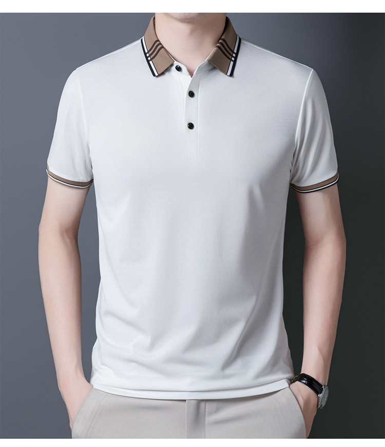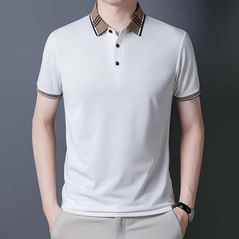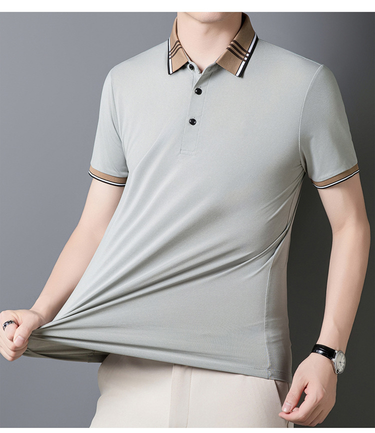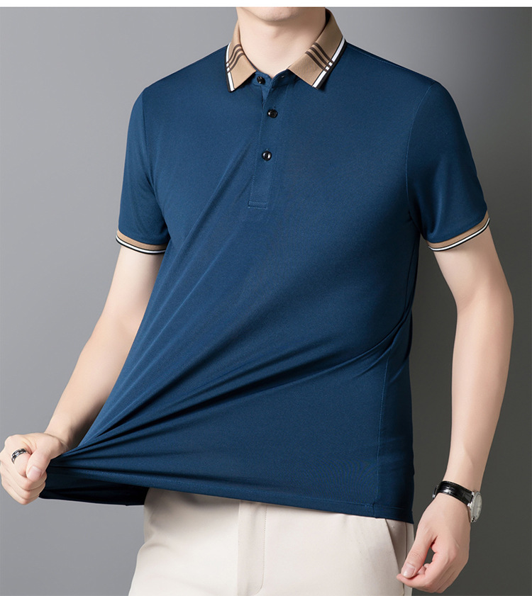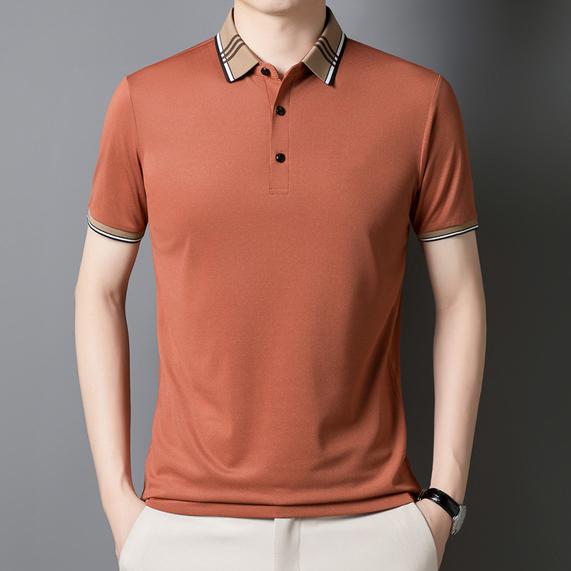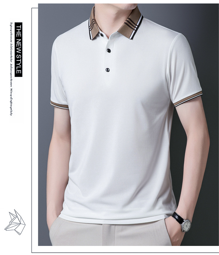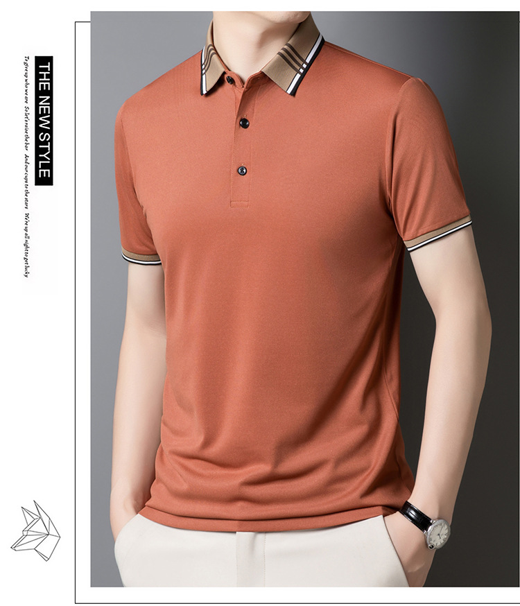 여름 신작 남성 반팔 폴로 셔츠 청년 및 중년 캐주얼 비즈니스 라펠 솔리드 컬러 반팔 탑 남성 트렌디 쇼트 T