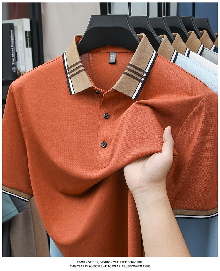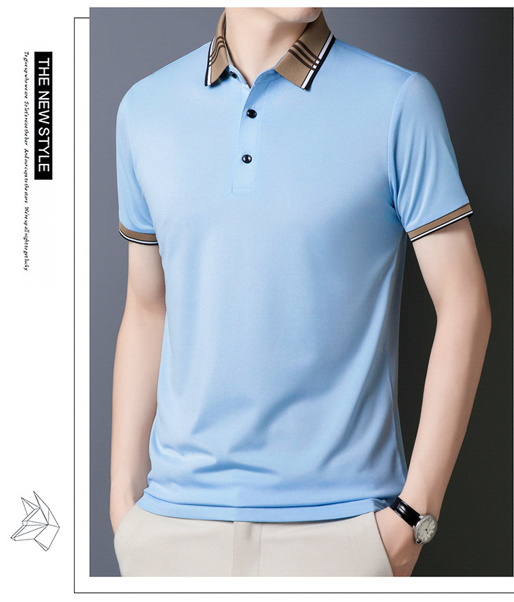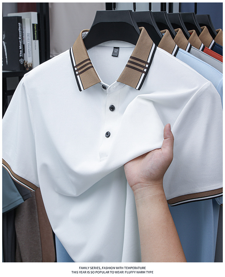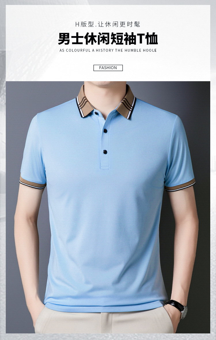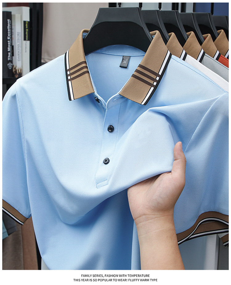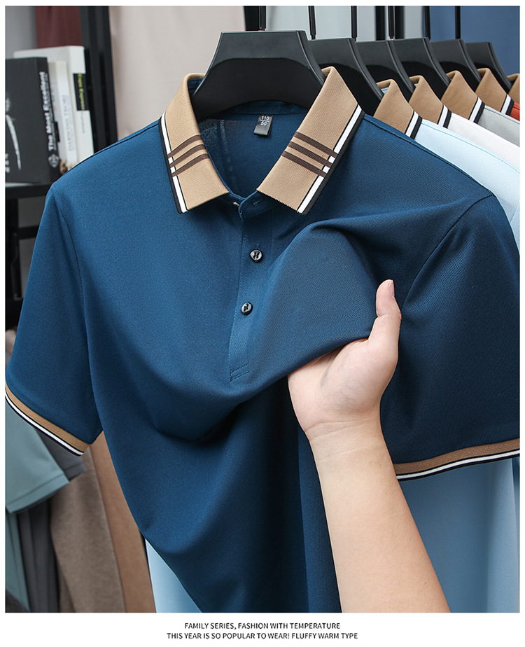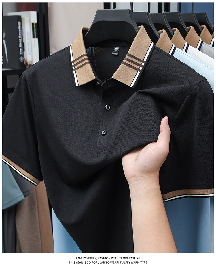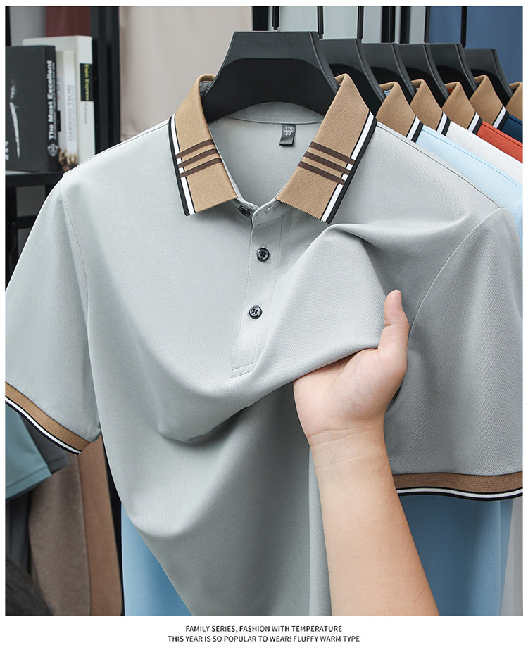 여름 신작 남성 반팔 폴로 셔츠 청년 및 중년 캐주얼 비즈니스 라펠 솔리드 컬러 반팔 탑 남성 트렌디 쇼트 T스토어 가기