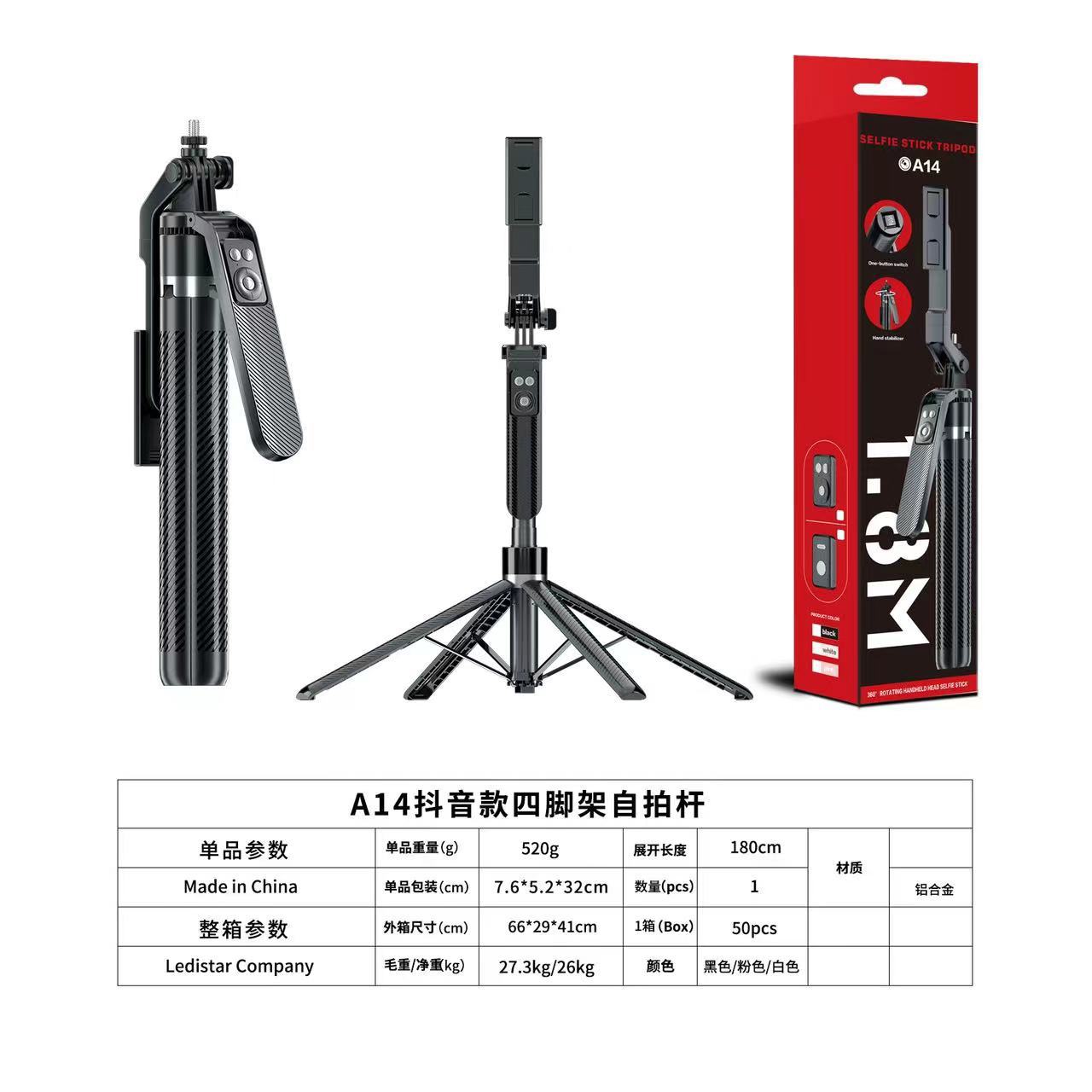 알루미늄 합금 A14 셀카봉 2.2m 다기능 삼각대 리모컨 손떨림 방지 Gopro 조명 삼각대