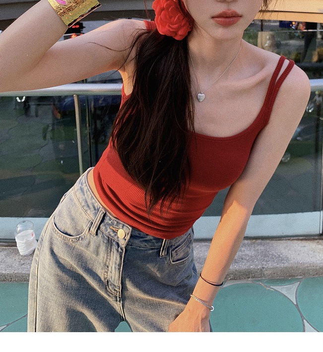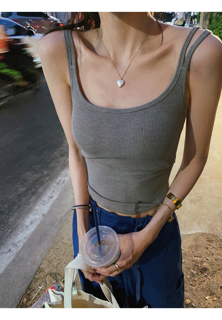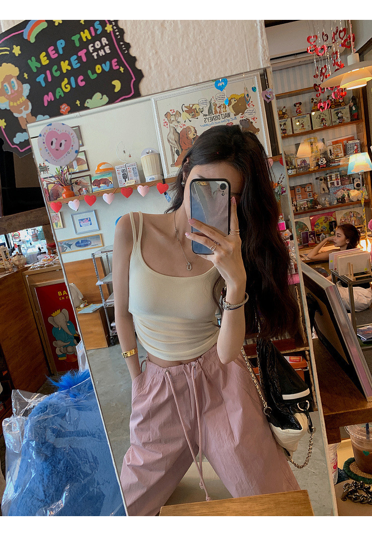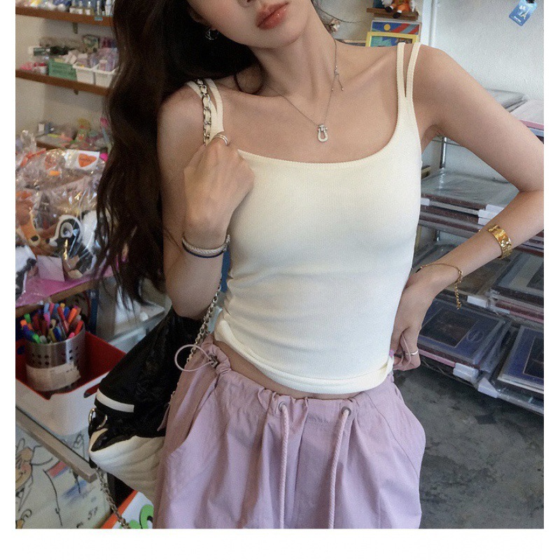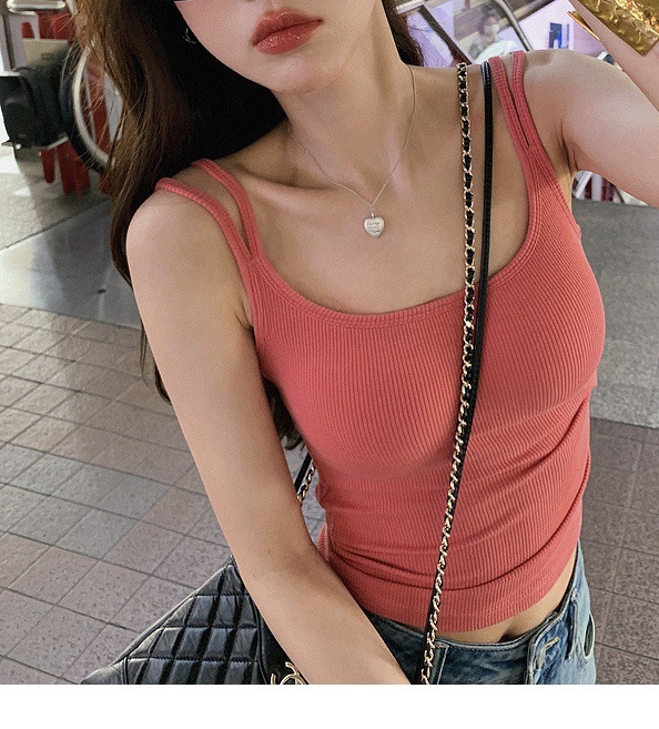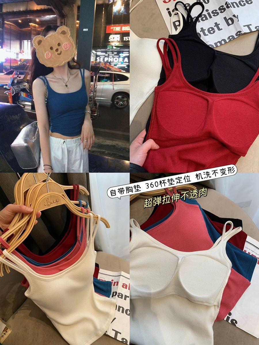 사계절 내내 착용 가능한 여성용 이너웨어 캐미솔, 가슴 패드 포함, 90% 비스코스, 프리사이즈 40-62.5kg 패셔너블하고 다용도이며 편안합니다.스토어 가기