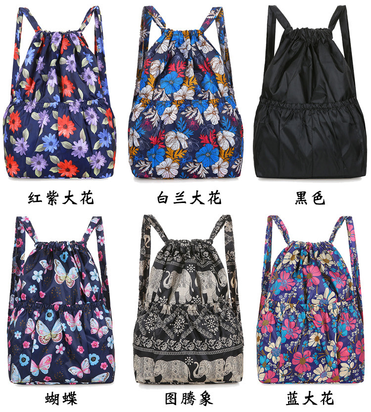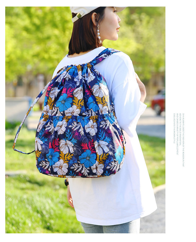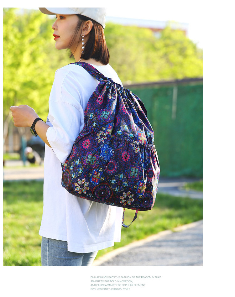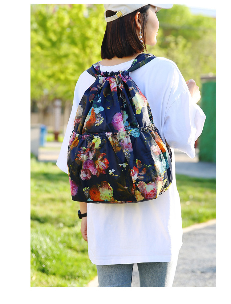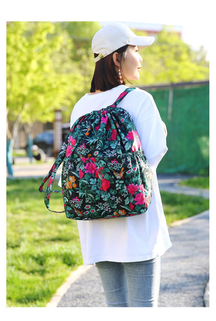 드로우 스트링 포켓 인쇄 가방 중년 및 노인 배낭 가방 쇼핑백 대용량 나일론 천 어머니 배낭