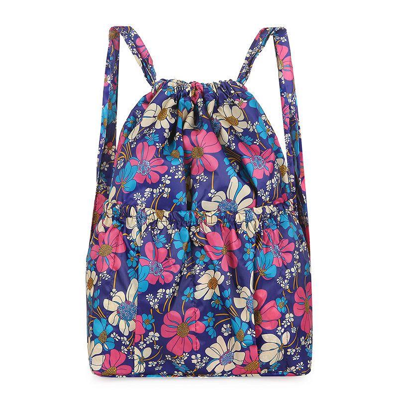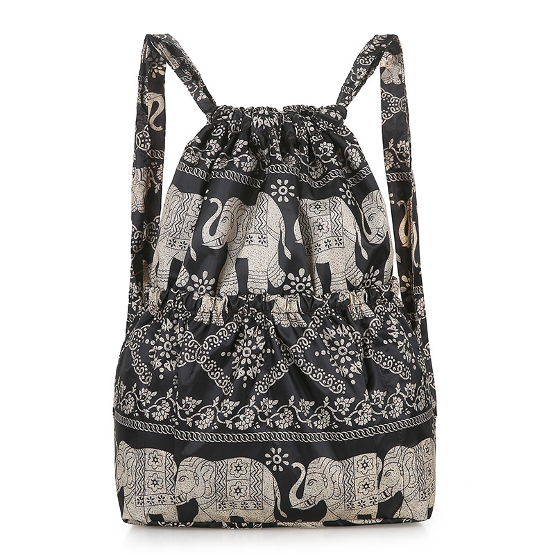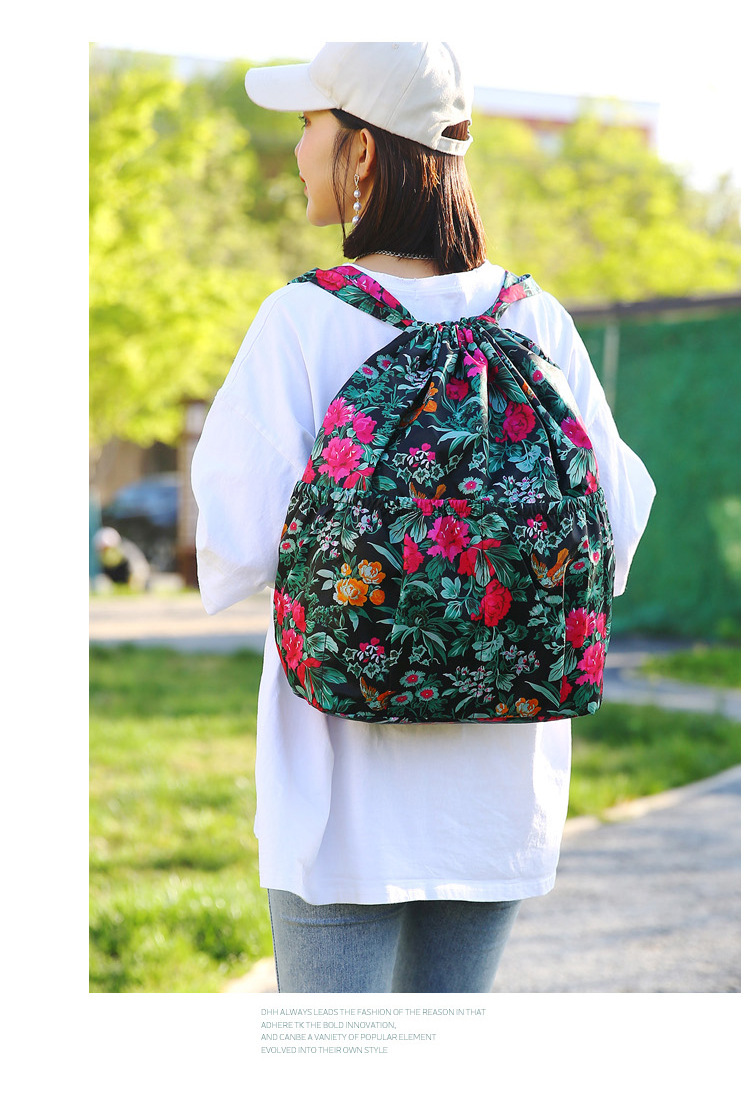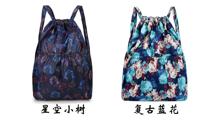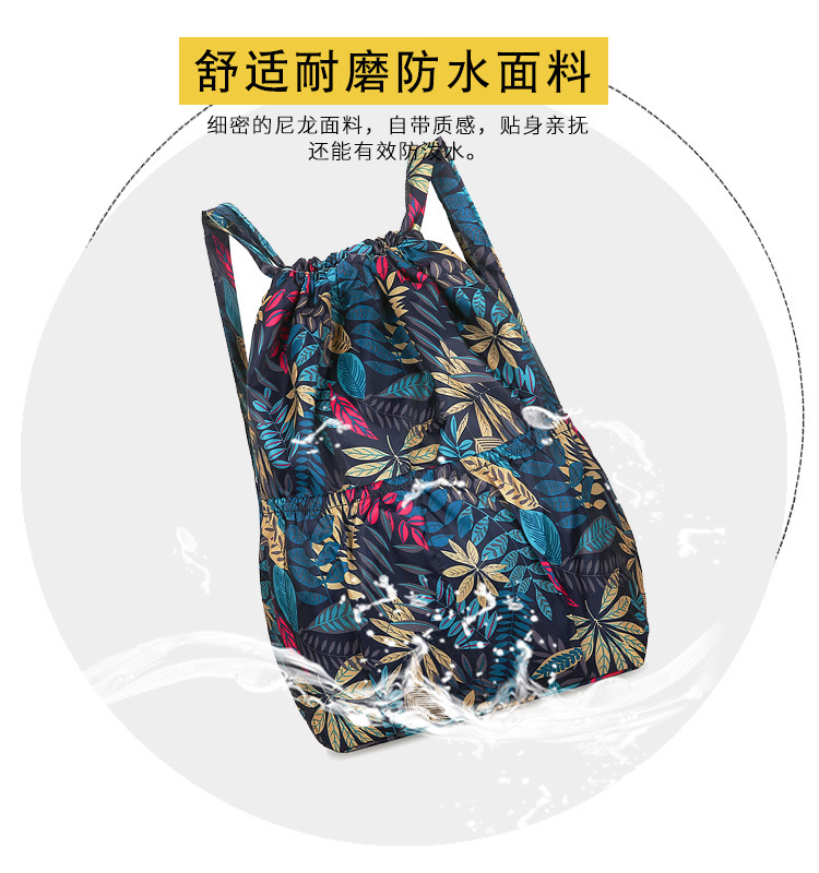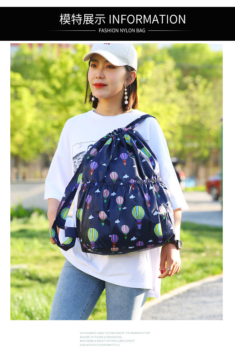 드로우 스트링 포켓 인쇄 가방 중년 및 노인 배낭 가방 쇼핑백 대용량 나일론 천 어머니 배낭