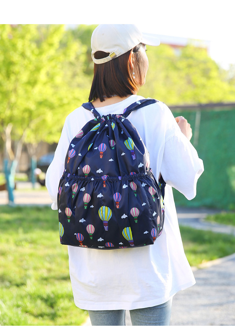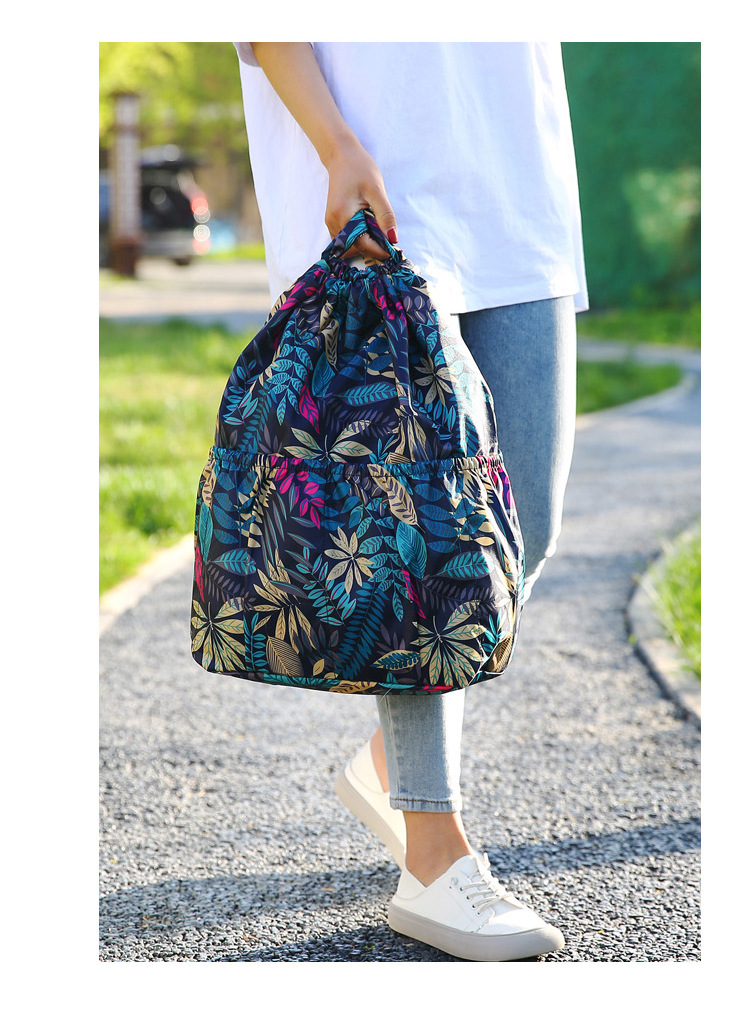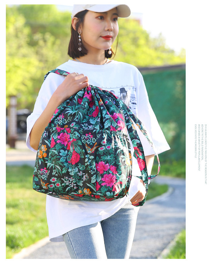드로우 스트링 포켓 인쇄 가방 중년 및 노인 배낭 가방 쇼핑백 대용량 나일론 천 어머니 배낭스토어 가기
