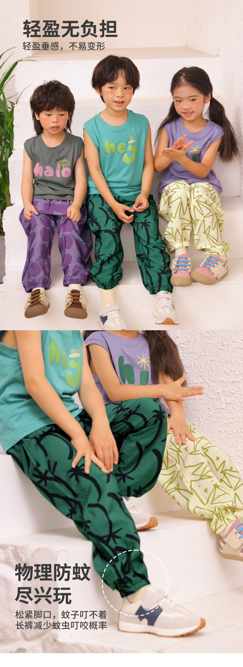 미니 존 어린이 여름 새로운 도착 바지 남성용 모기 방지 바지 경량 통기성 느슨한 소녀 얇은 발목 바지