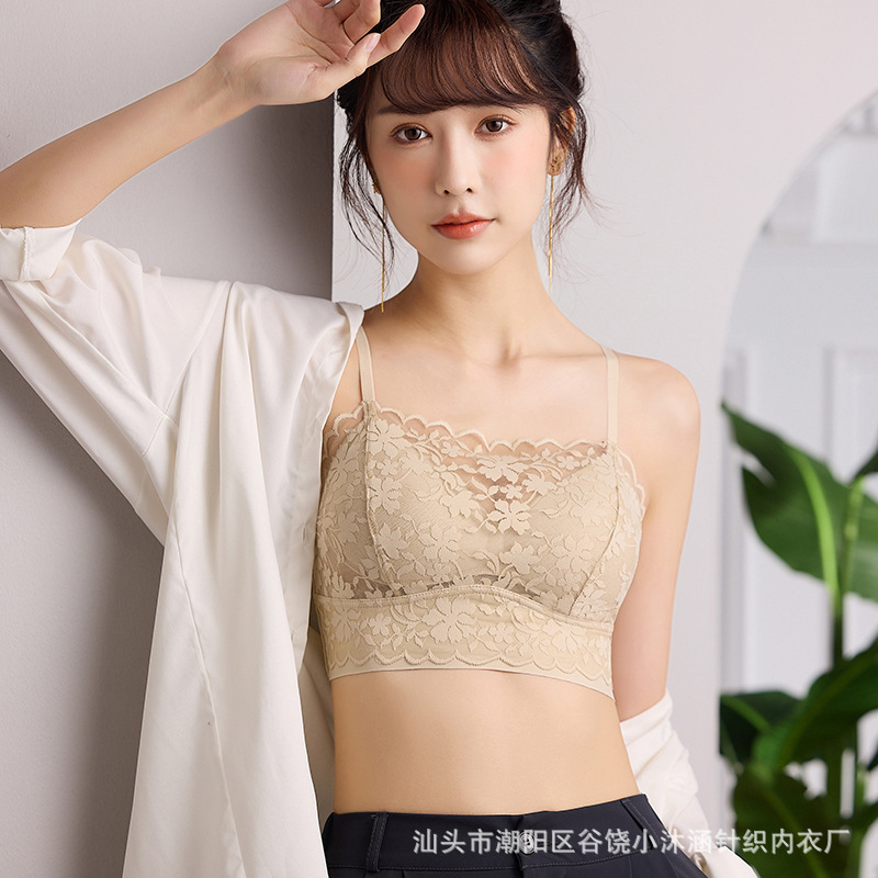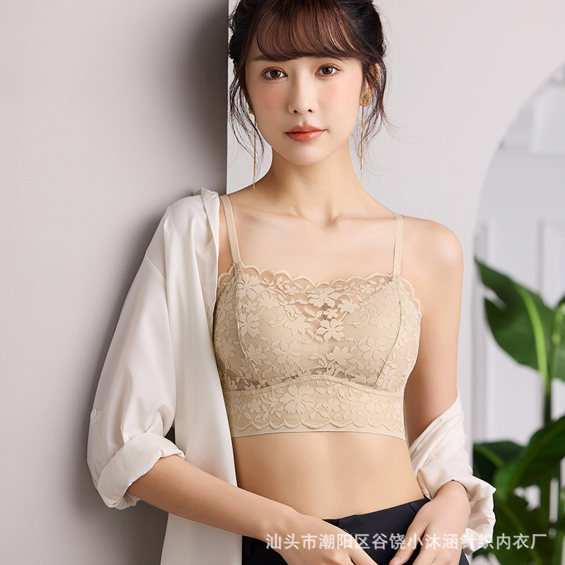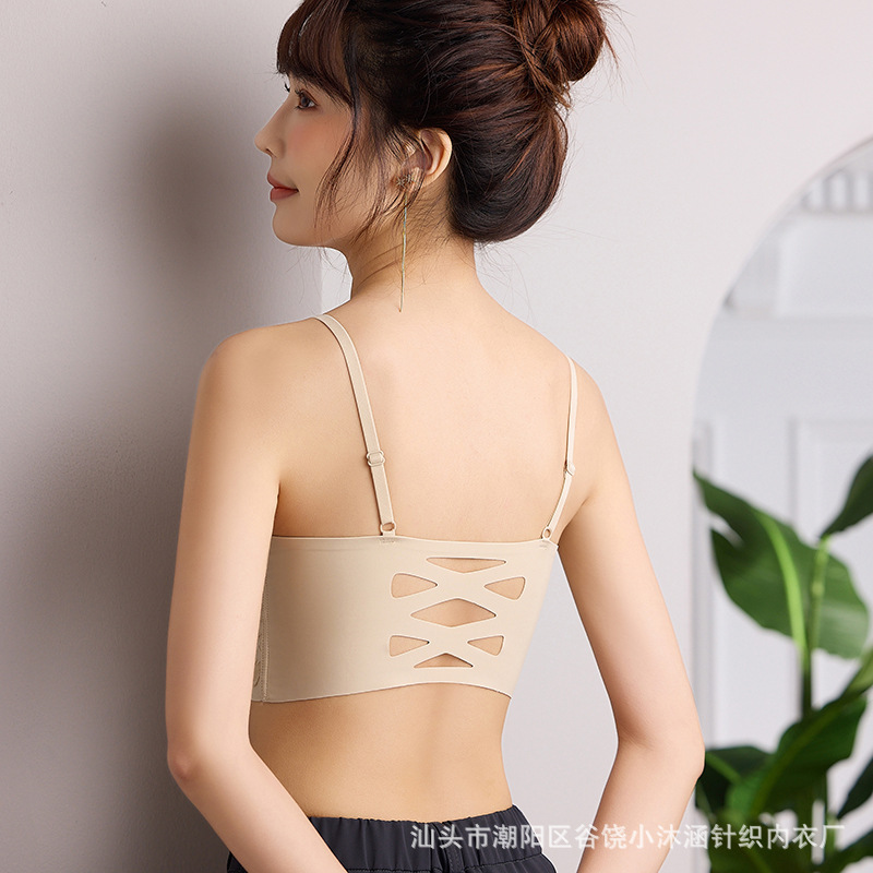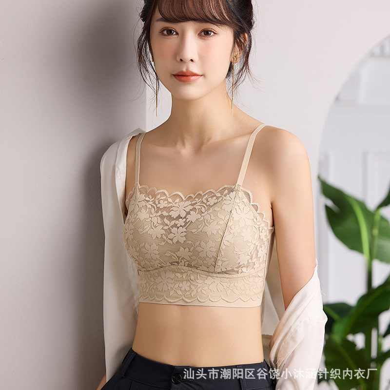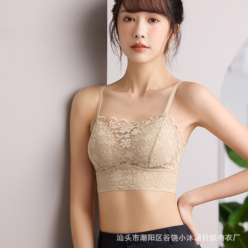 봄과 여름 새로운 레이스 백 튜브 상단 얼음 실크 스티칭 고정 컵 작은 캐미솔 Shang Qianni 9132