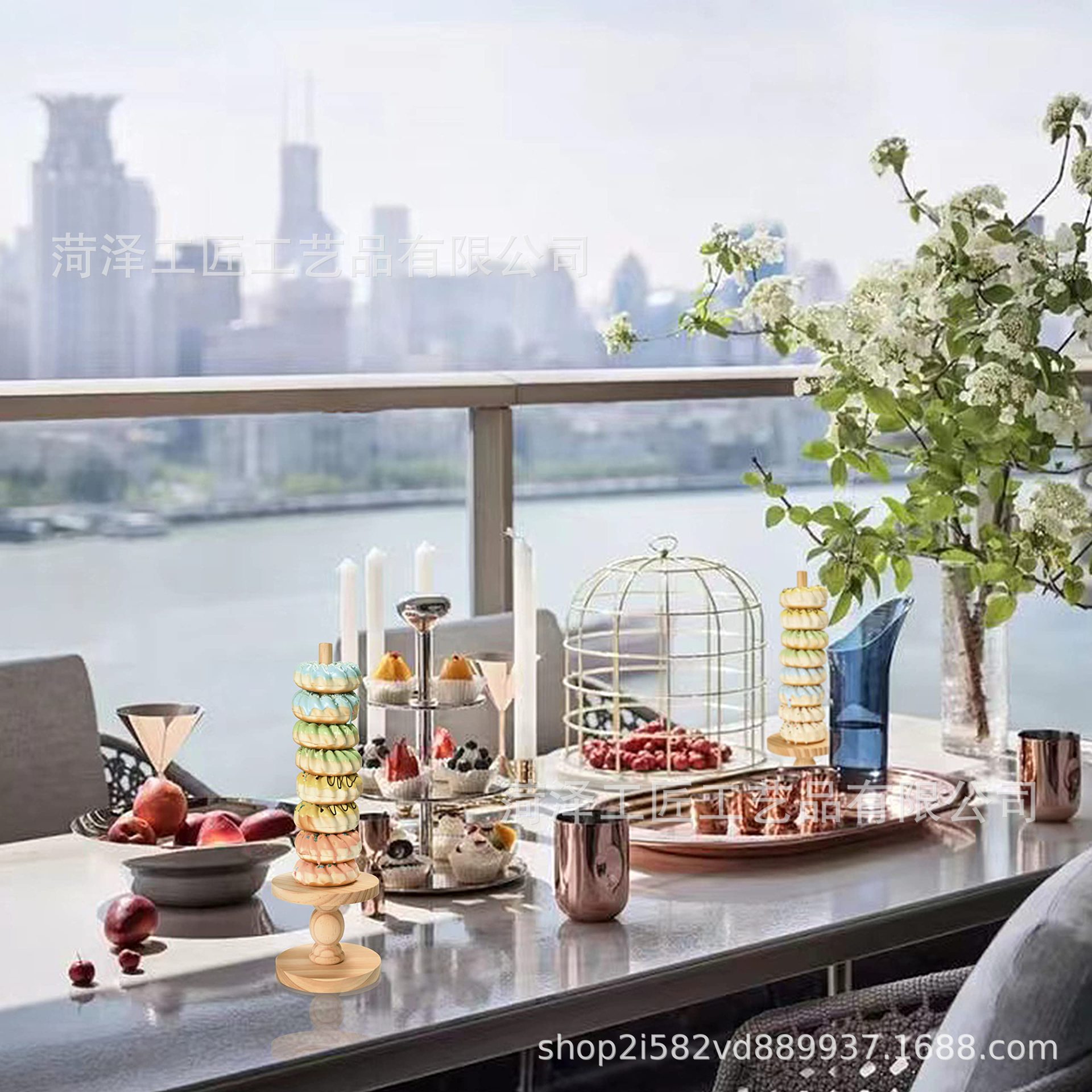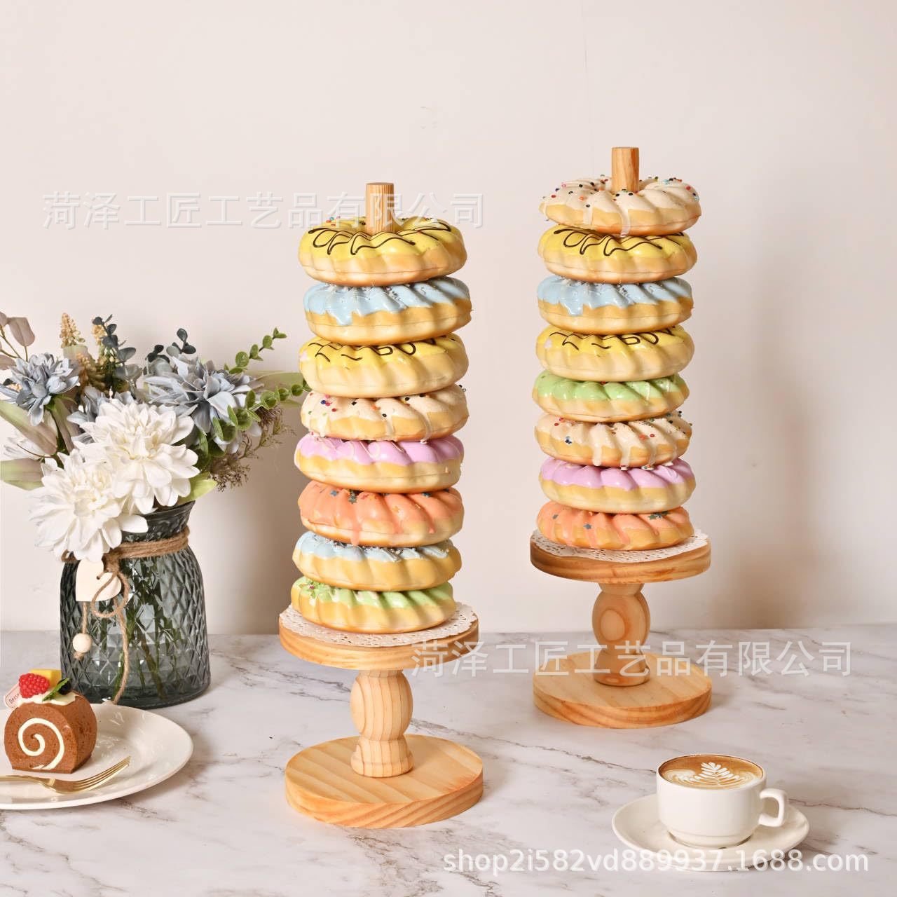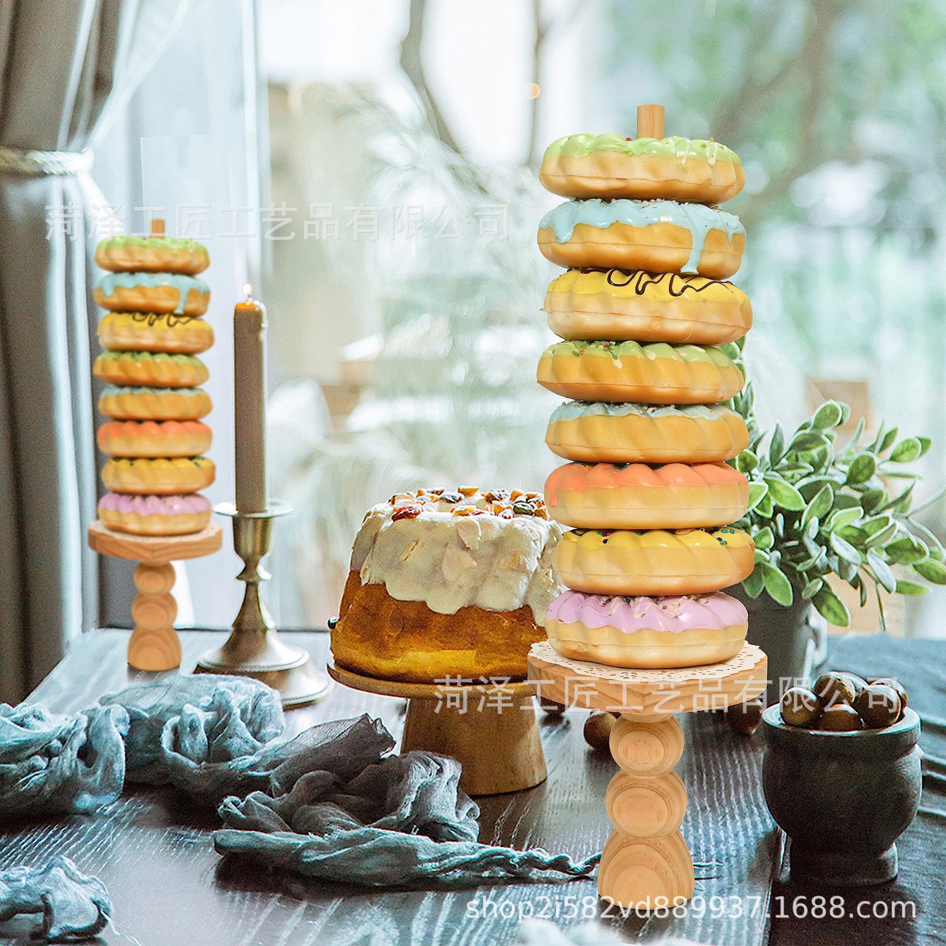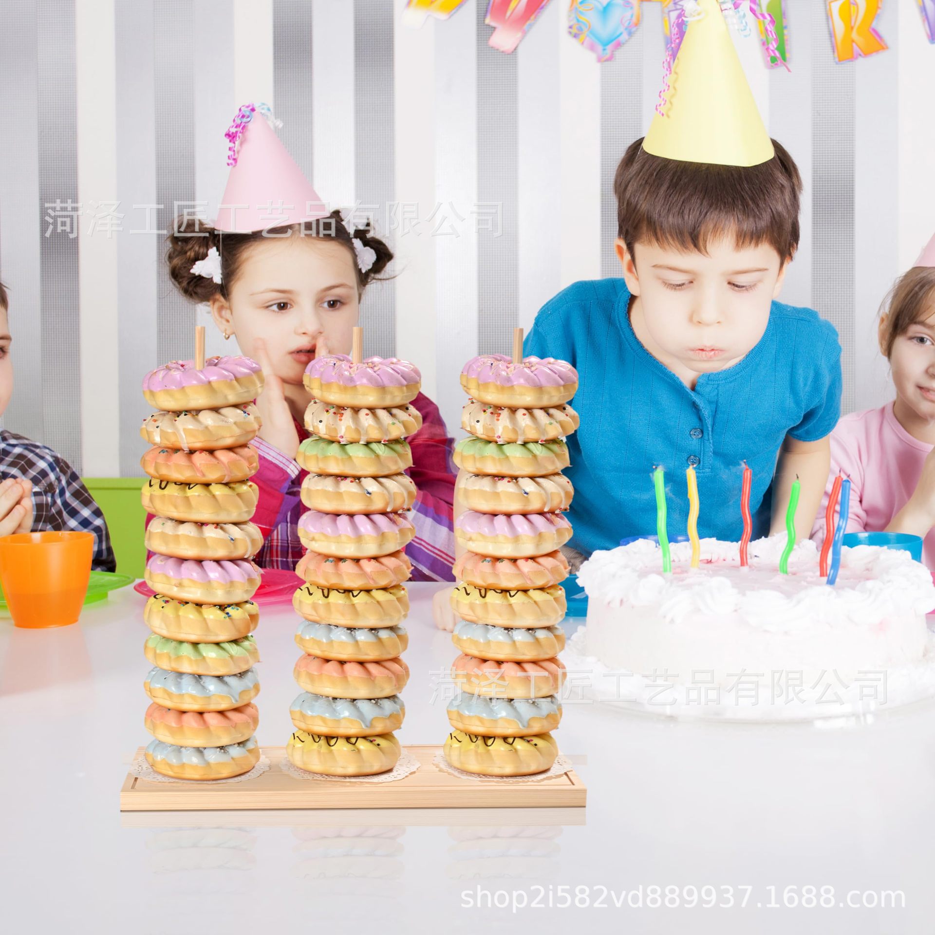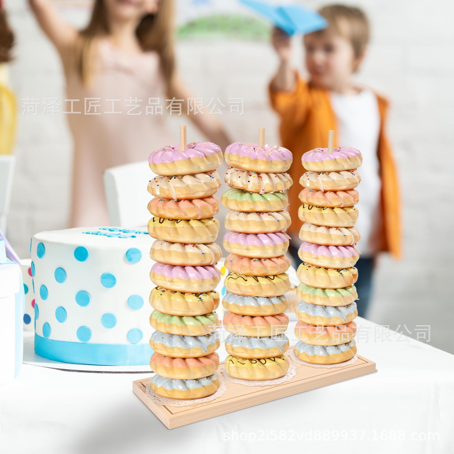 나무 도넛 선반 장식품 미국 국가 생일 파티 장식 키즈 베이비 샤워 축제 파티 용품