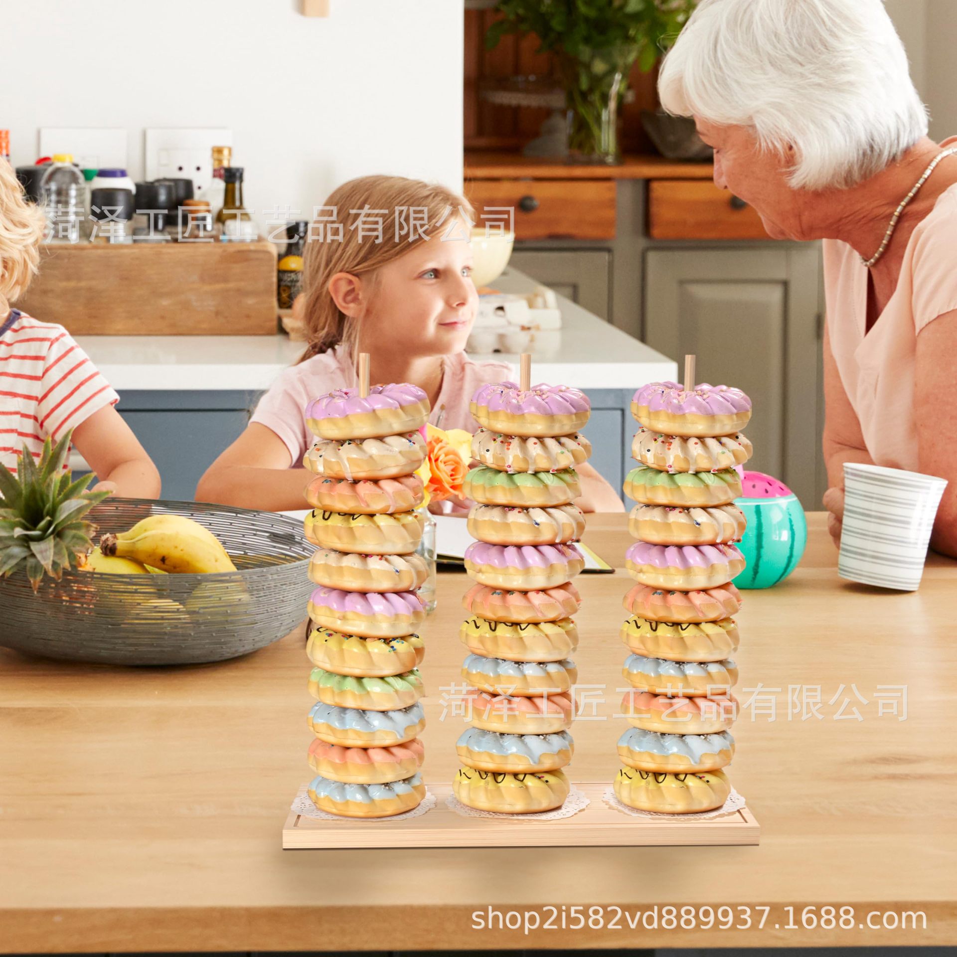 나무 도넛 선반 장식품 미국 국가 생일 파티 장식 키즈 베이비 샤워 축제 파티 용품스토어 가기