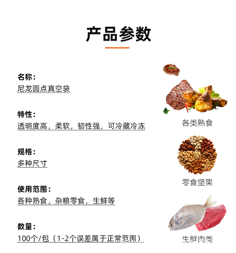 곡물 식품 포장 진공 가방 플라스틱 메쉬 가방 투명 밀봉 된 도트 보존 가정용 PA 곡물 롤 백