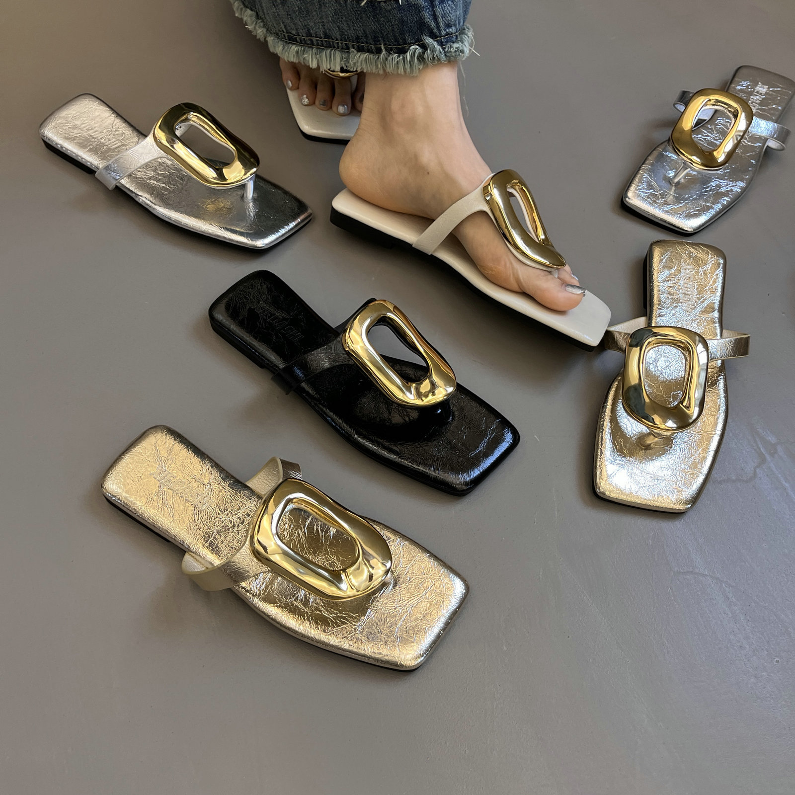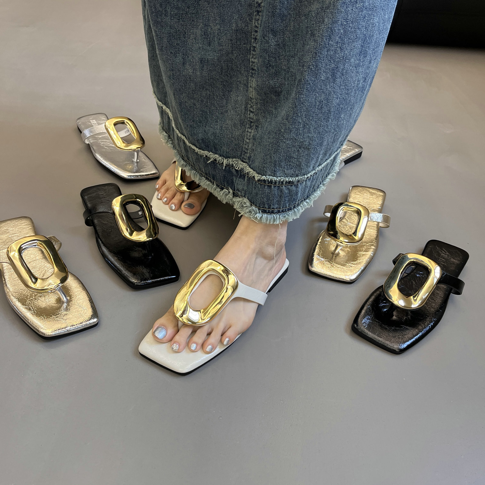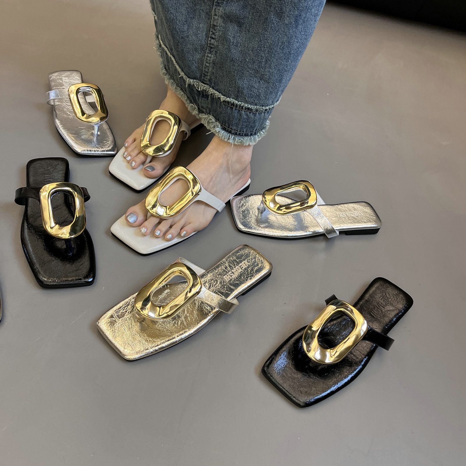 41-43 사이즈 대형 여성 신발 중공 메쉬 신발 여성 여름 새 겉옷 인터넷 연예인 다목적 로우 힐 라인스톤 슬리퍼 42스토어 가기