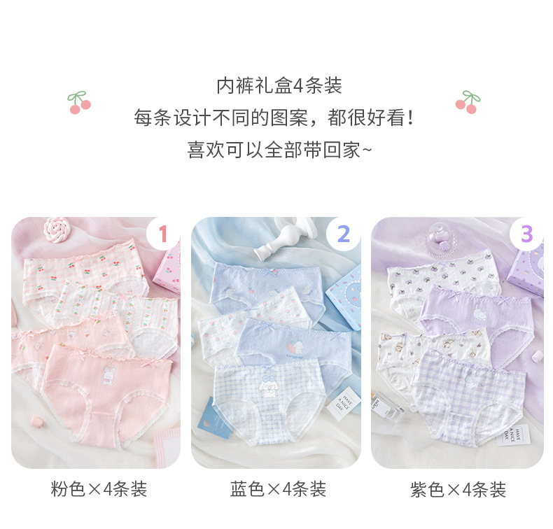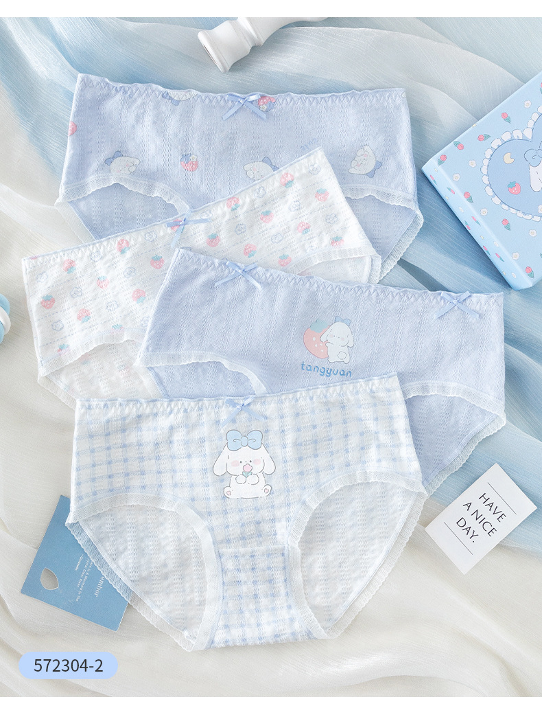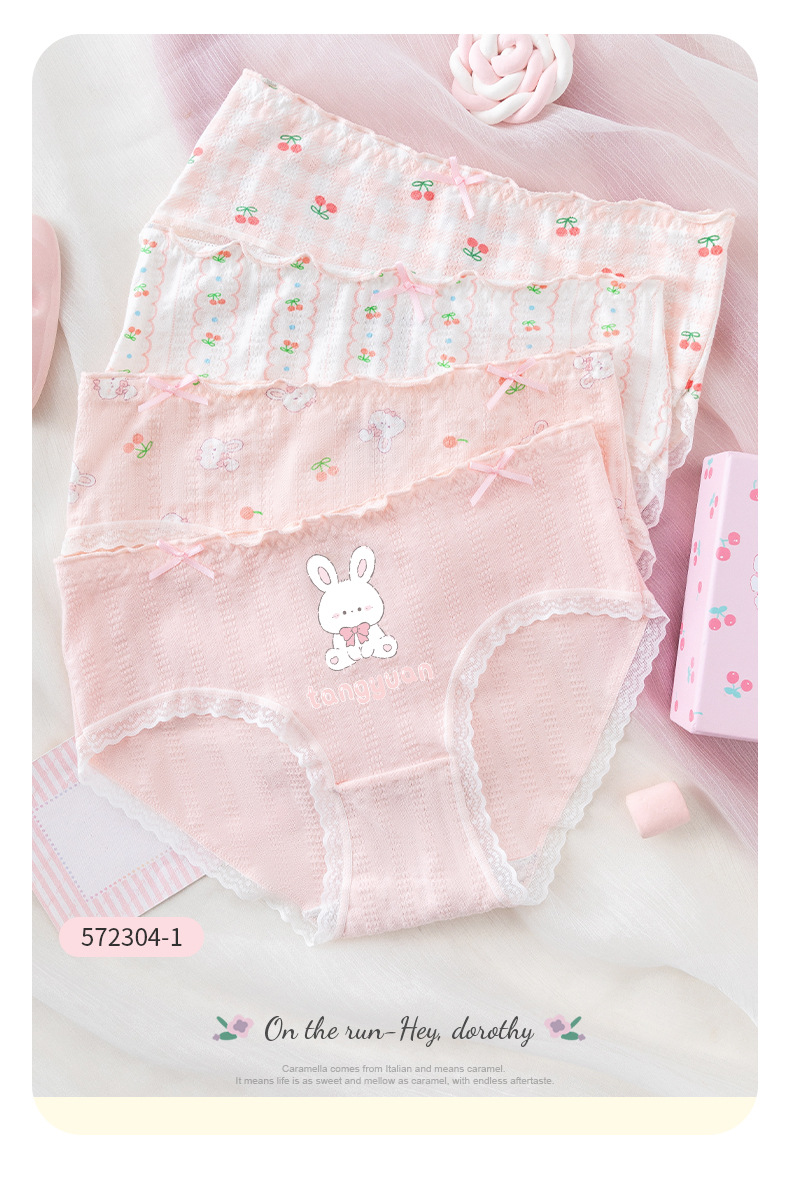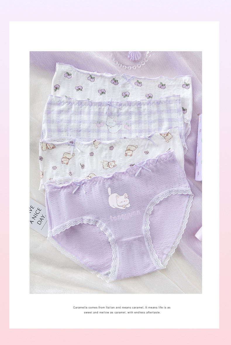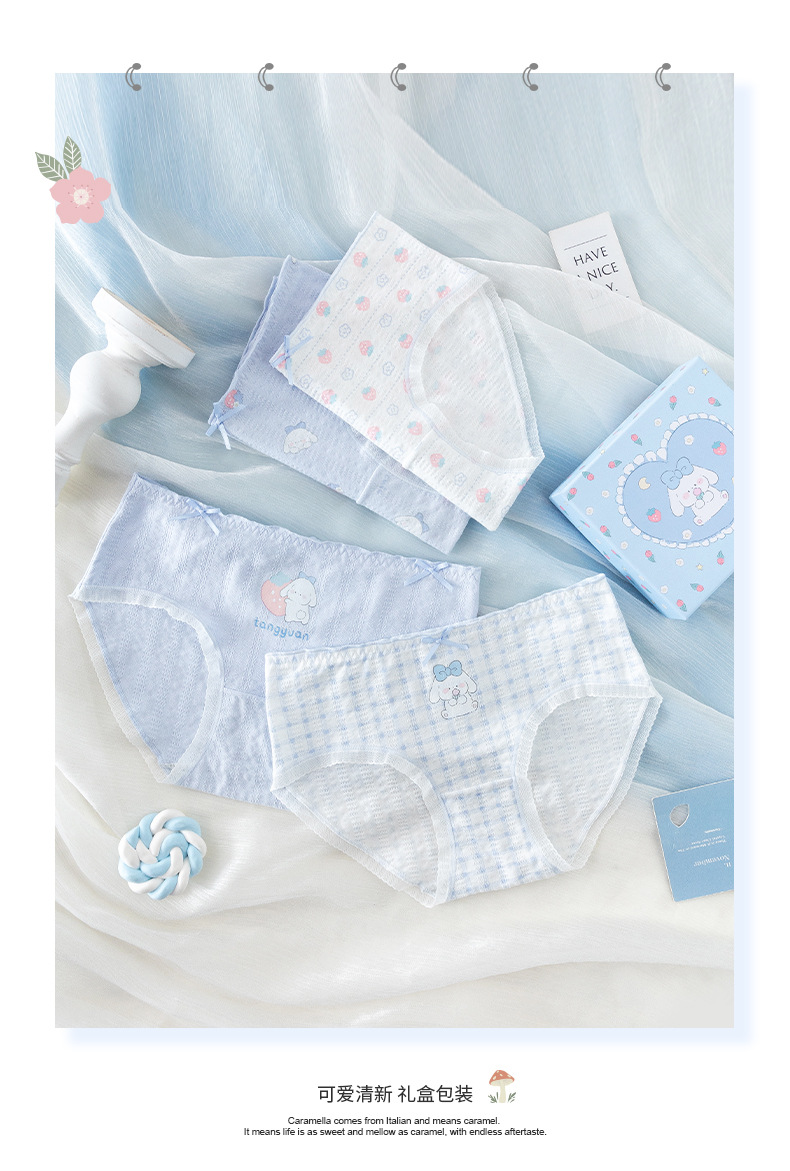 카라멜라 속옷 여성용 여름 얇은 순수 코튼 Crotch 항균 통기성 중간 허리 브리프 귀여운 소녀 반바지스토어 가기