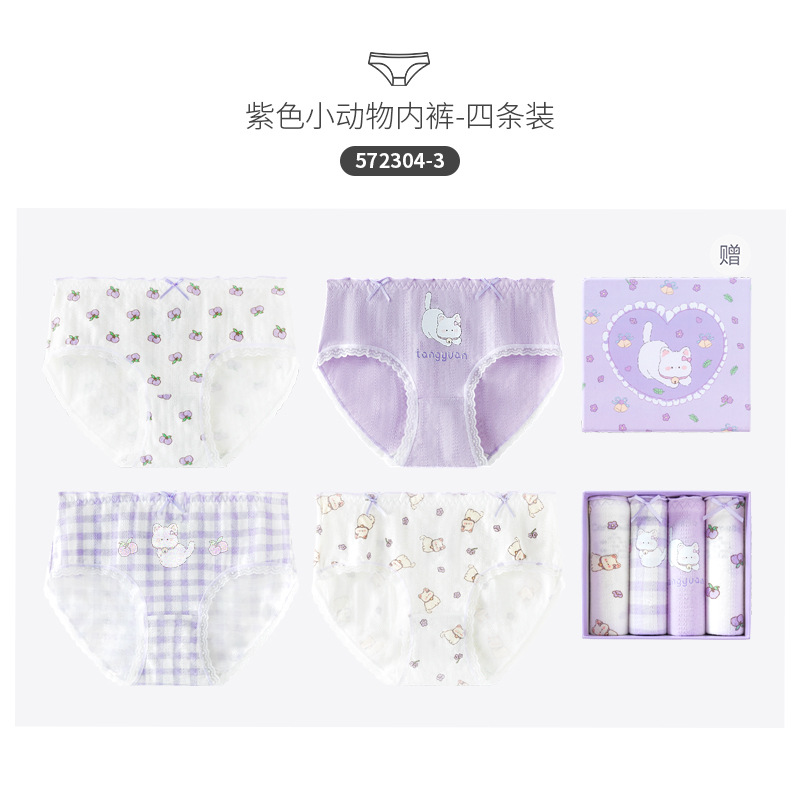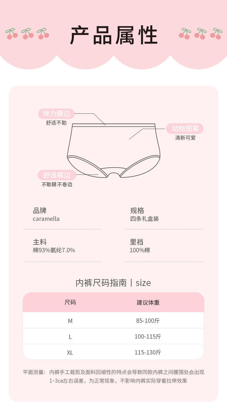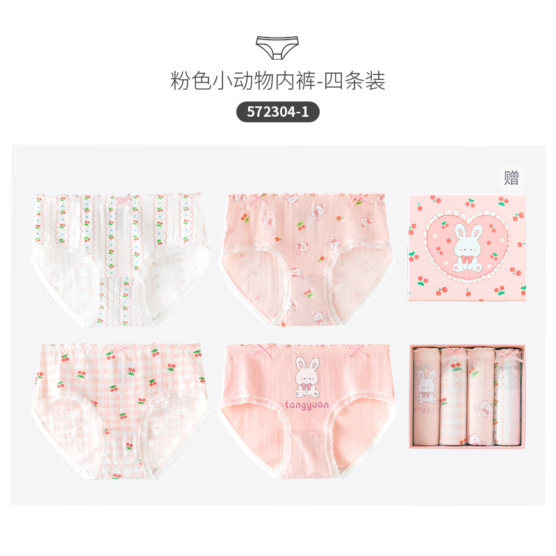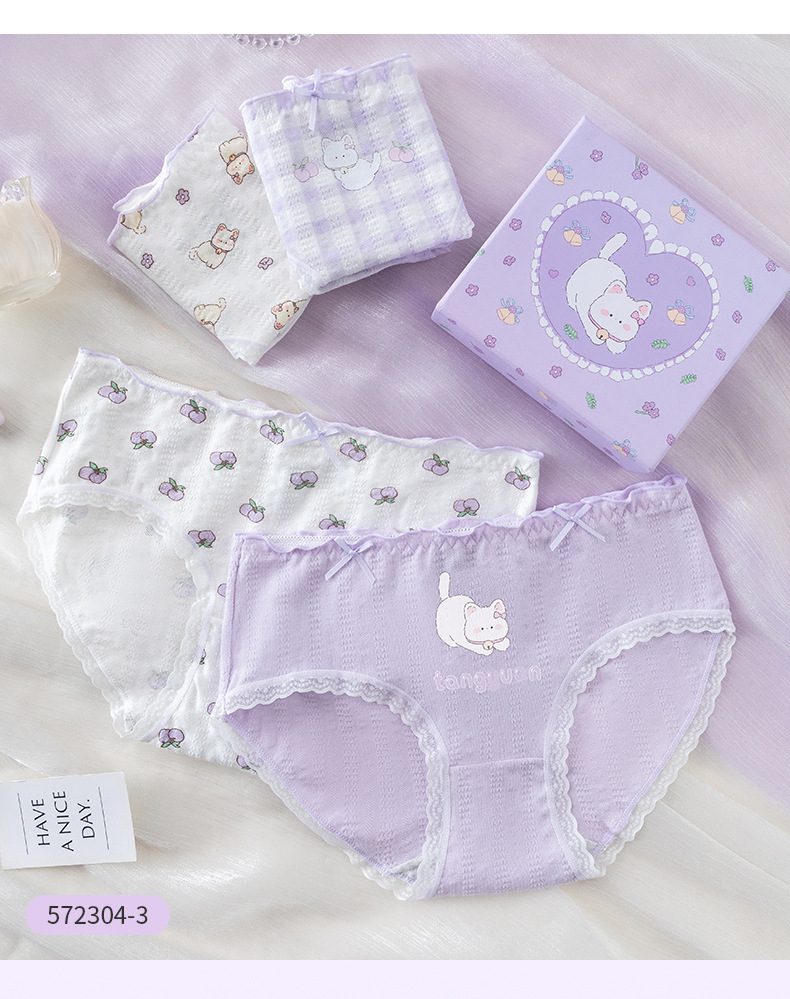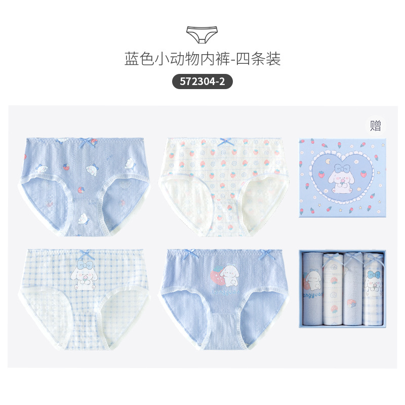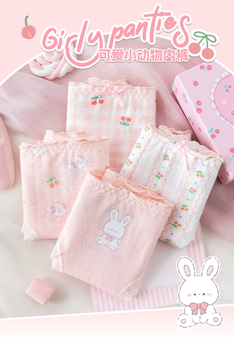 카라멜라 속옷 여성용 여름 얇은 순수 코튼 Crotch 항균 통기성 중간 허리 브리프 귀여운 소녀 반바지스토어 가기