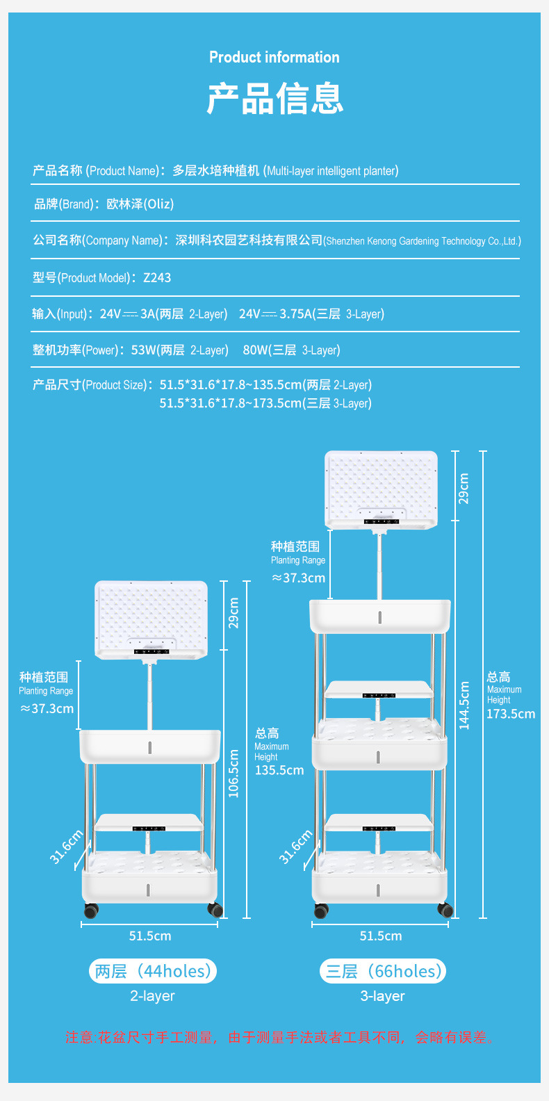 • GB [3 레이어] 흰색 Z243 수경 재배 기계