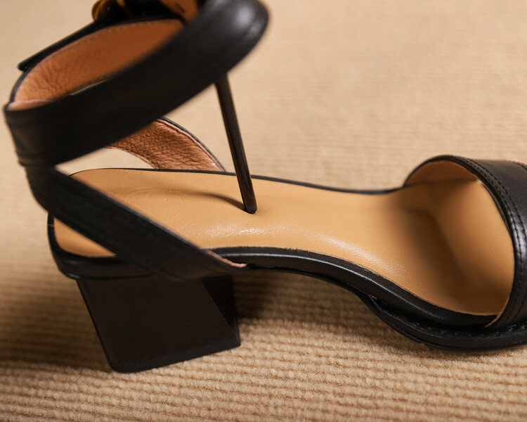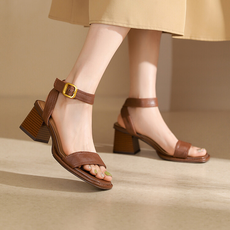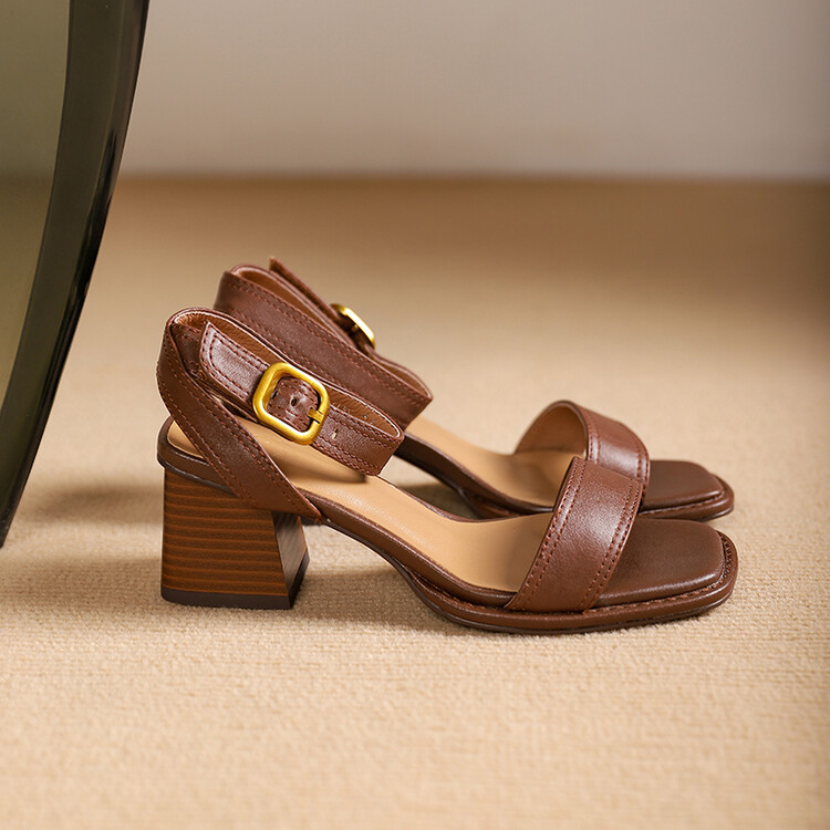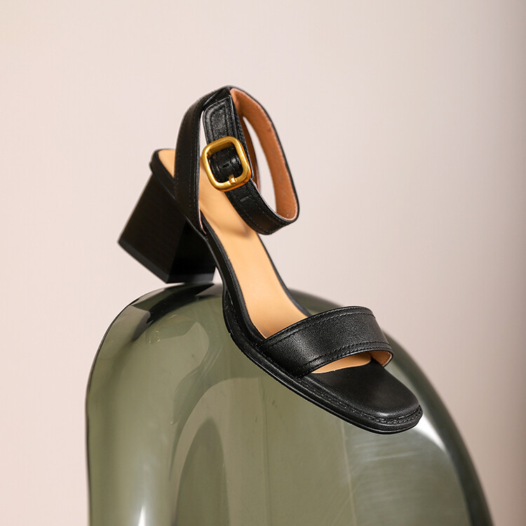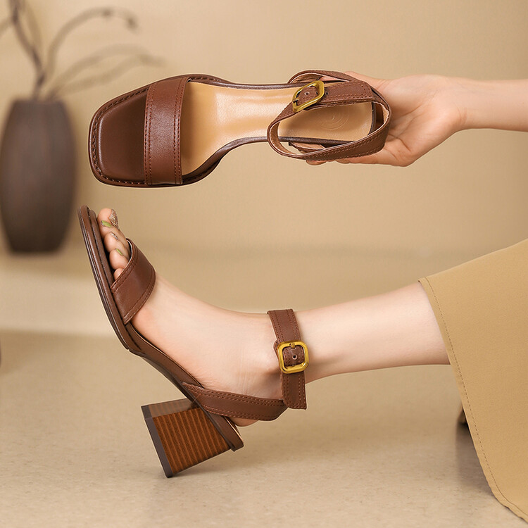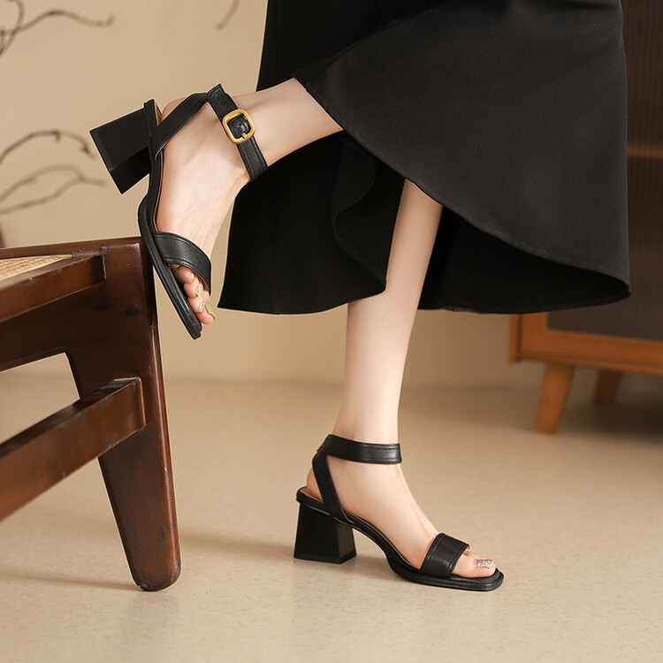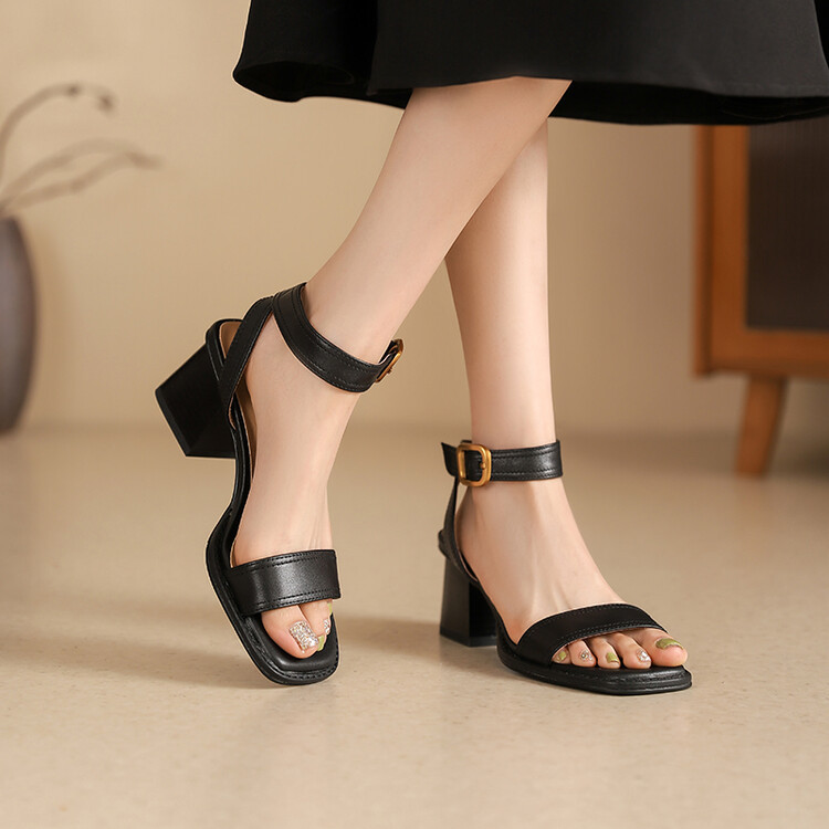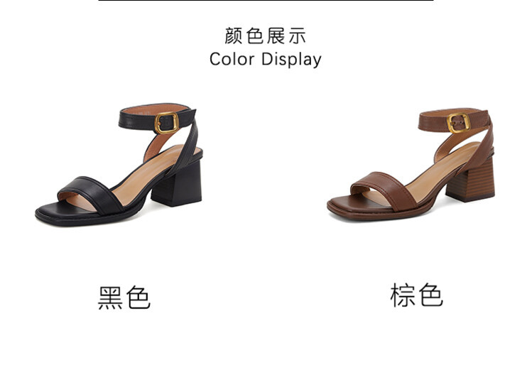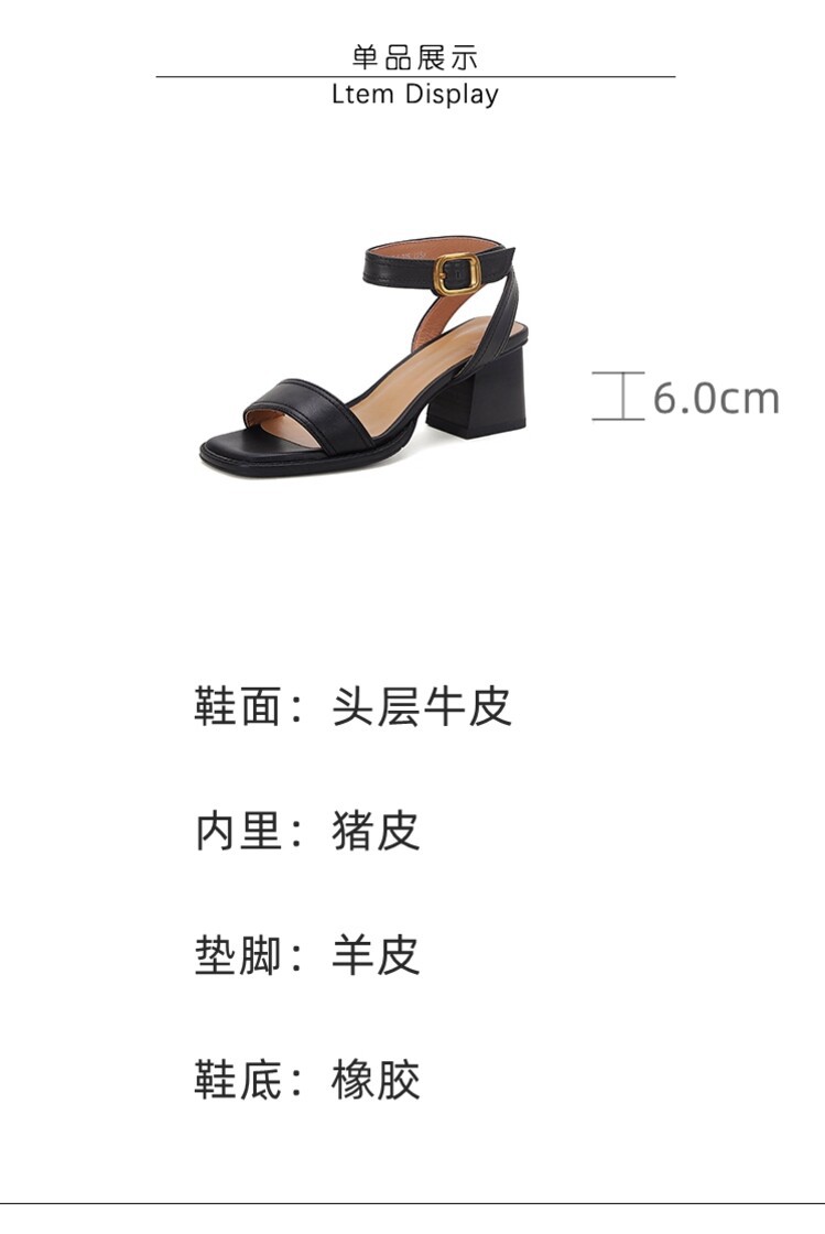 빅사이즈 하이힐 여성화 2025 여름 신상 심플 스퀘어토 오픈토 원라인 버클 가죽 통굽 샌들 여성용스토어 가기