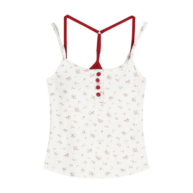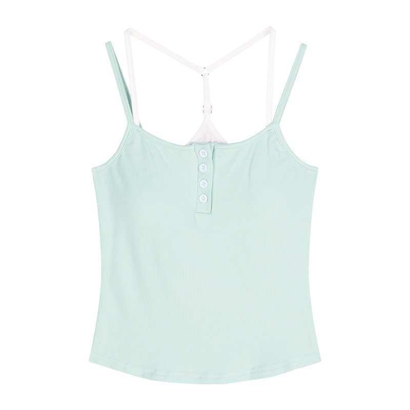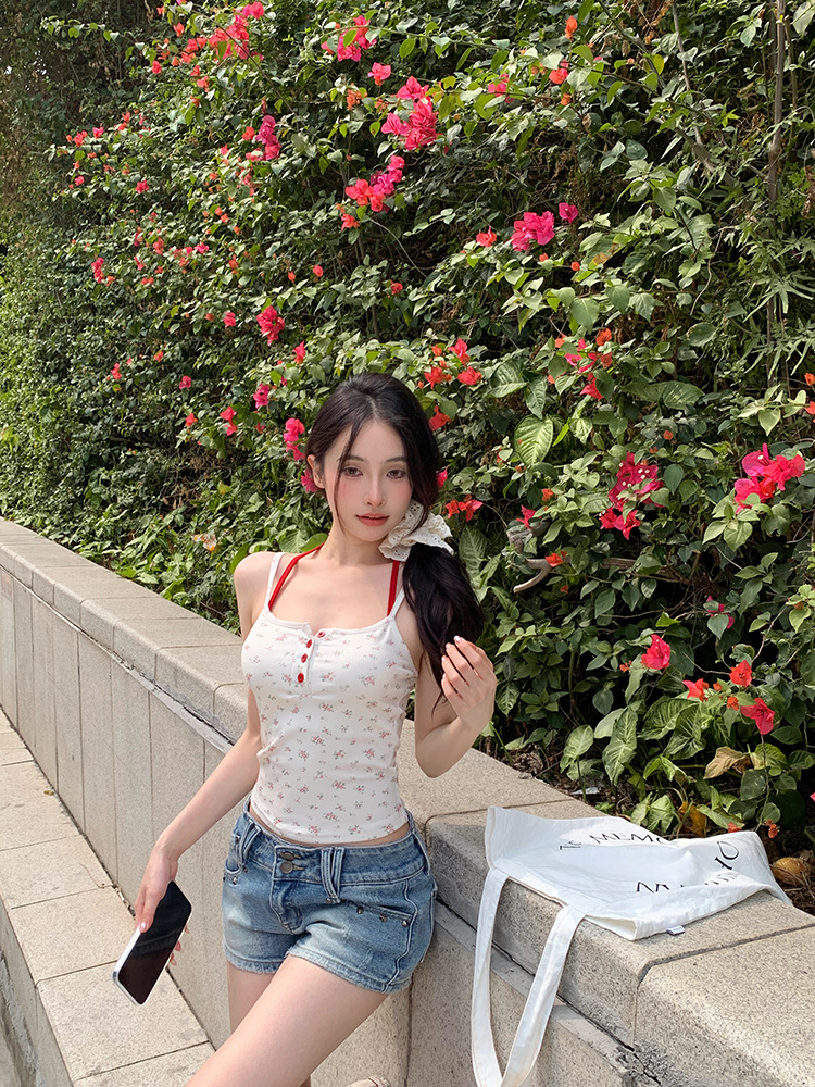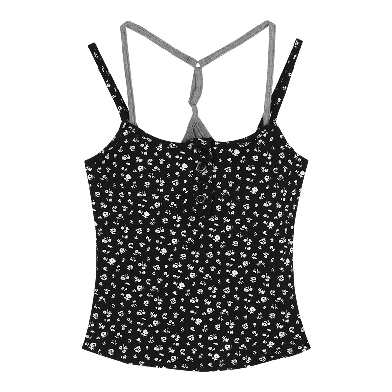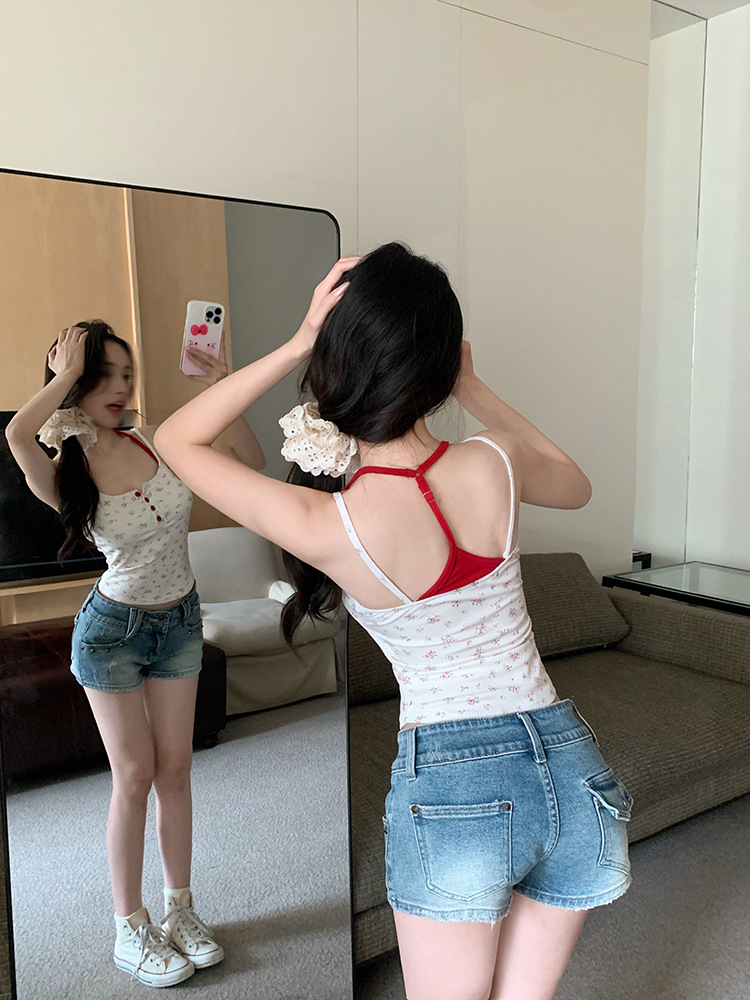 아메리칸 스타일 레트로 스파이스 소녀 그레이 로우 칼라 카미 솔 조끼 여성 여름 슬림 핏 퓨어 뷰티 스트랩 탑