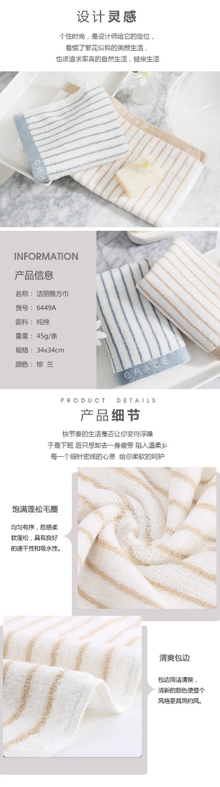 Jielia Pure Cotton 6449 광장 물 흡수성 줄무늬 성인 남성과 여성 씻기 얼굴 어린이 아기 땀 닦아 광장 작은 수건스토어 가기