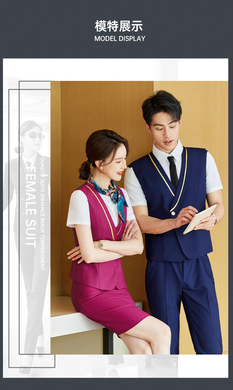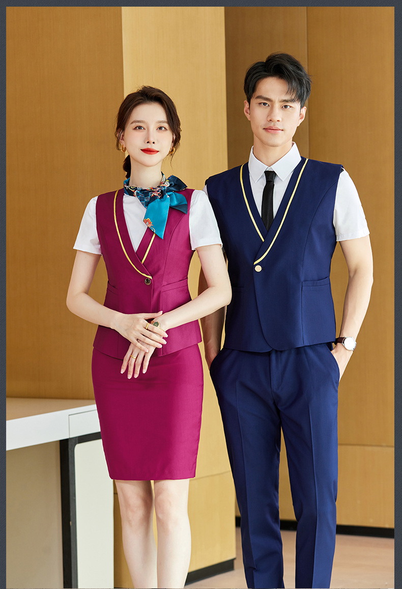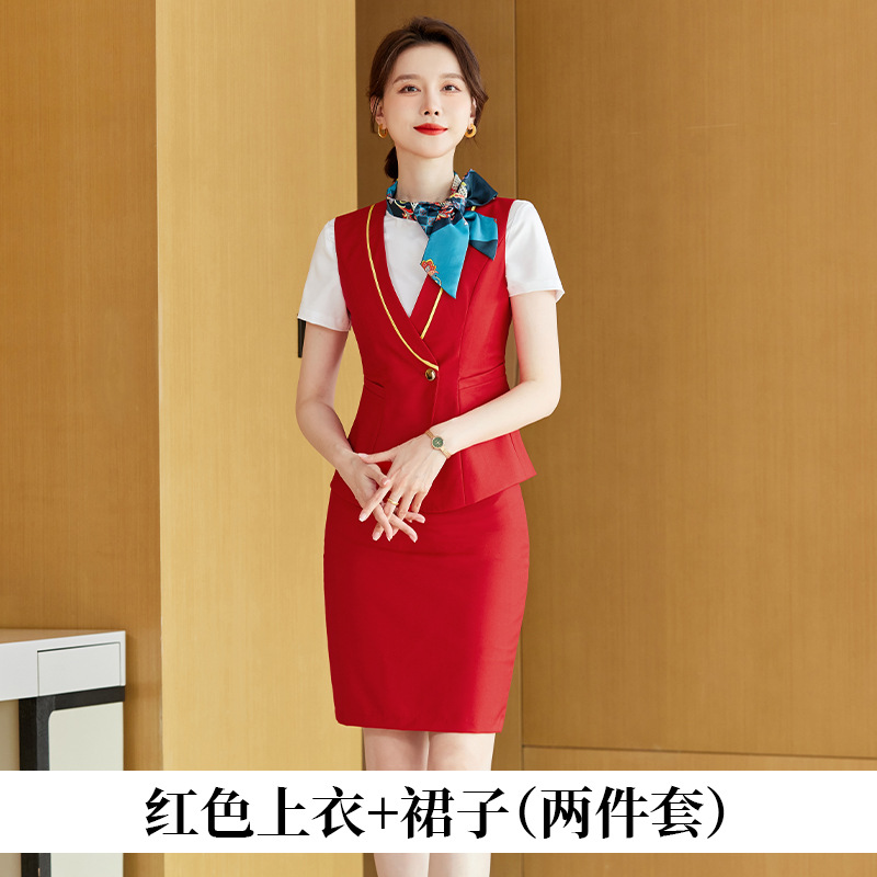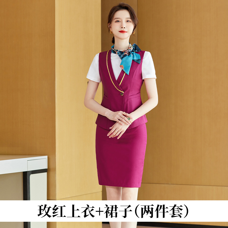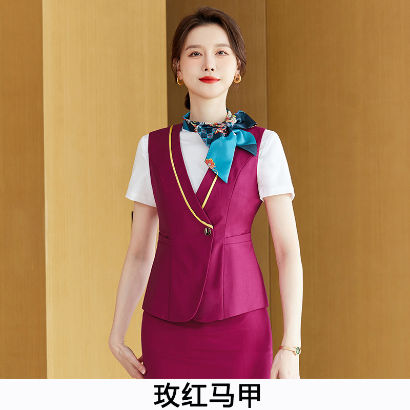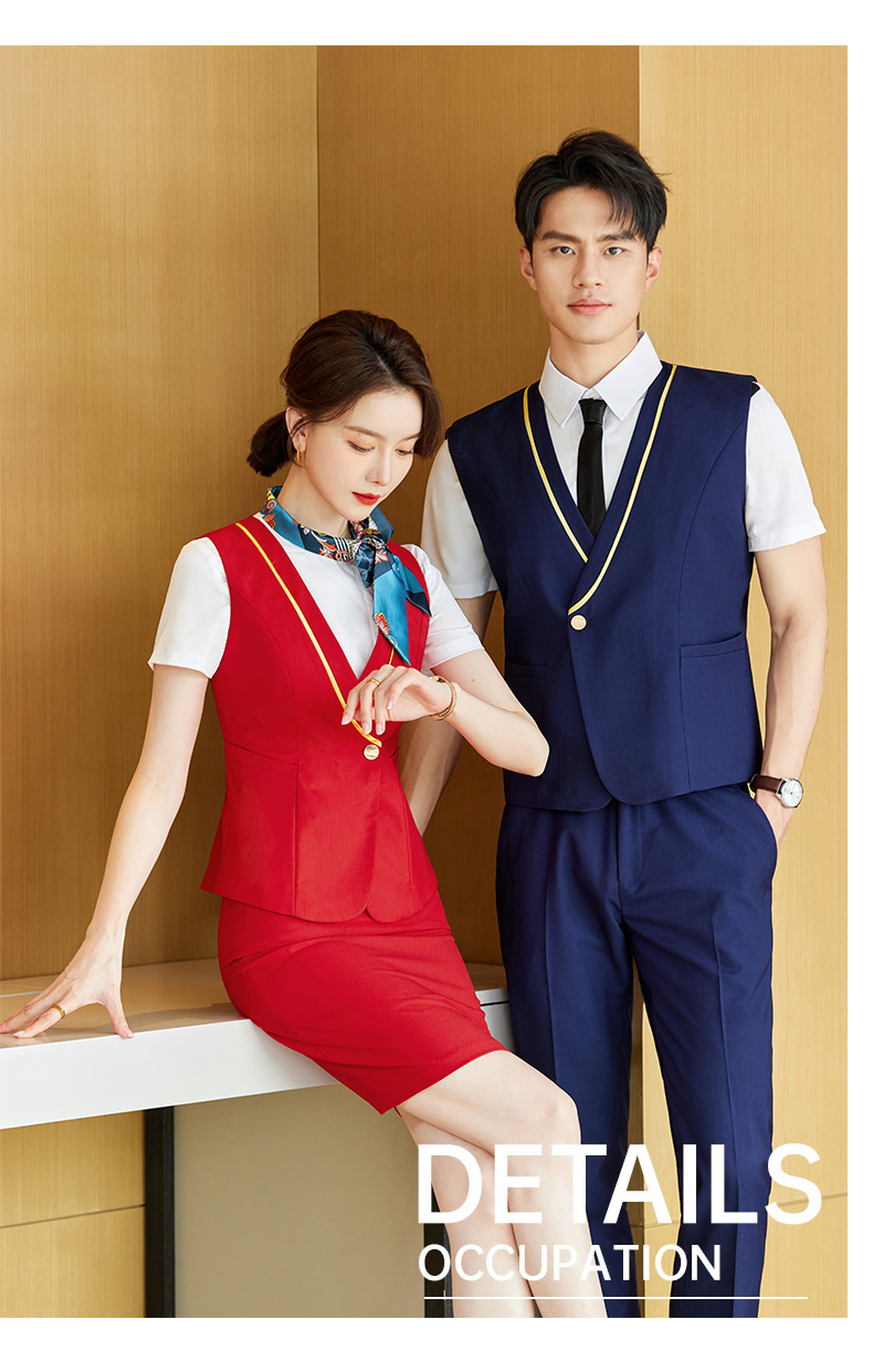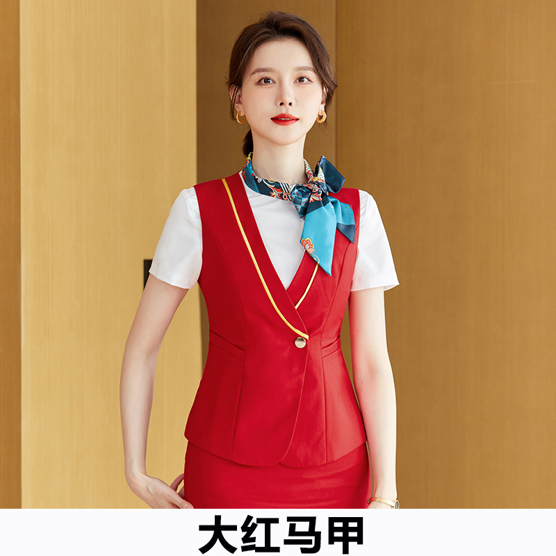 로즈 레드 조끼 세트 남성과 여성의 재산 고객 서비스 가이드 전문 말 클립 작업복 프론트 오피스 환영 리셉션 오버롤 여름