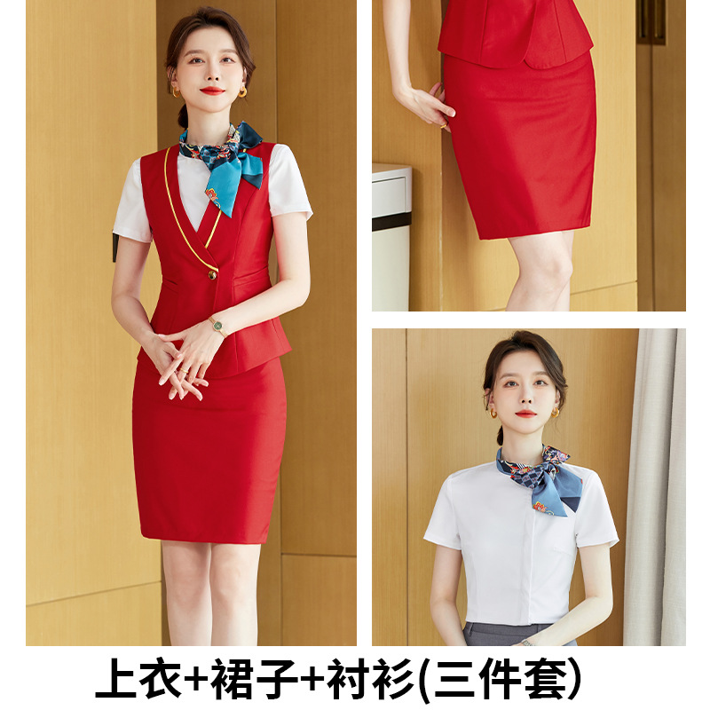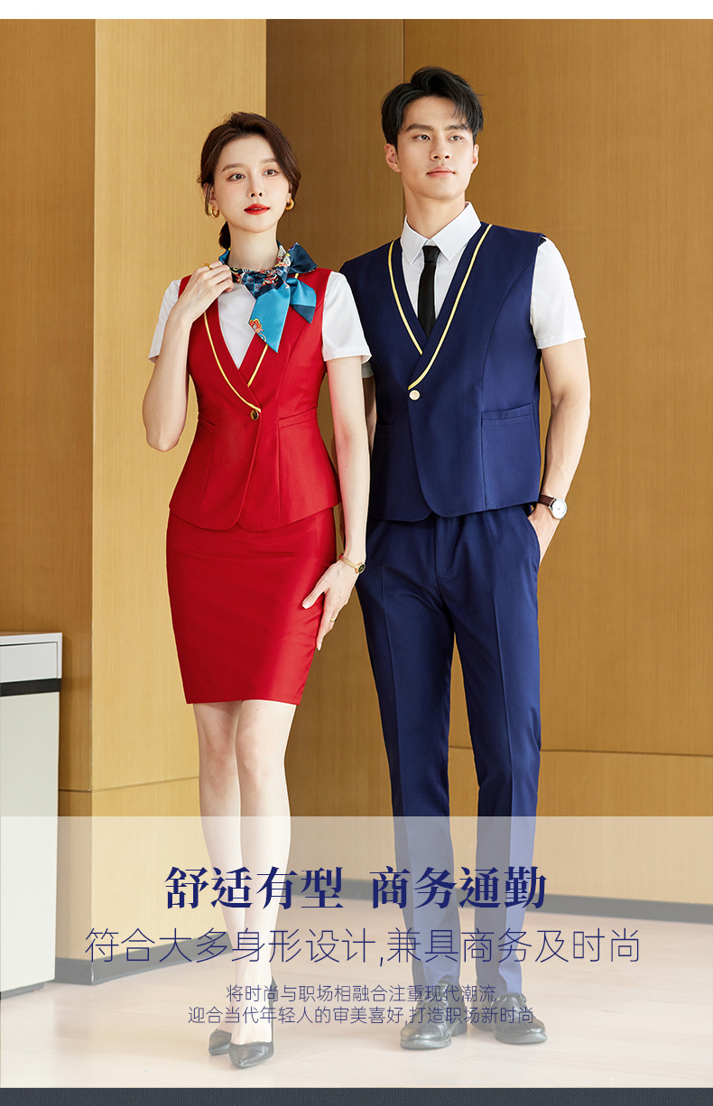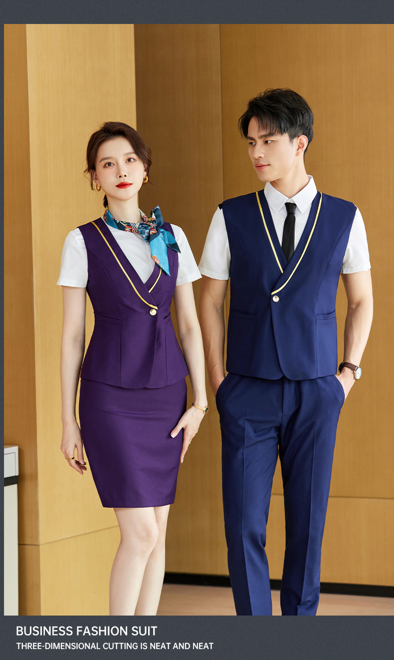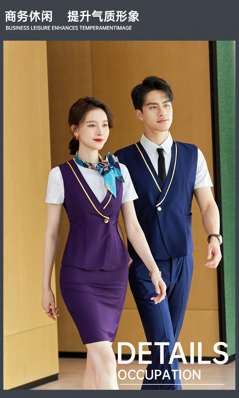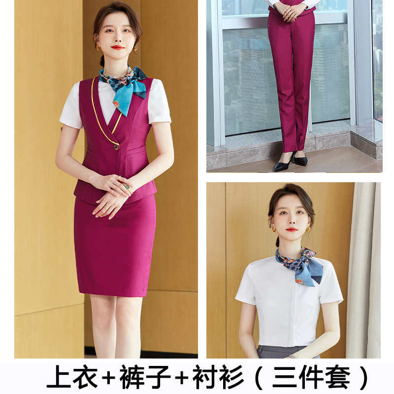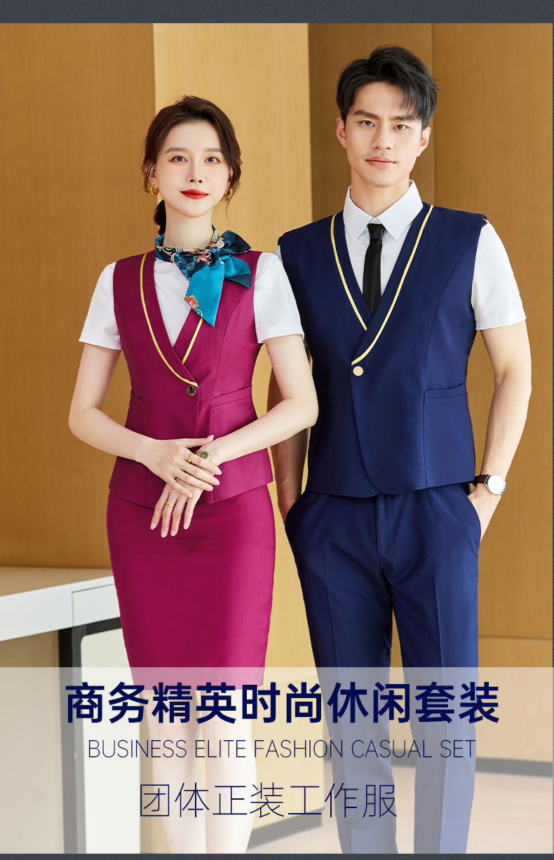 로즈 레드 조끼 세트 남성과 여성의 재산 고객 서비스 가이드 전문 말 클립 작업복 프론트 오피스 환영 리셉션 오버롤 여름