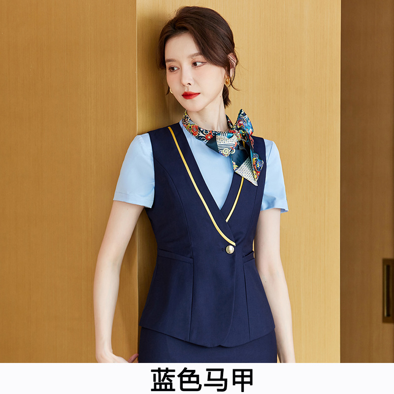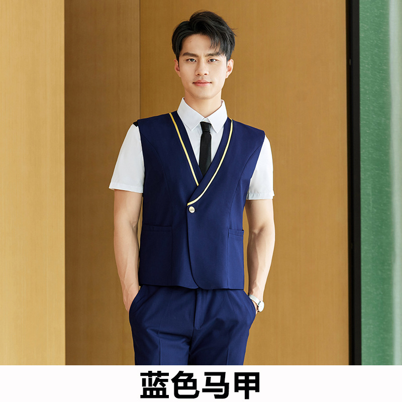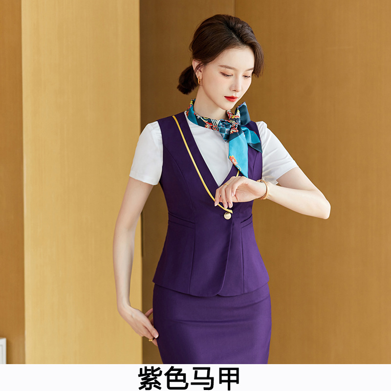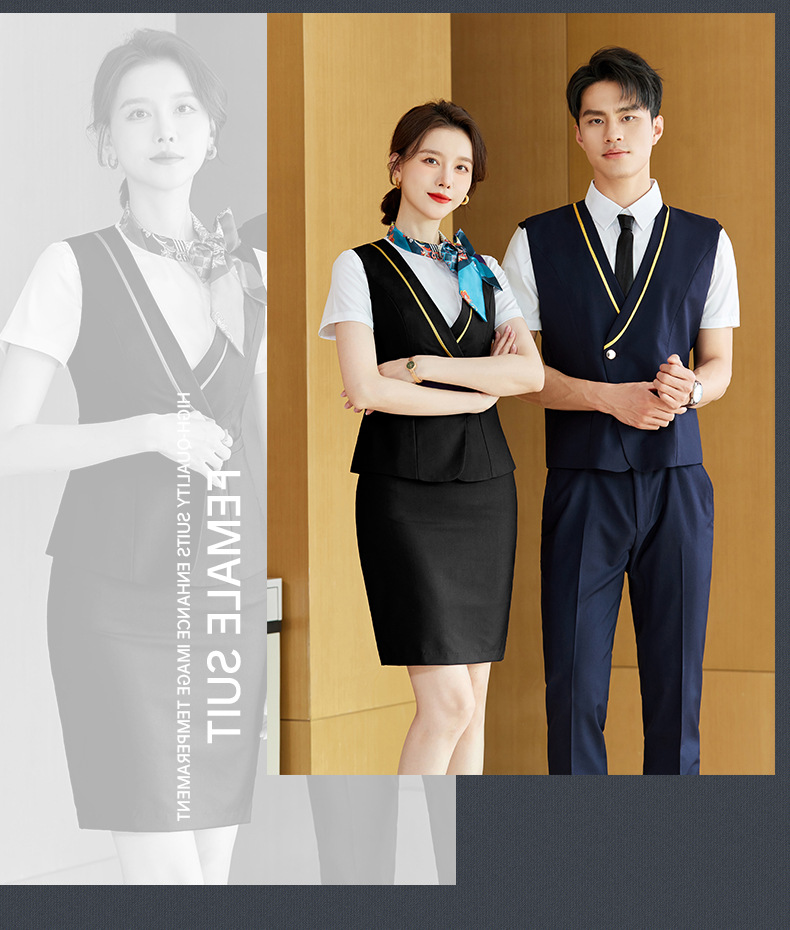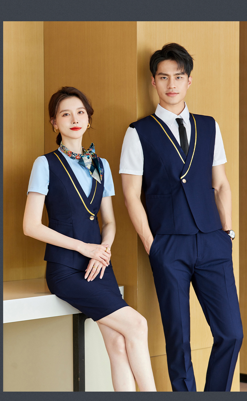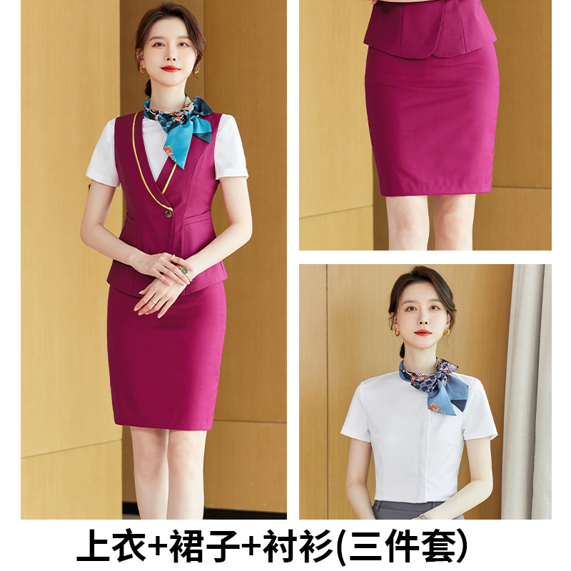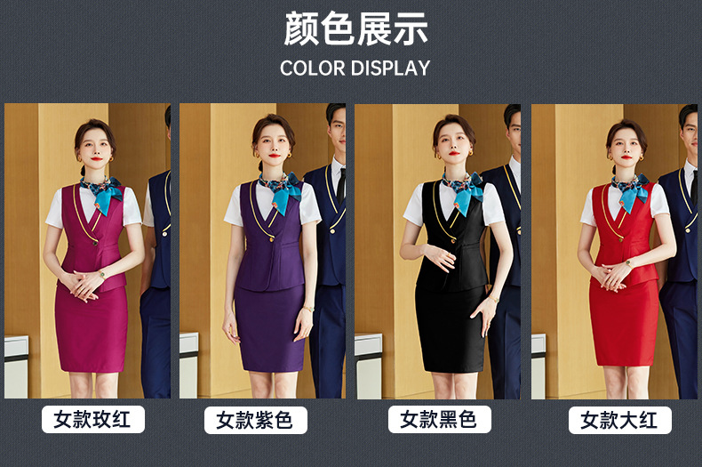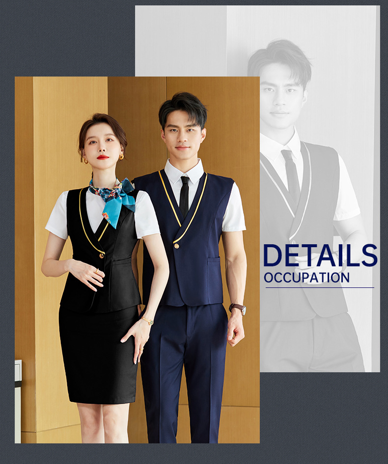 로즈 레드 조끼 세트 남성과 여성의 재산 고객 서비스 가이드 전문 말 클립 작업복 프론트 오피스 환영 리셉션 오버롤 여름