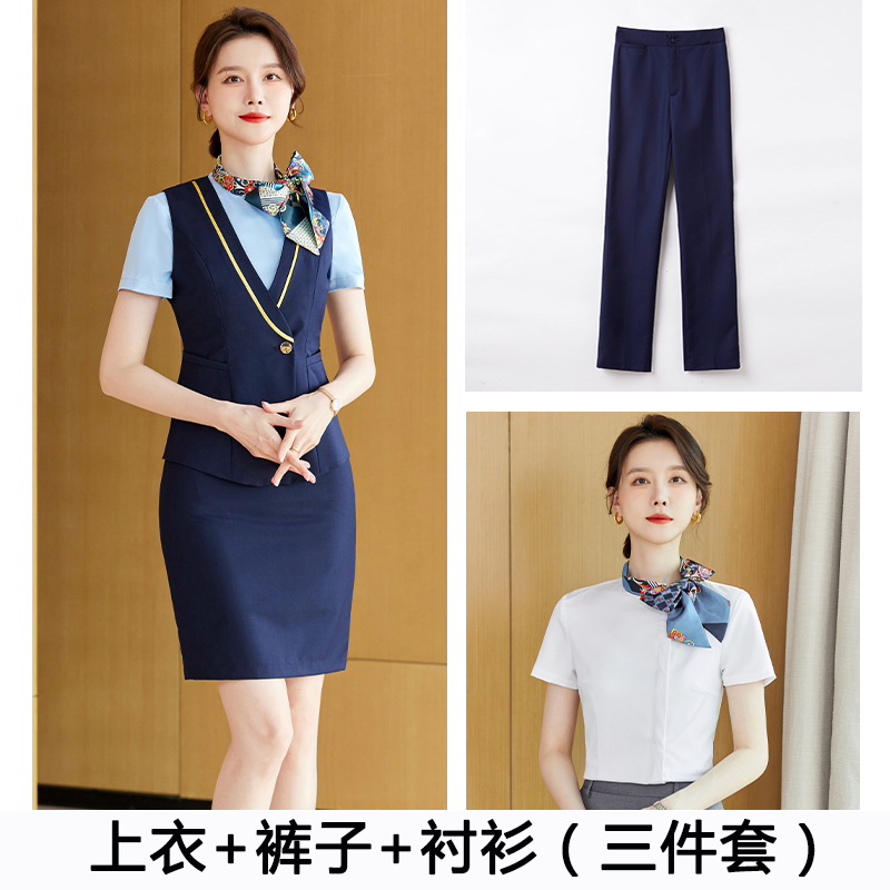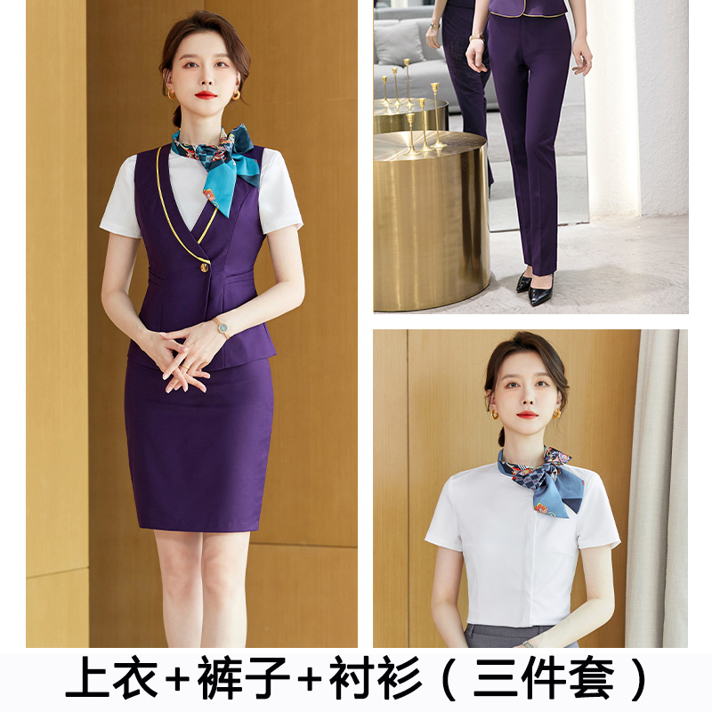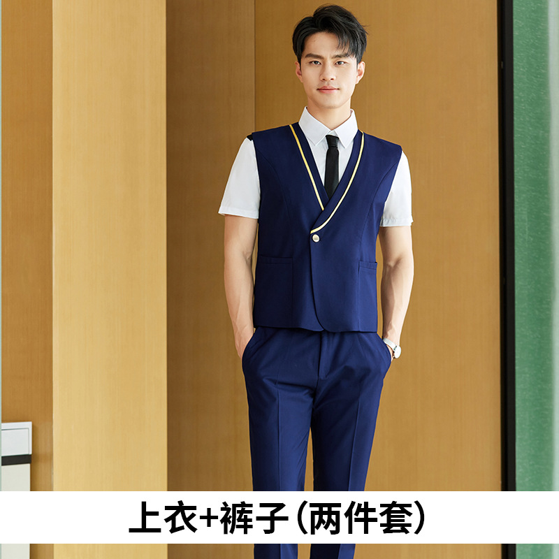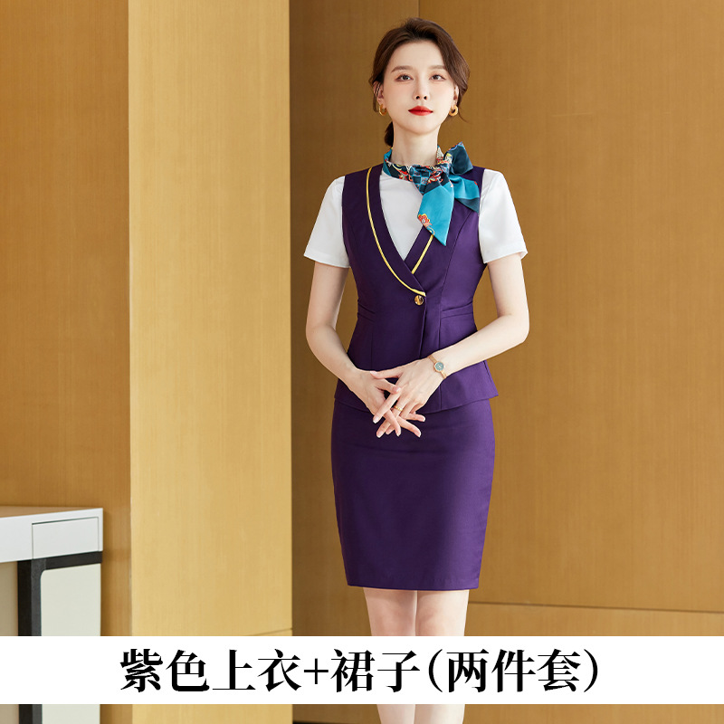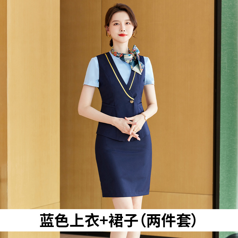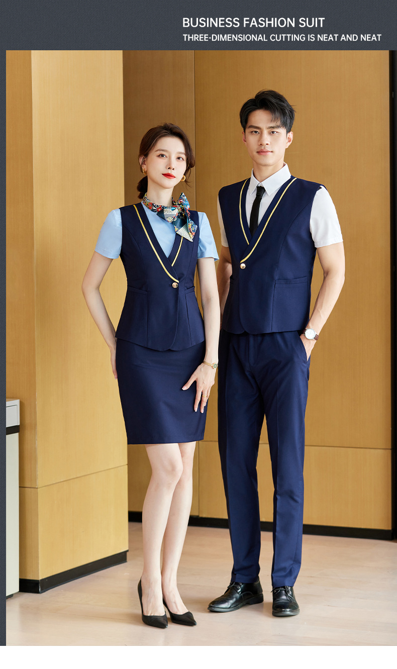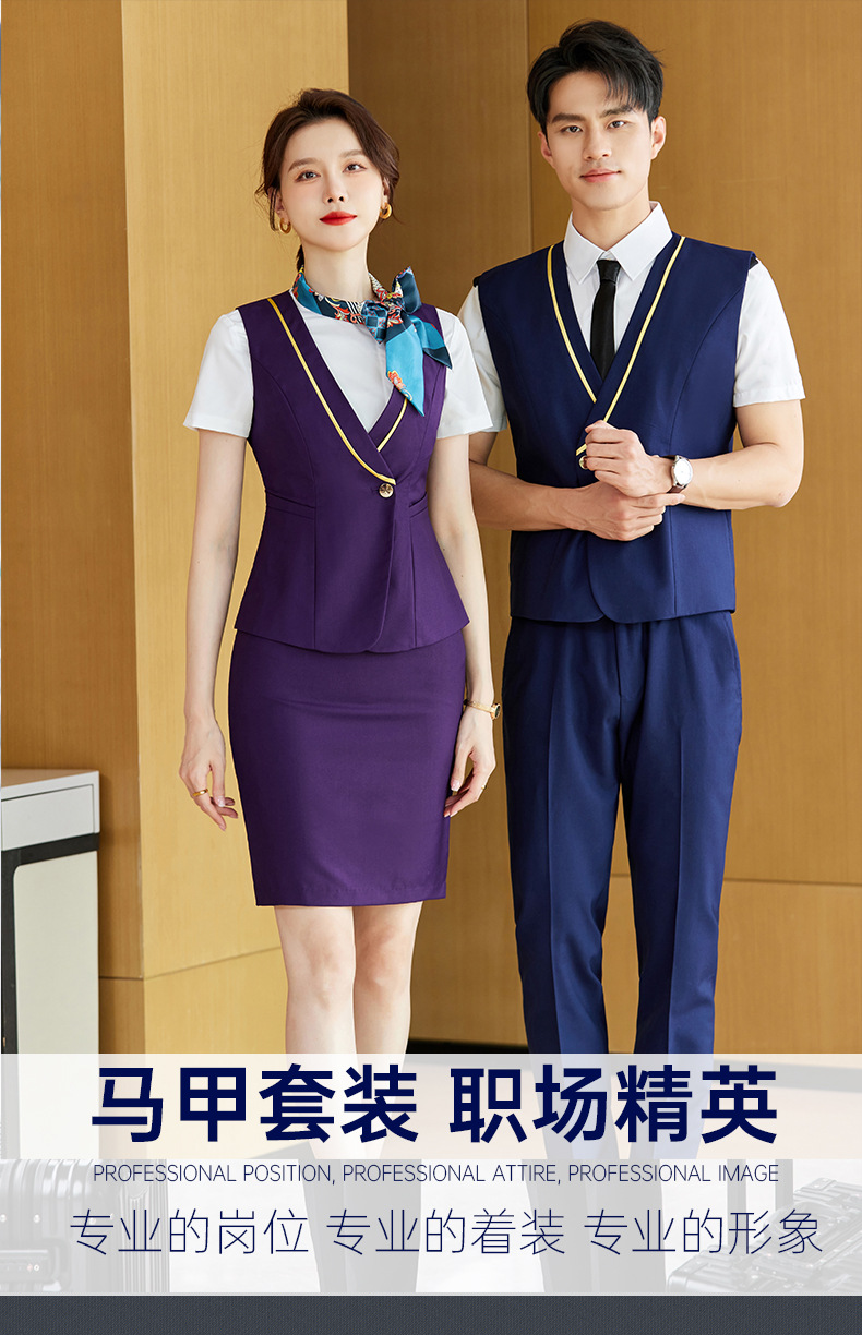 로즈 레드 조끼 세트 남성과 여성의 재산 고객 서비스 가이드 전문 말 클립 작업복 프론트 오피스 환영 리셉션 오버롤 여름