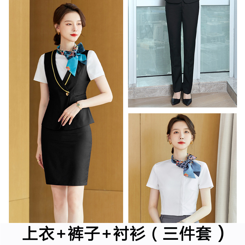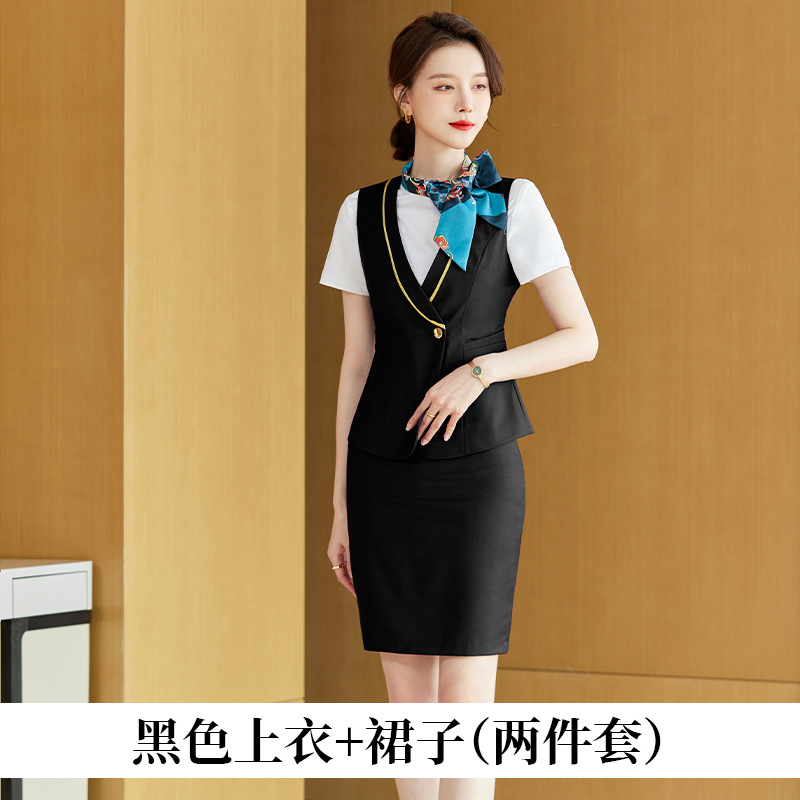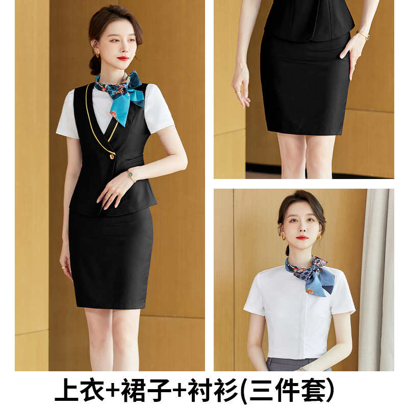 • 숙녀 검은 조끼 스커트 흰색 셔츠