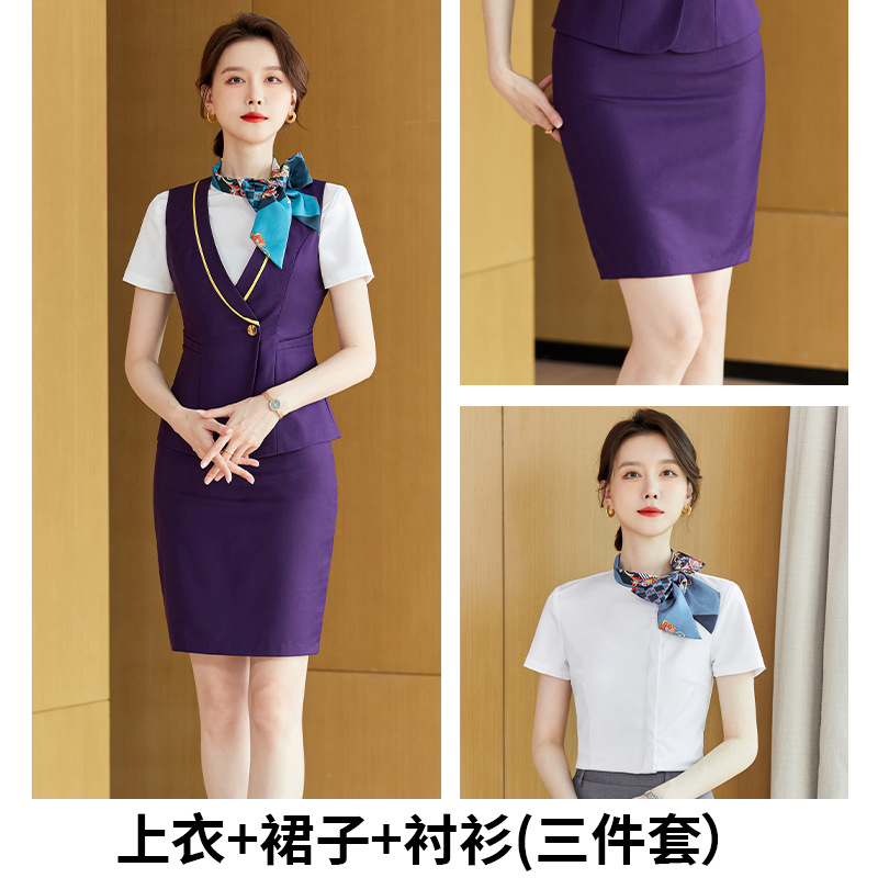 • 여성 보라색 조끼 스커트 화이트 셔츠