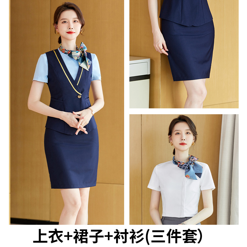 • 여성 블루 조끼 스커트 화이트 셔츠