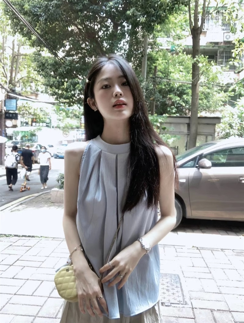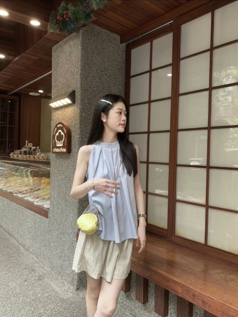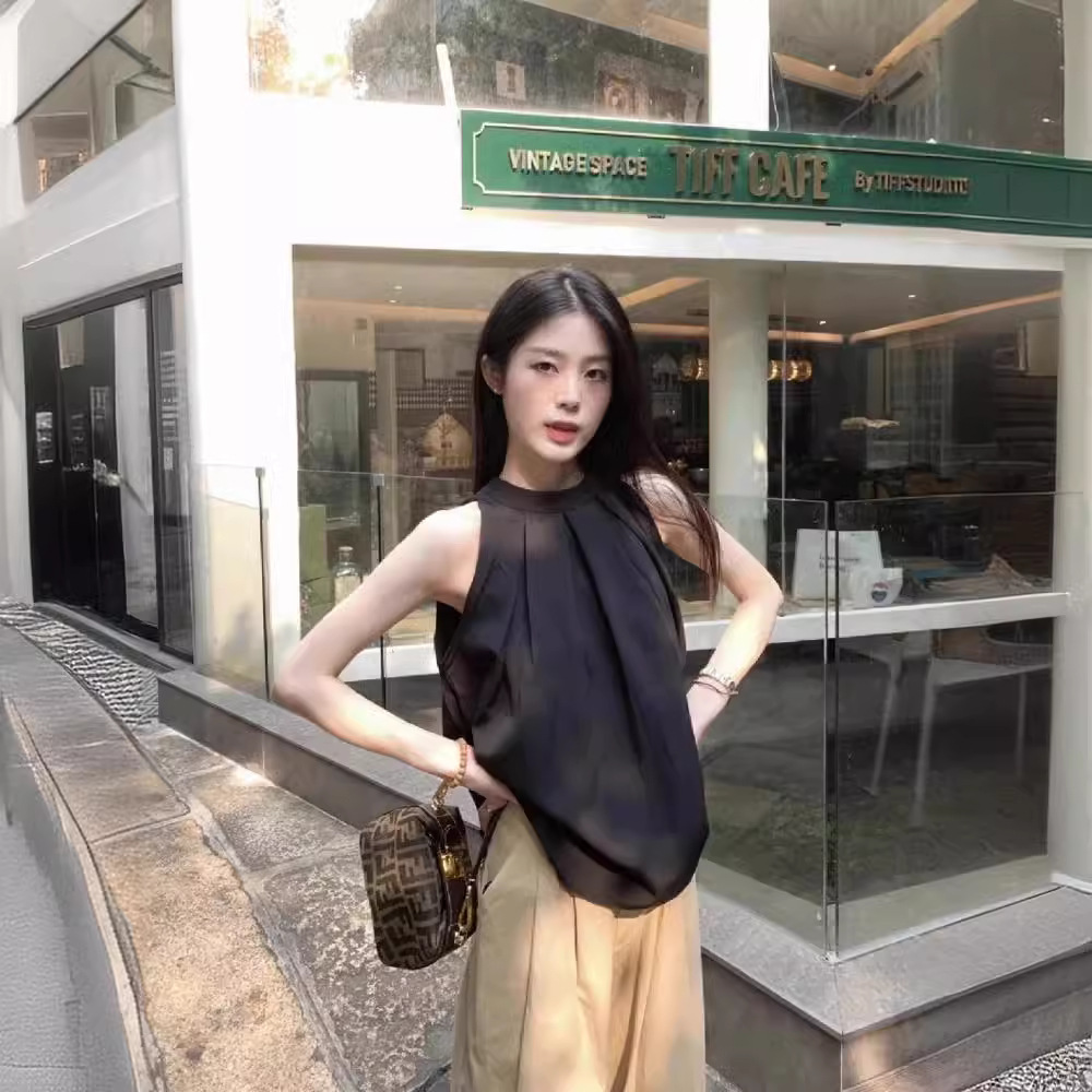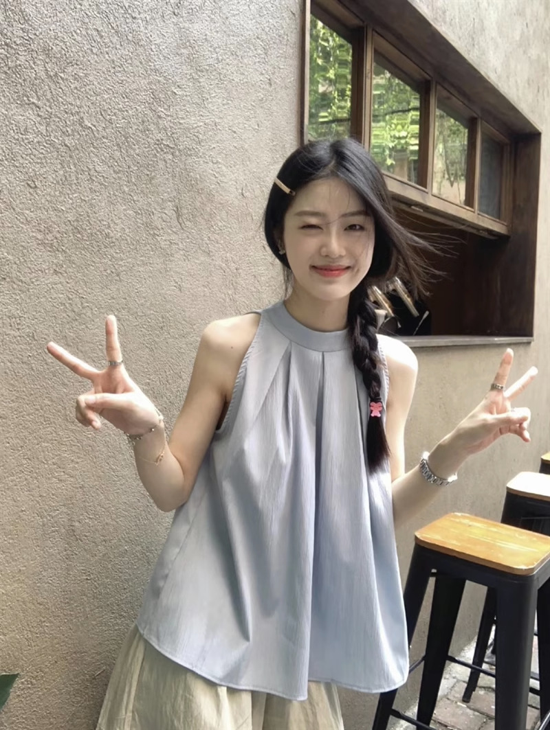 2026년 여름 신상 민소매 디자인 셔츠, 유니크하고 섹시한 여성을 위한 스타일리쉬한 홀터넥 여성 상의, 순수하고 매혹적인 스타일스토어 가기
