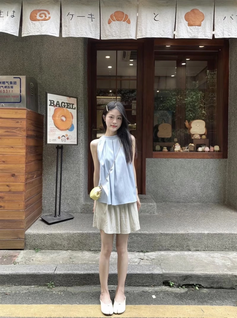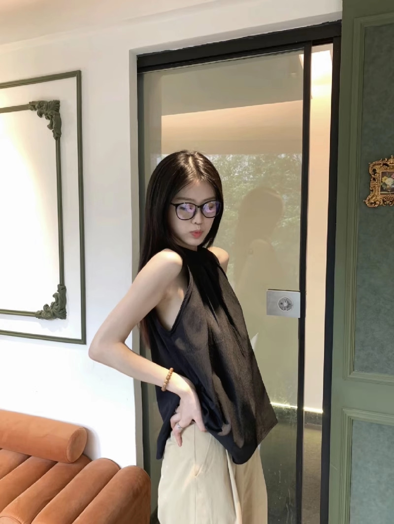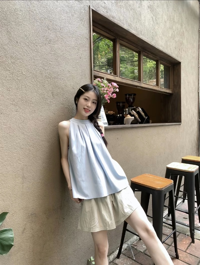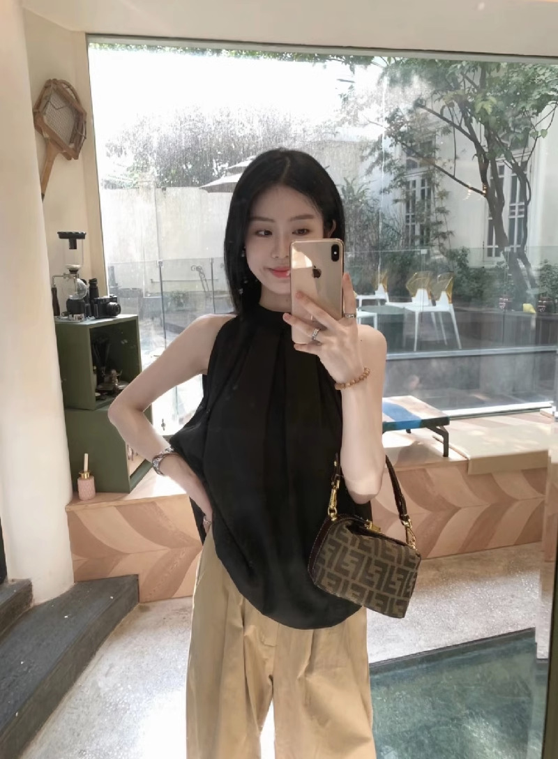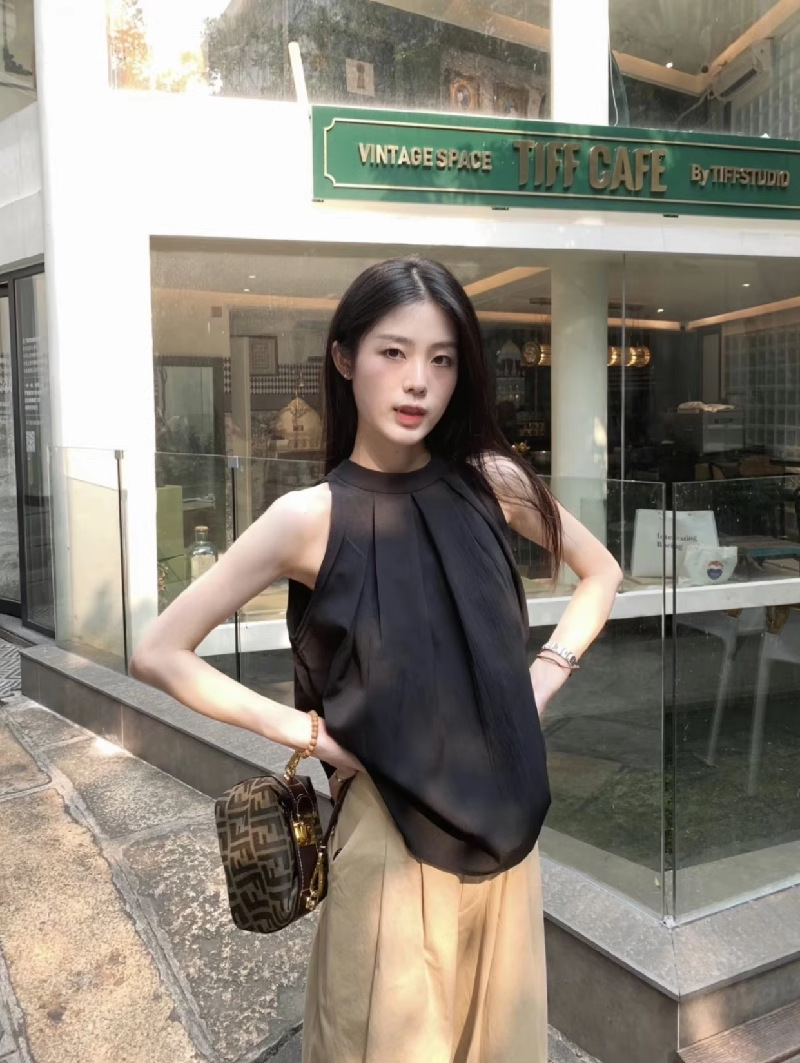2026년 여름 신상 민소매 디자인 셔츠, 유니크하고 섹시한 여성을 위한 스타일리쉬한 홀터넥 여성 상의, 순수하고 매혹적인 스타일스토어 가기