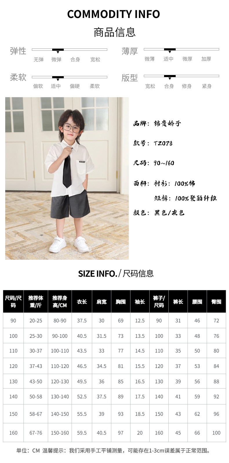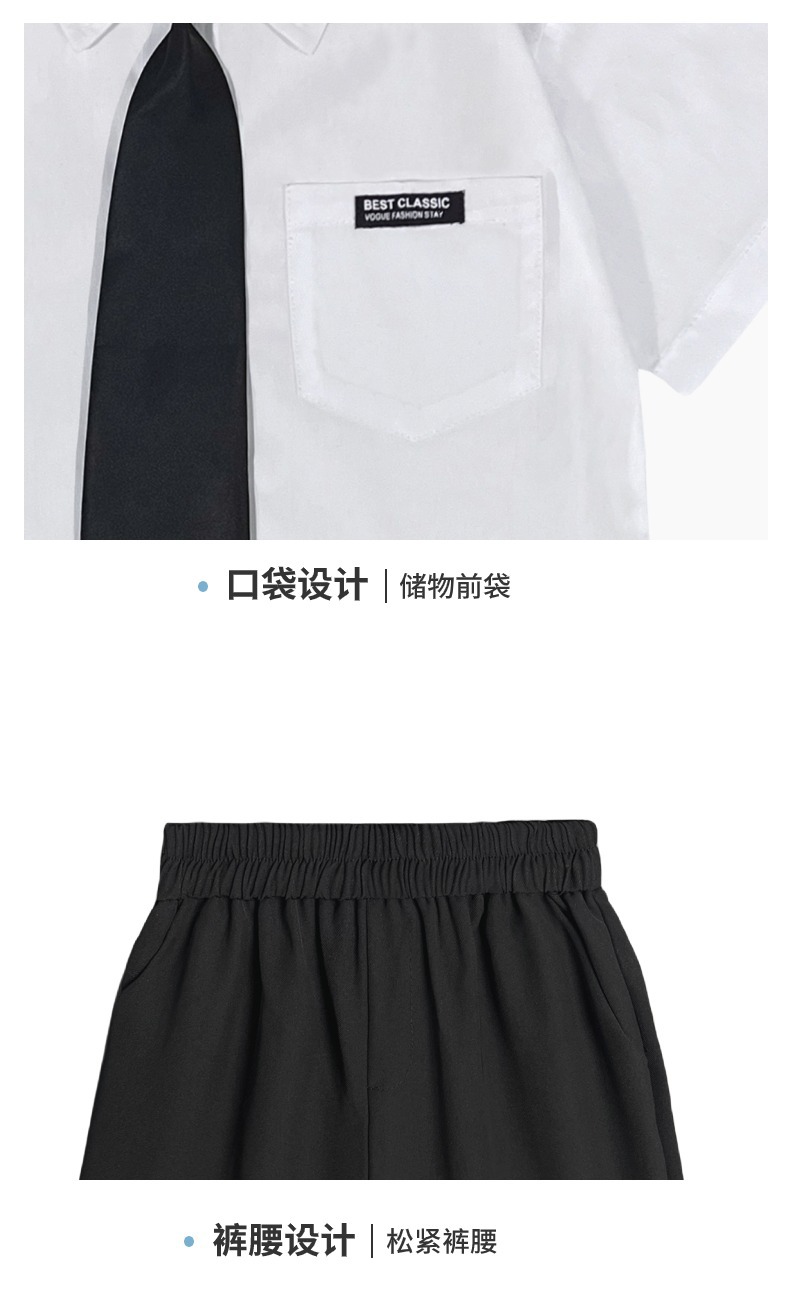• 검은 반바지 흰색면 셔츠 검은 넥타이