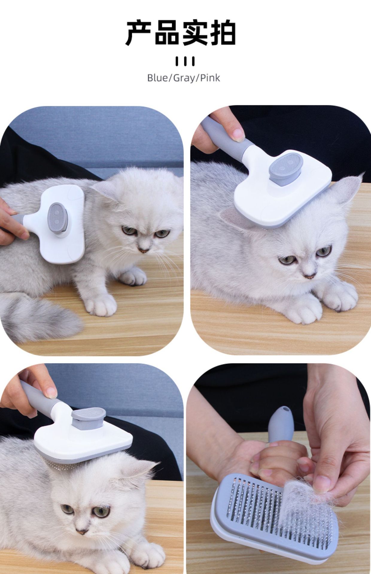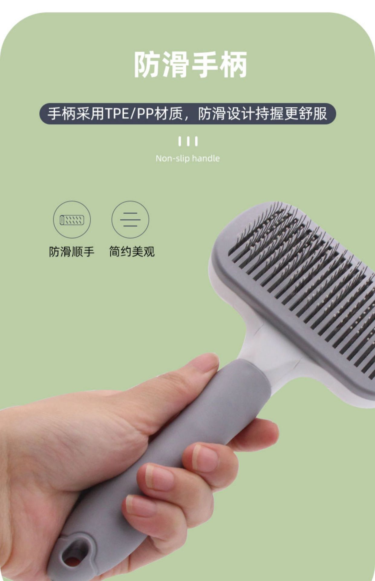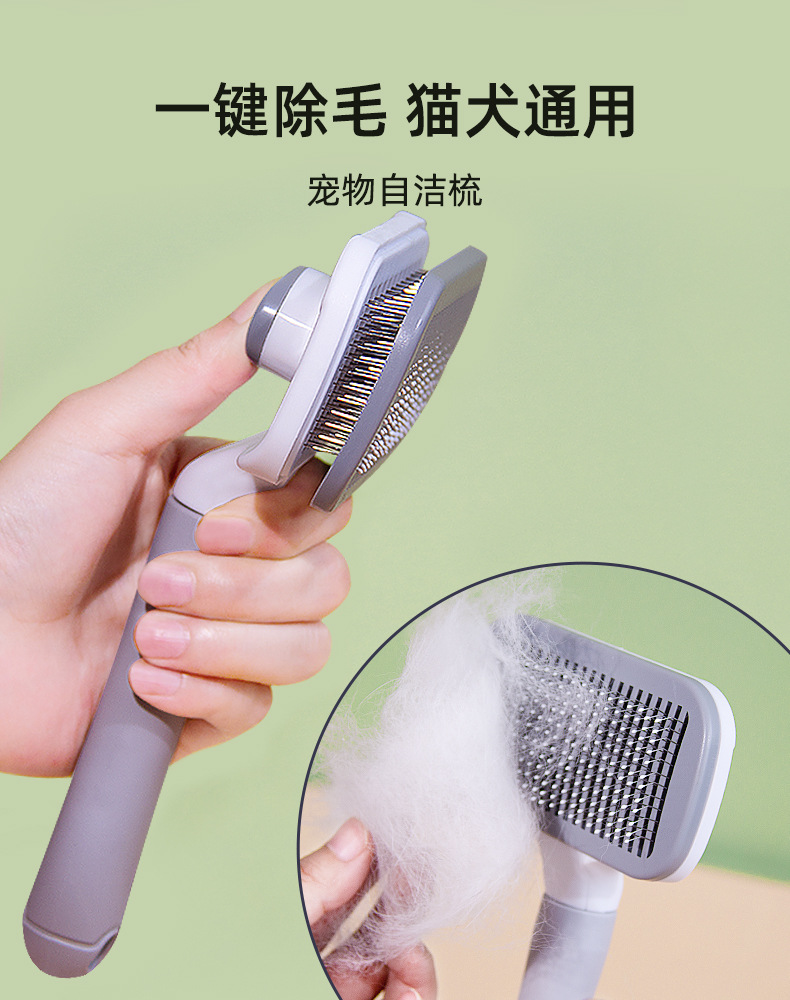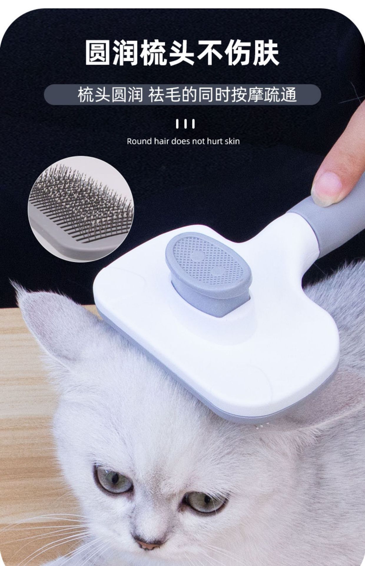 • 업그레이드된 미끄럼방지 - 마카롱 그레이 셀프클리닝 빗 [고양이, 강아지용 만능 원클릭 제모]