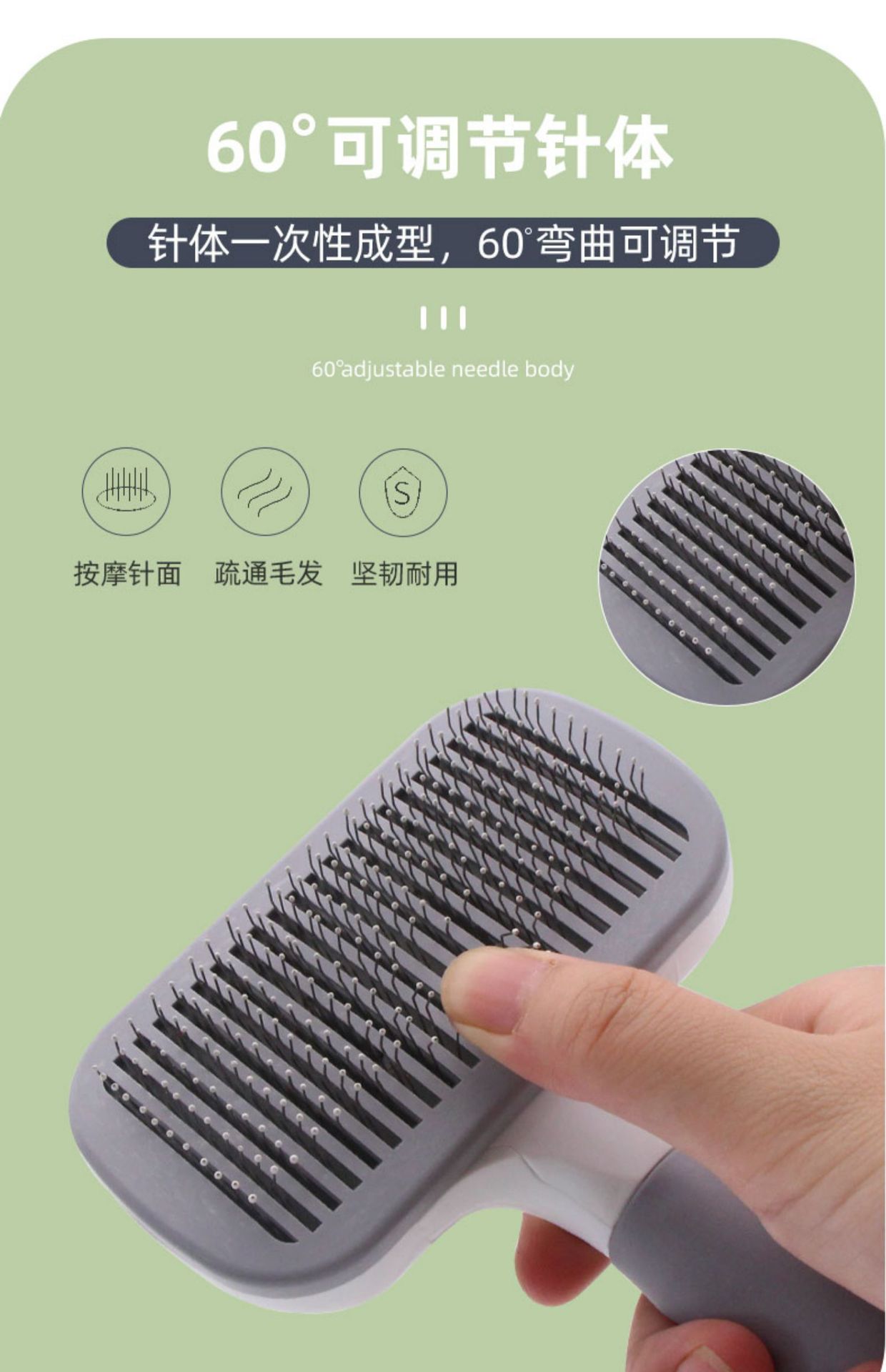 • 업그레이드된 미끄럼방지 - 마카롱 그린 셀프클리닝 빗 [고양이, 강아지용 만능 원클릭 제모]