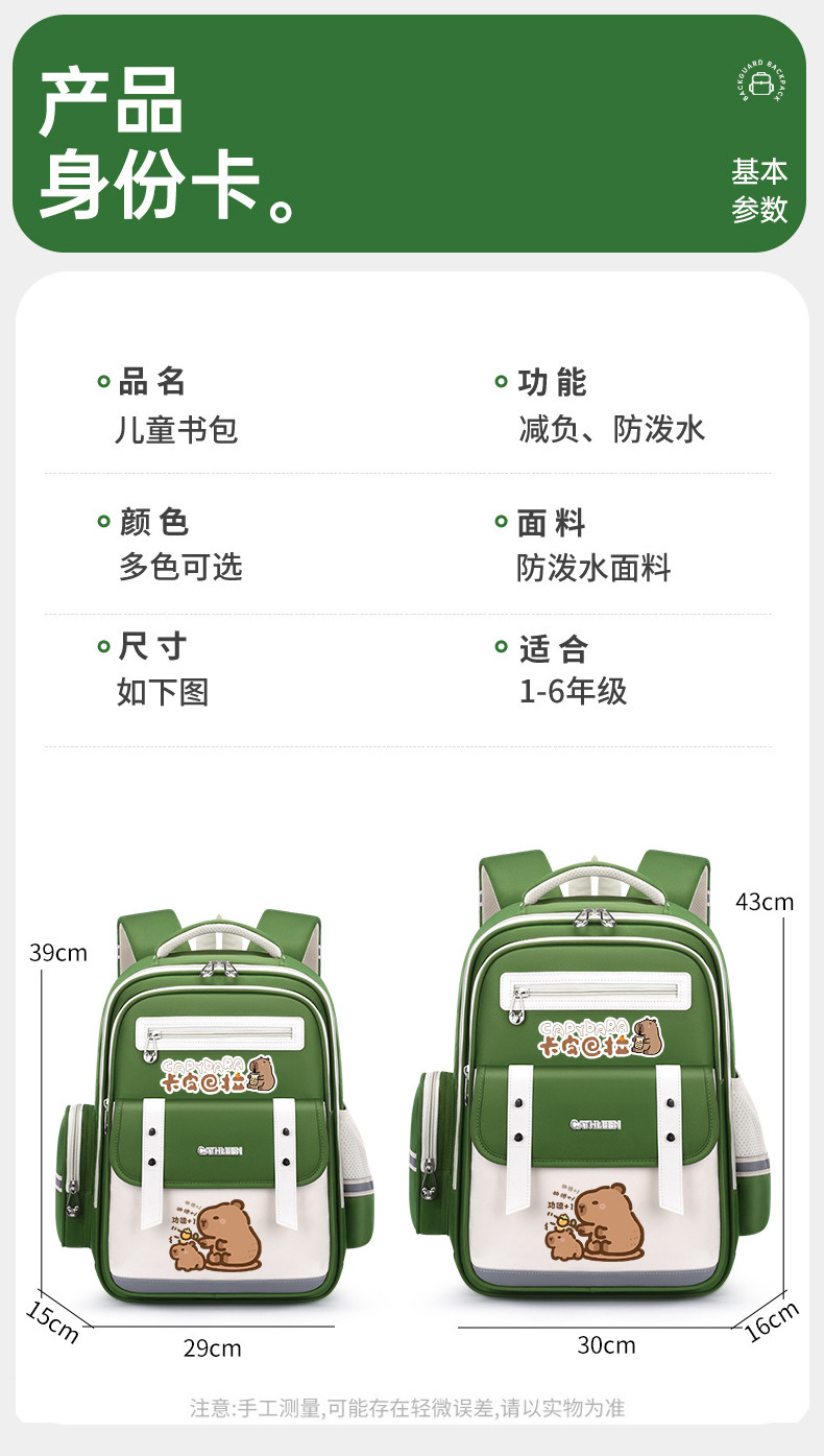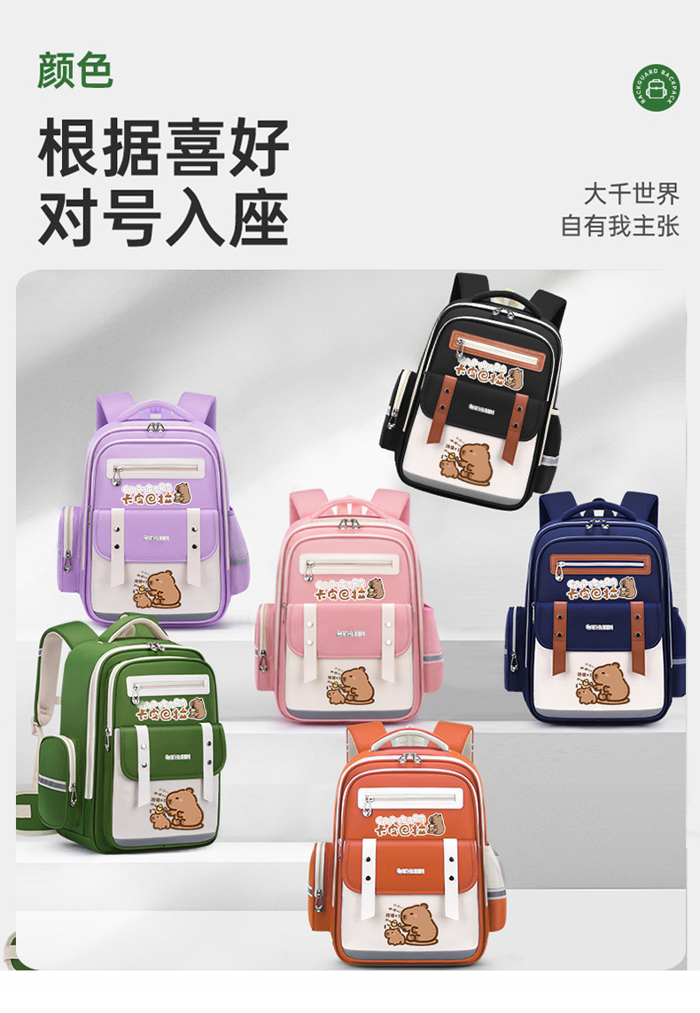 Yunduo 초등학교 가방 척추 보호 3-6 학년 소년과 소녀 대용량 어린이 배낭 Kapibara 배낭스토어 가기