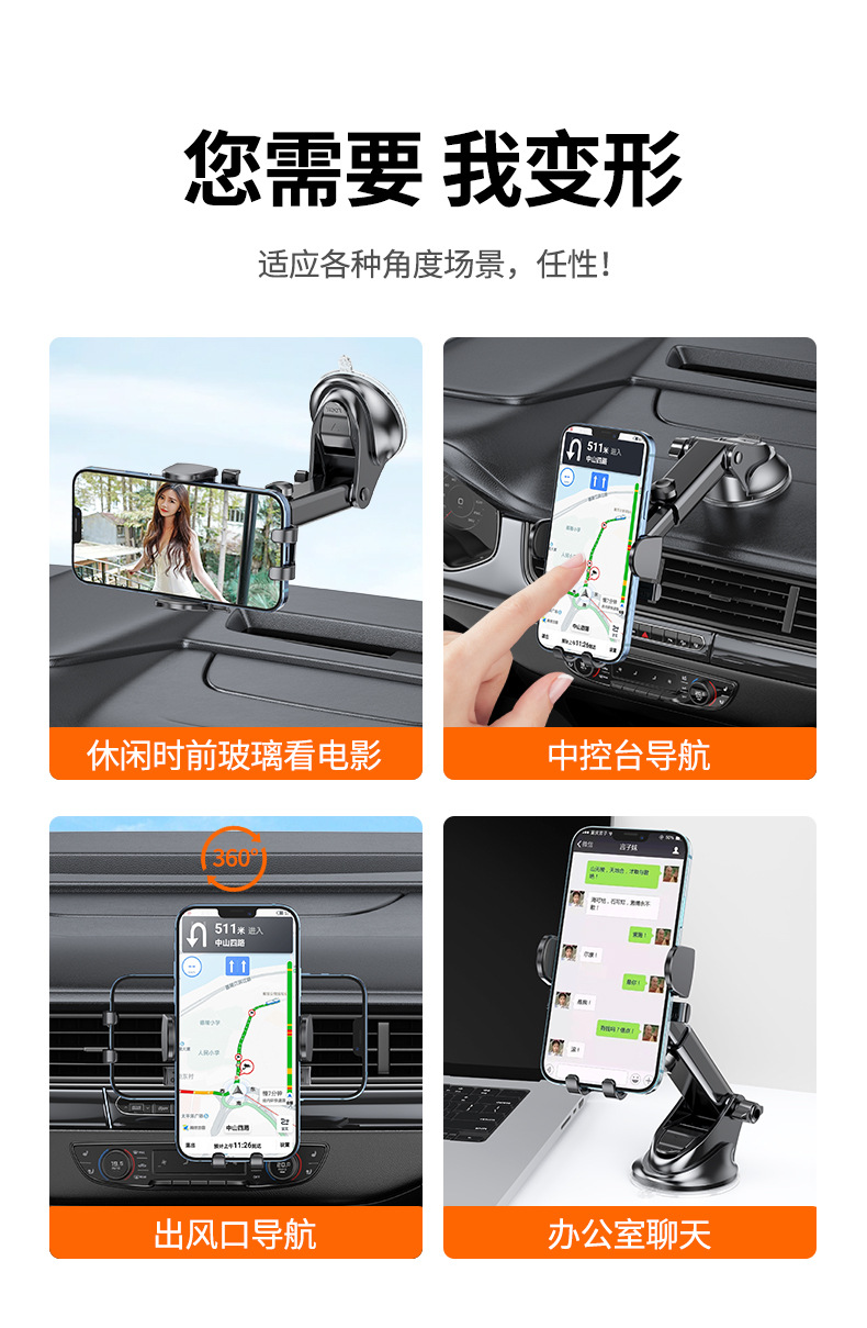 새로운 자동차 휴대 전화 브래킷 자동차 흡입 컵 보편적 인 내비게이션 지원 클립