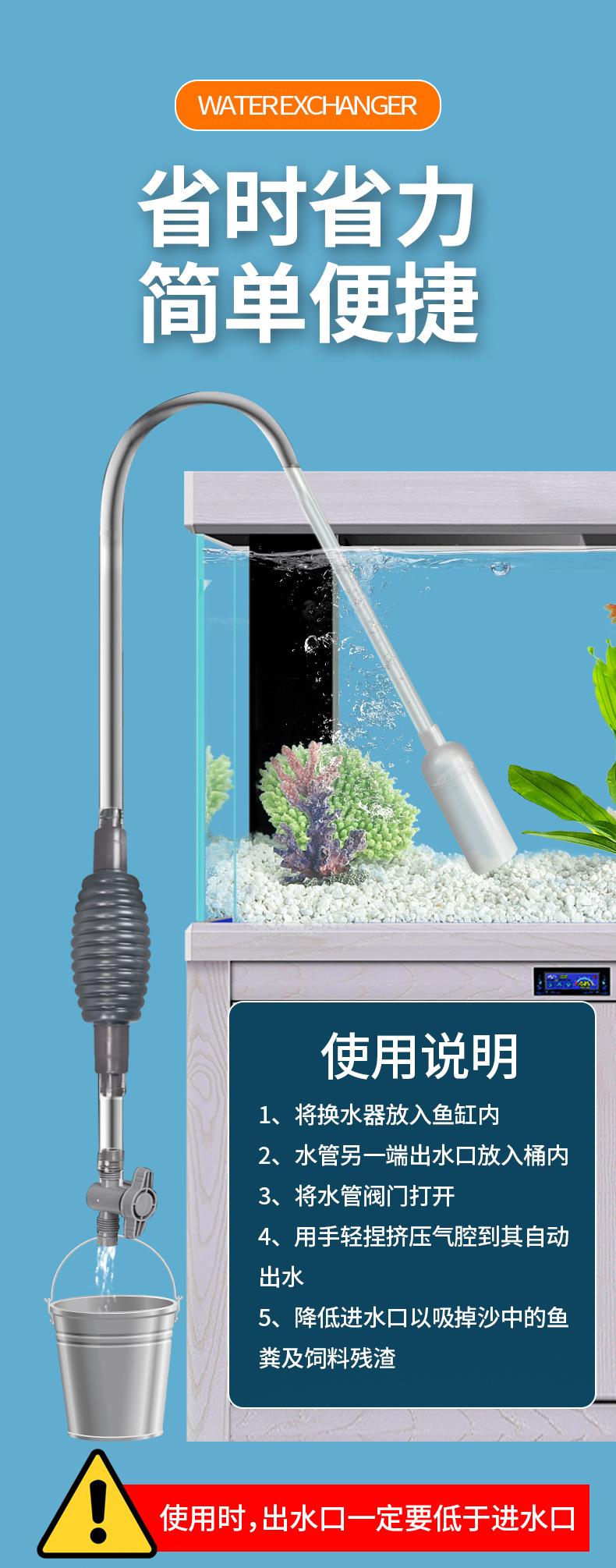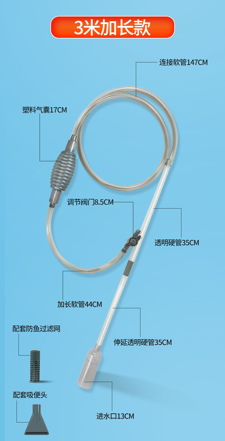 물고기 탱크 물 교환기 모래 세탁기 흡입관 물 흡수기 수동 변기 청소 모래 배설물 흡입 작은스토어 가기