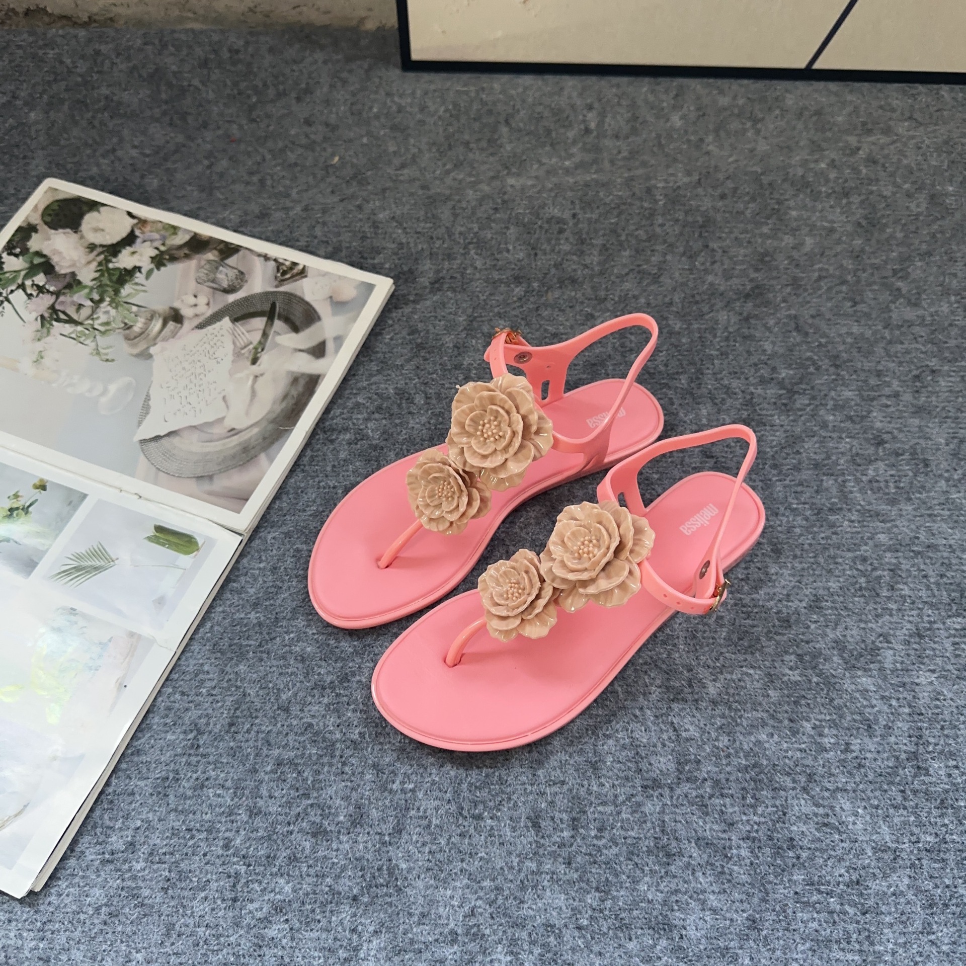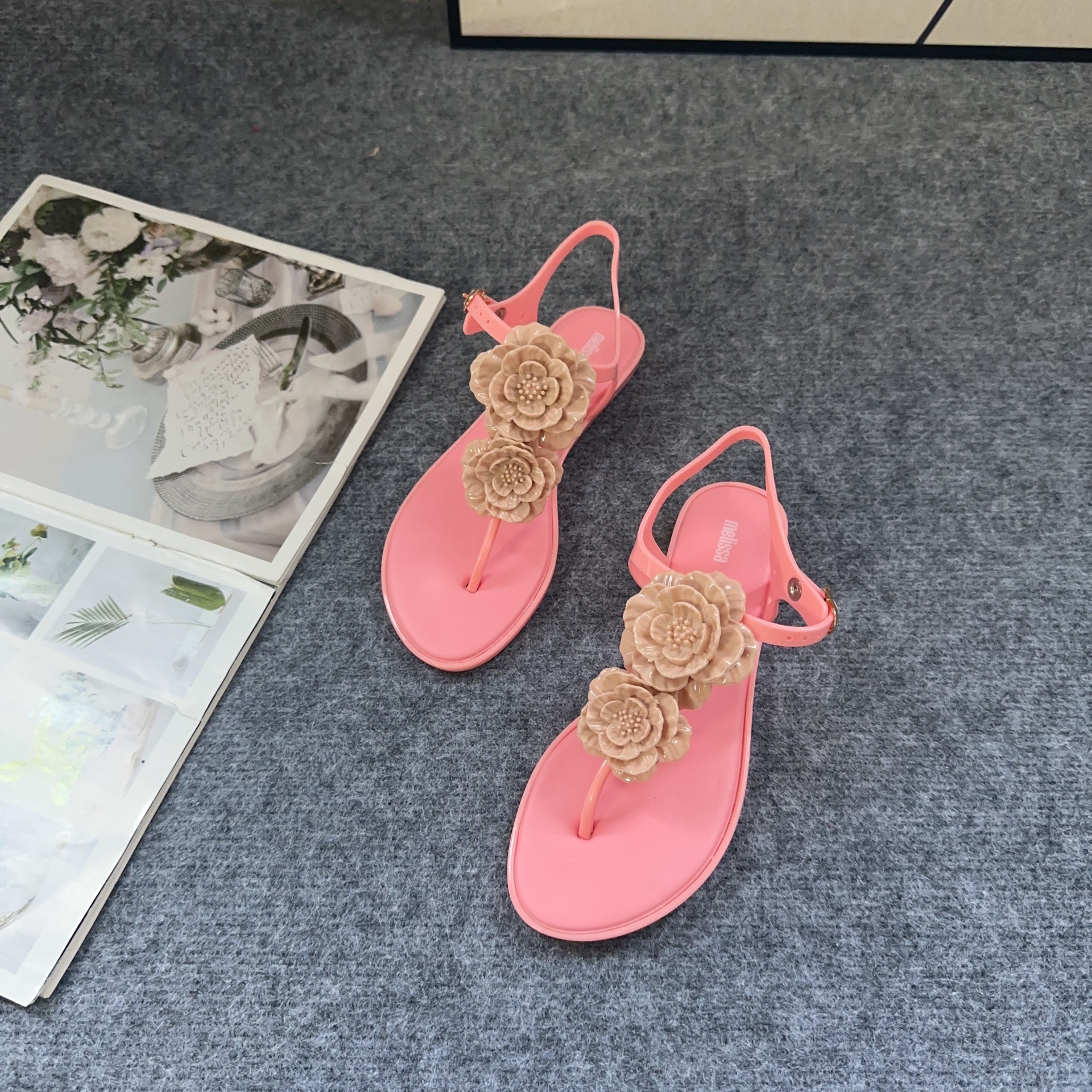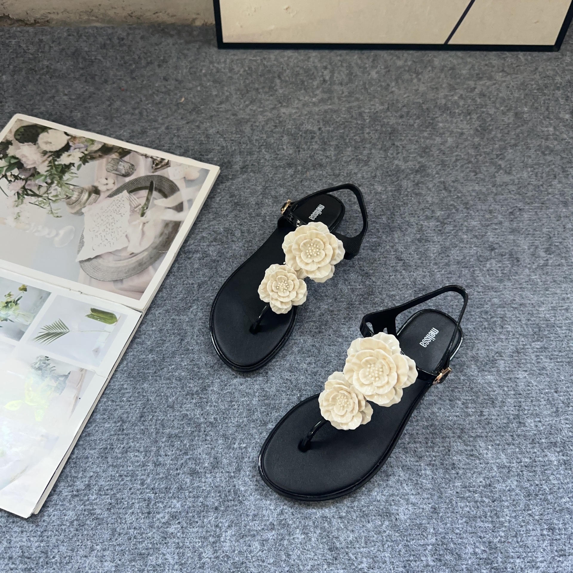 2024 메이샤 여름 스위트 카멜리아 헤링본 플랫 샌들 보헤미안 스타일 비치 슈즈