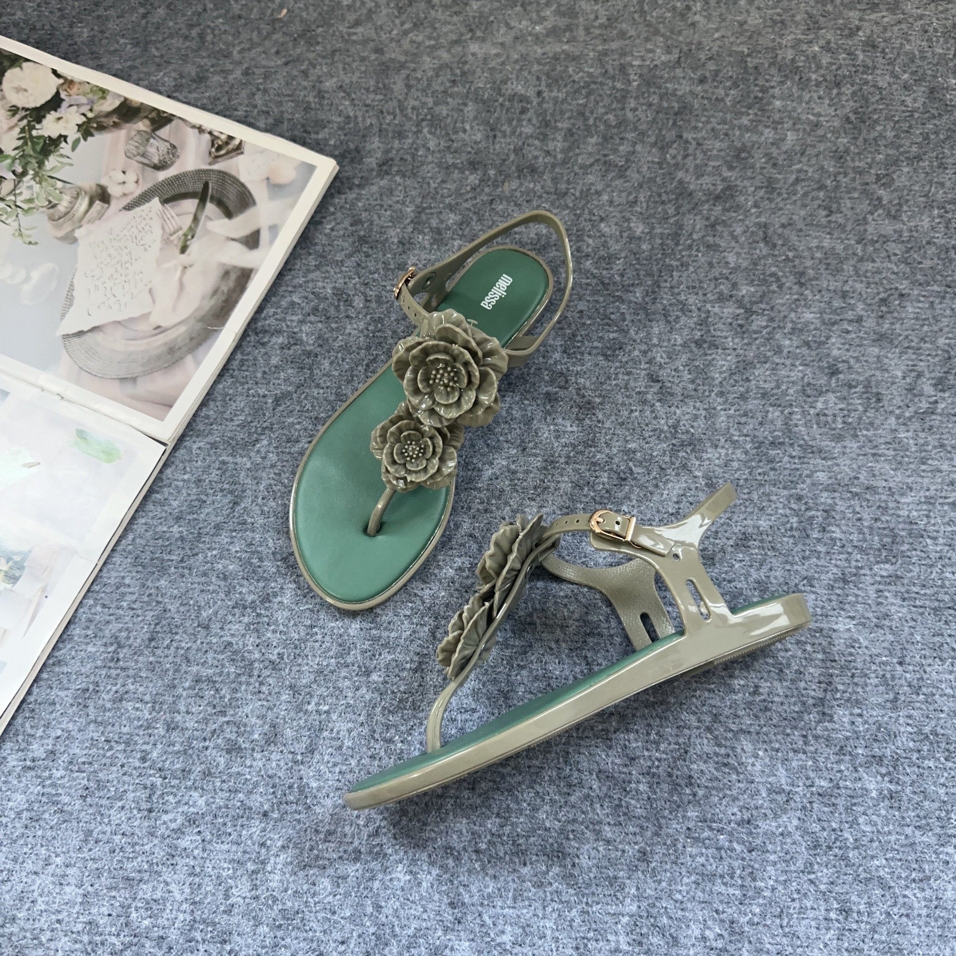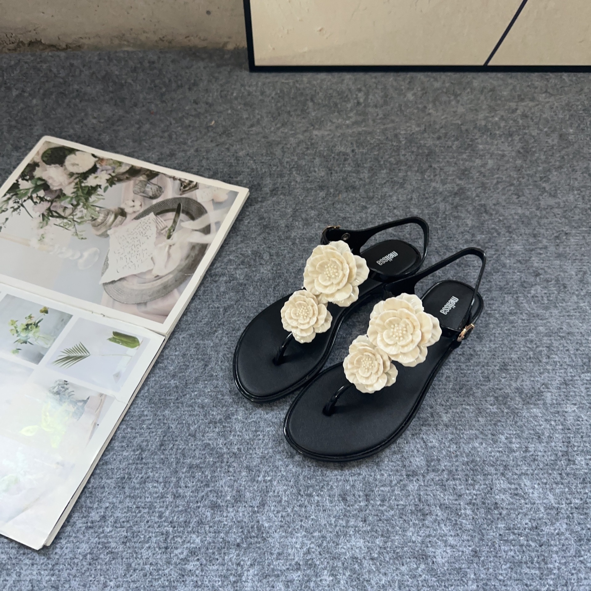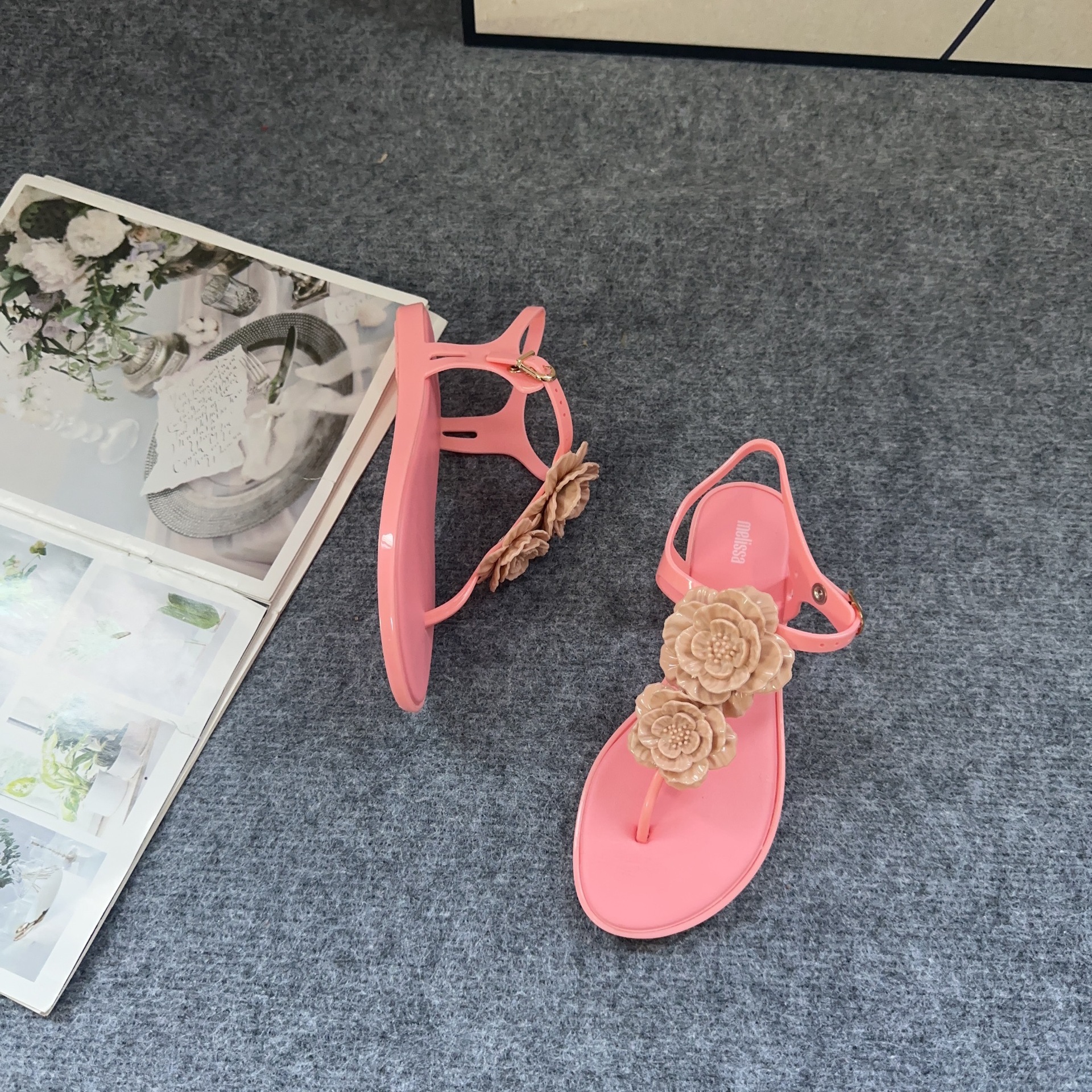 2024 메이샤 여름 스위트 카멜리아 헤링본 플랫 샌들 보헤미안 스타일 비치 슈즈