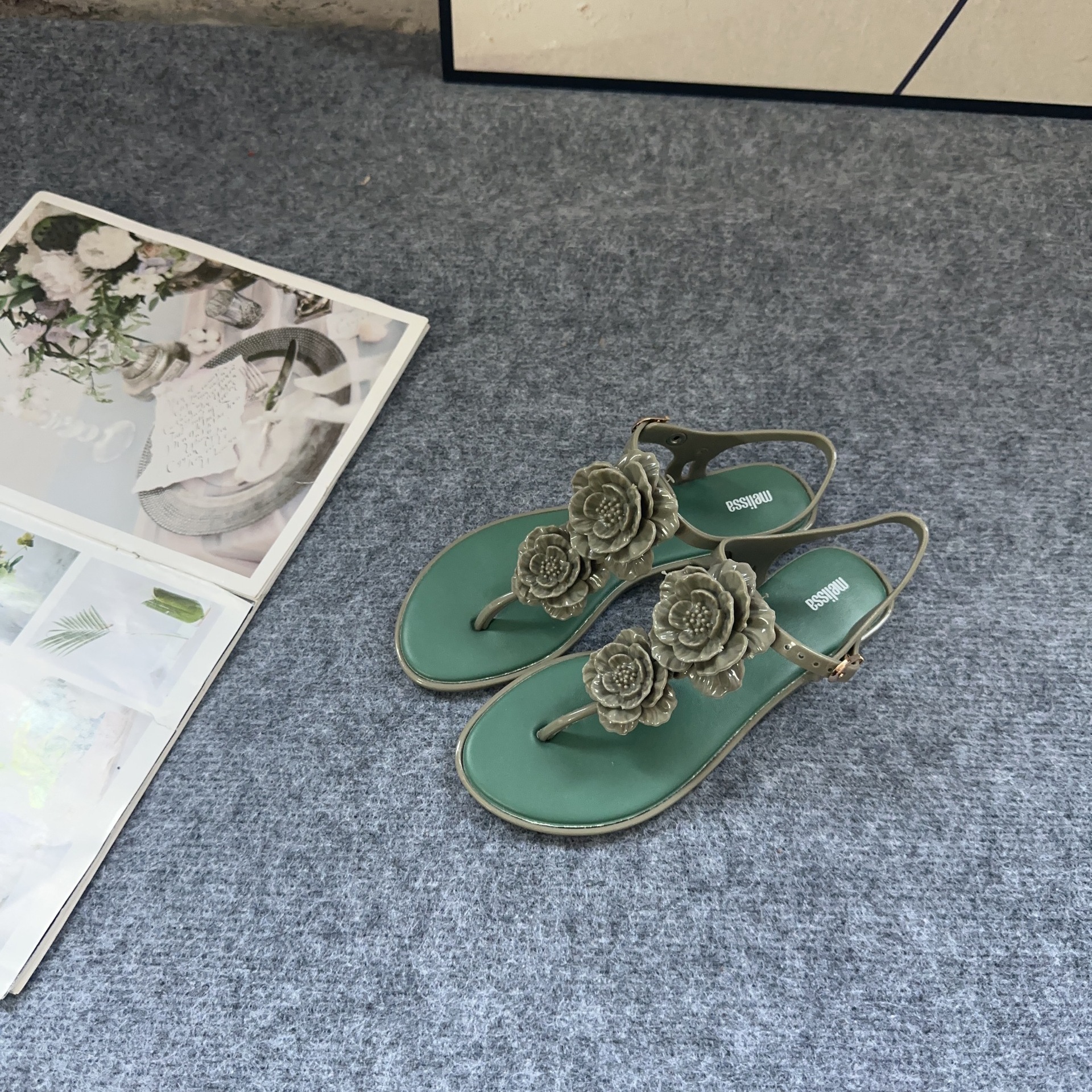 2024 메이샤 여름 스위트 카멜리아 헤링본 플랫 샌들 보헤미안 스타일 비치 슈즈스토어 가기