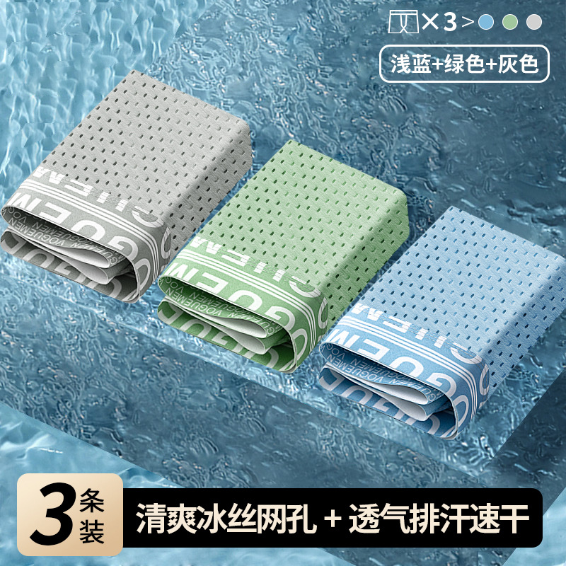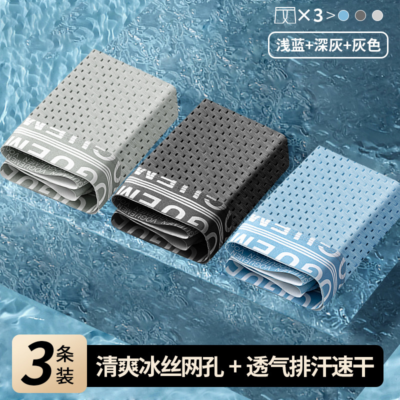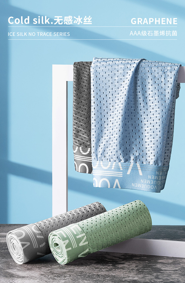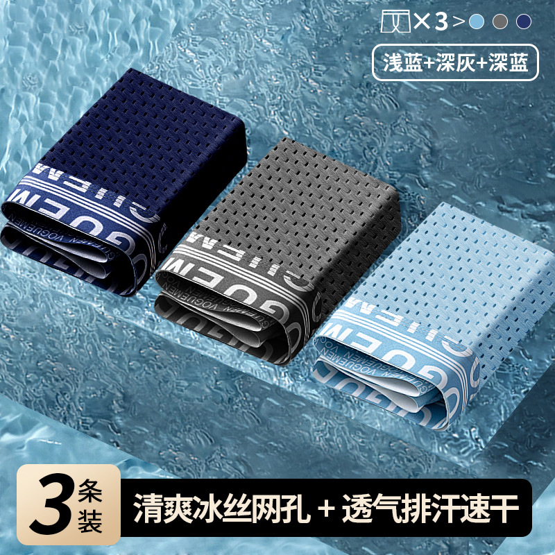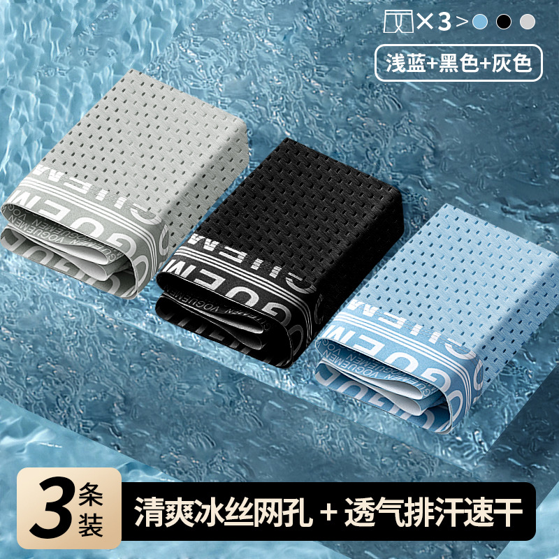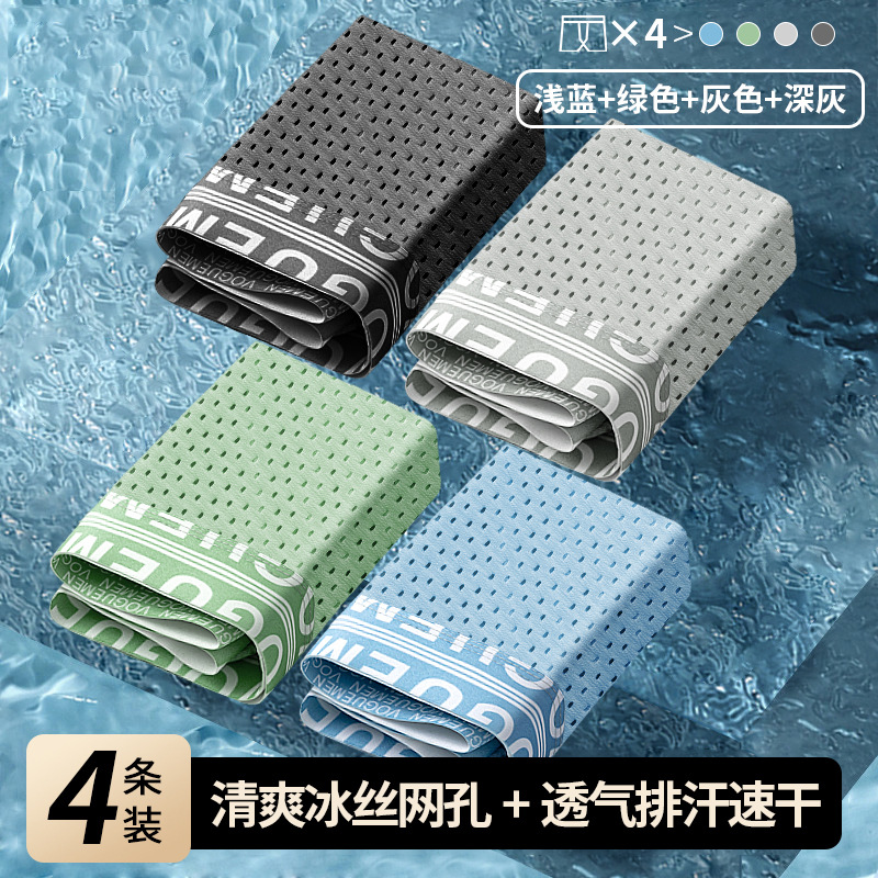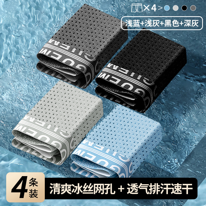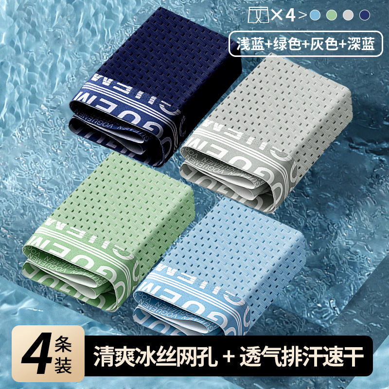 남자 아이스 실크 속옷 얇은 통기성 메쉬 아이스 실크 4 코너 반바지 원피스 솔리드 컬러 편안한 남성 속옷스토어 가기