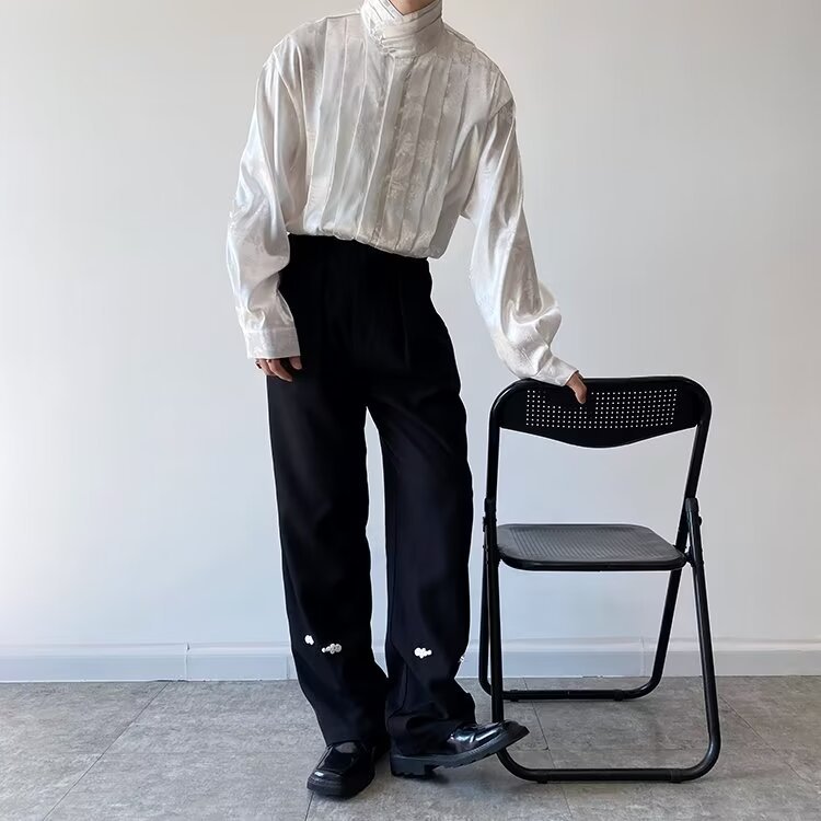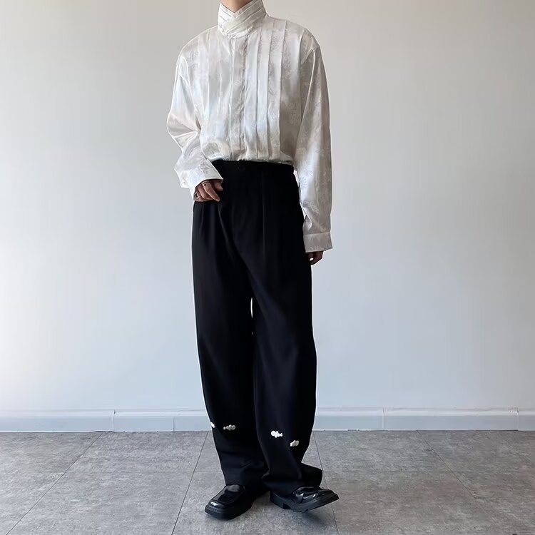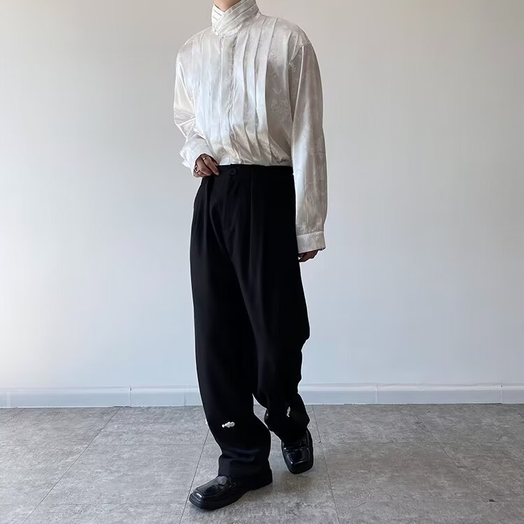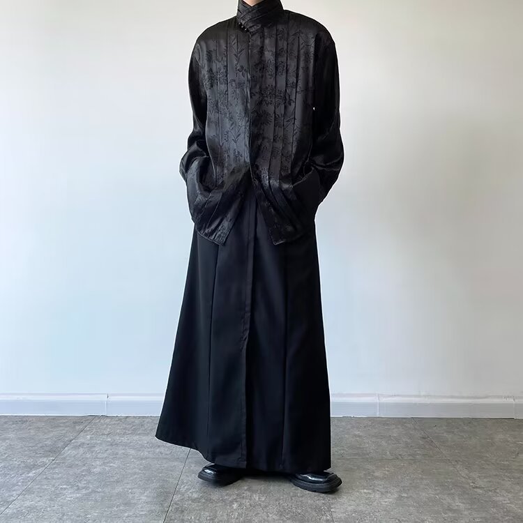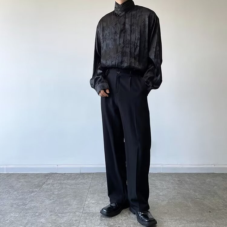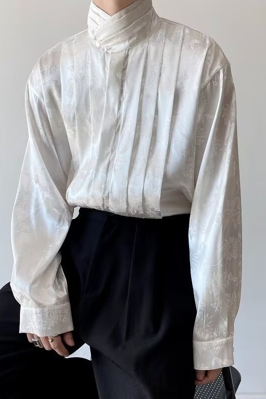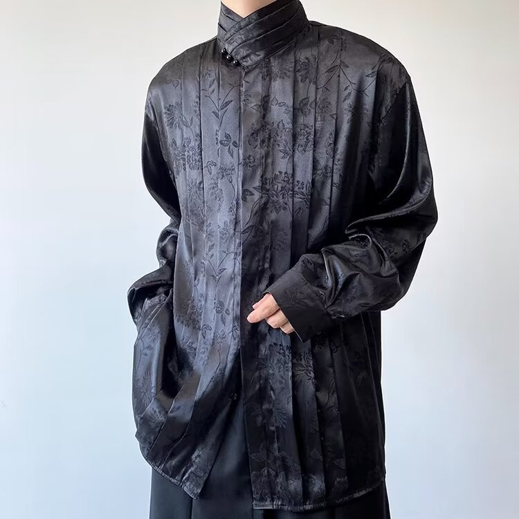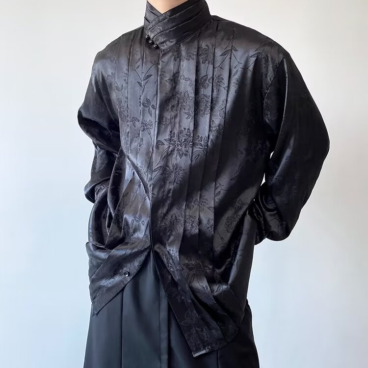 새로운 중국 스타일 자카드 자수 셔츠 남자의 긴 소매 봄과 가을 스타일 국가 스타일 디자인 오버 사이즈 재킷 수직 칼라스토어 가기