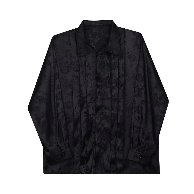 새로운 중국 스타일 자카드 자수 셔츠 남자의 긴 소매 봄과 가을 스타일 국가 스타일 디자인 오버 사이즈 재킷 수직 칼라