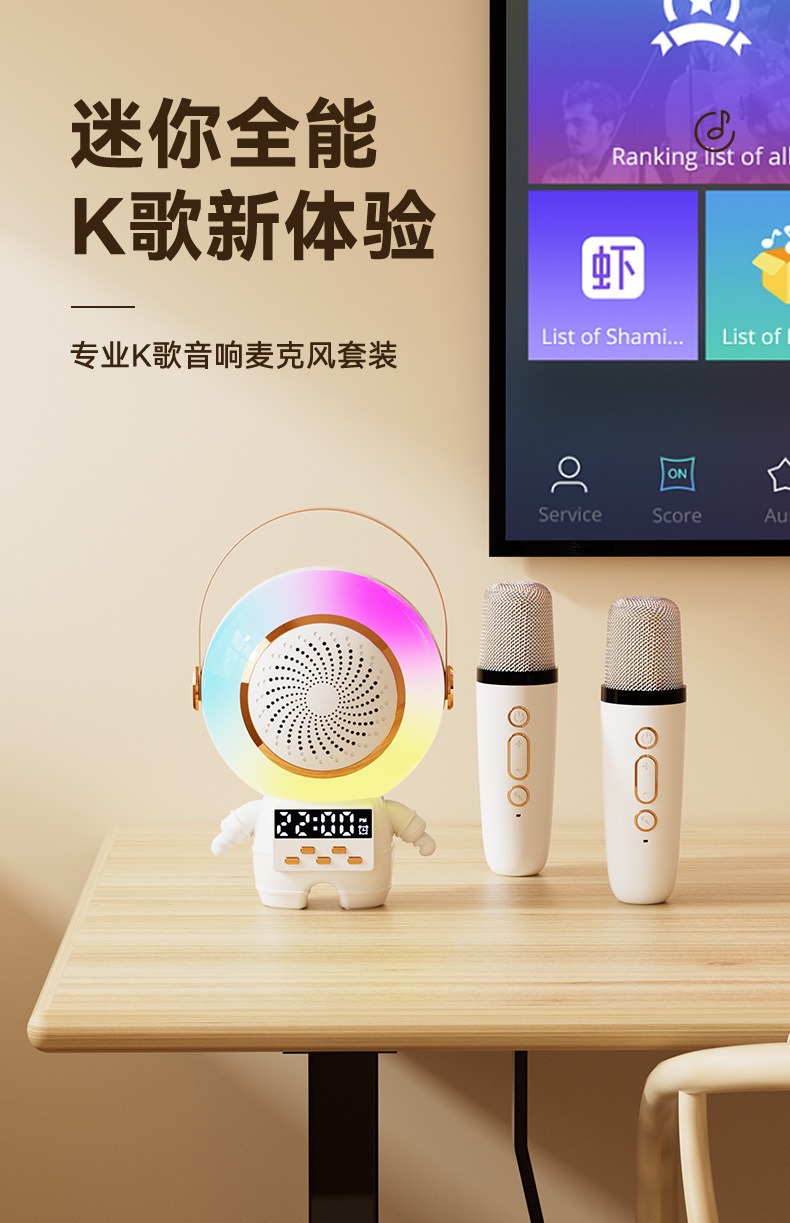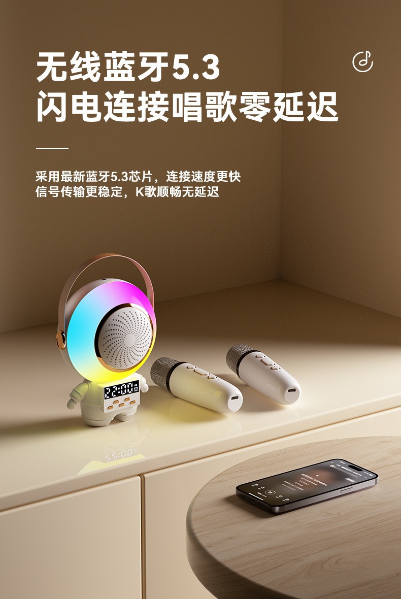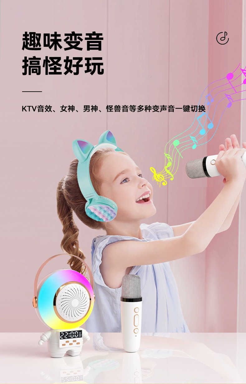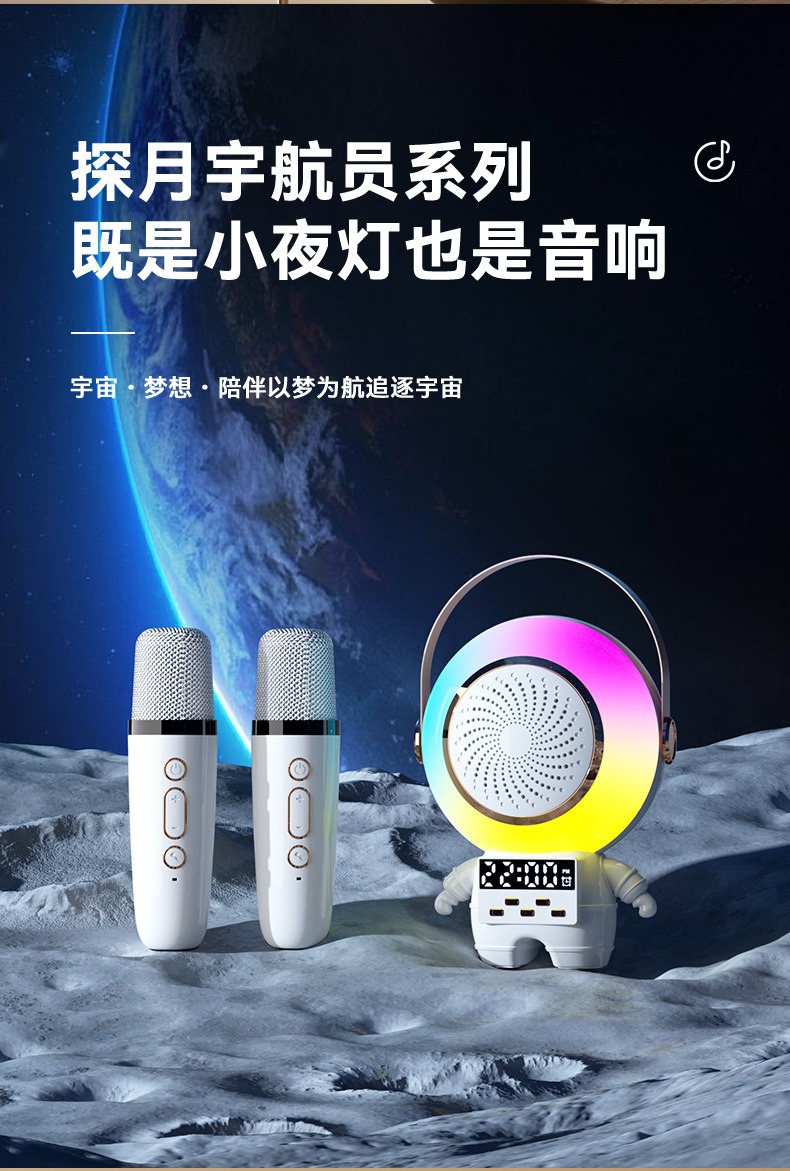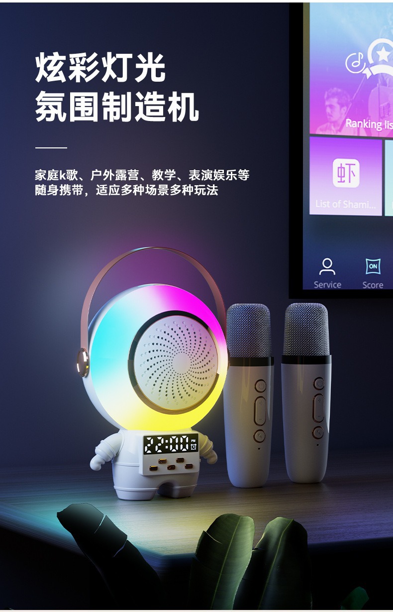 새로운 스페이스 맨 블루투스 오디오 K-노래 마이크 RGB 분위기 빛 서브 우퍼 스피커 무선 K-노래 바오 오디오스토어 가기