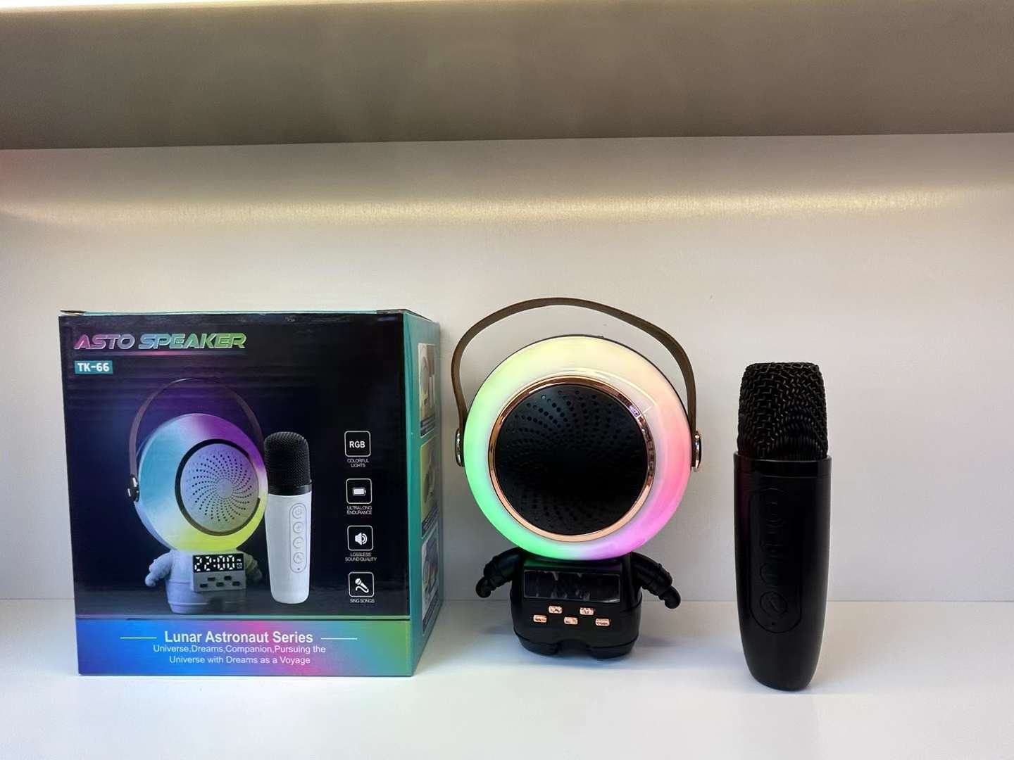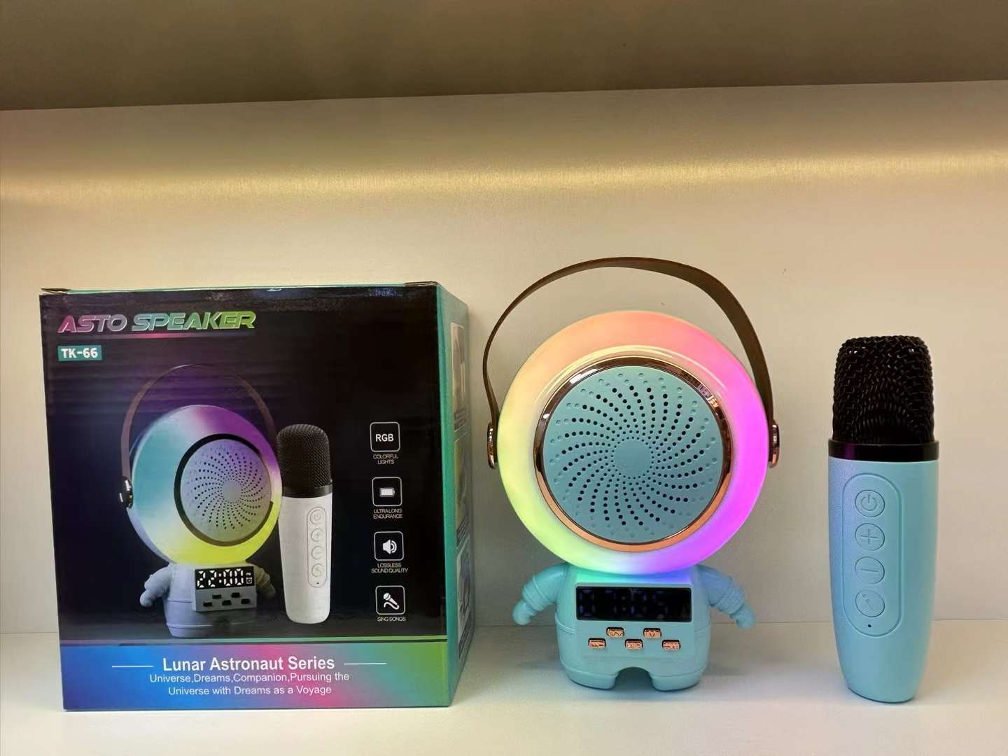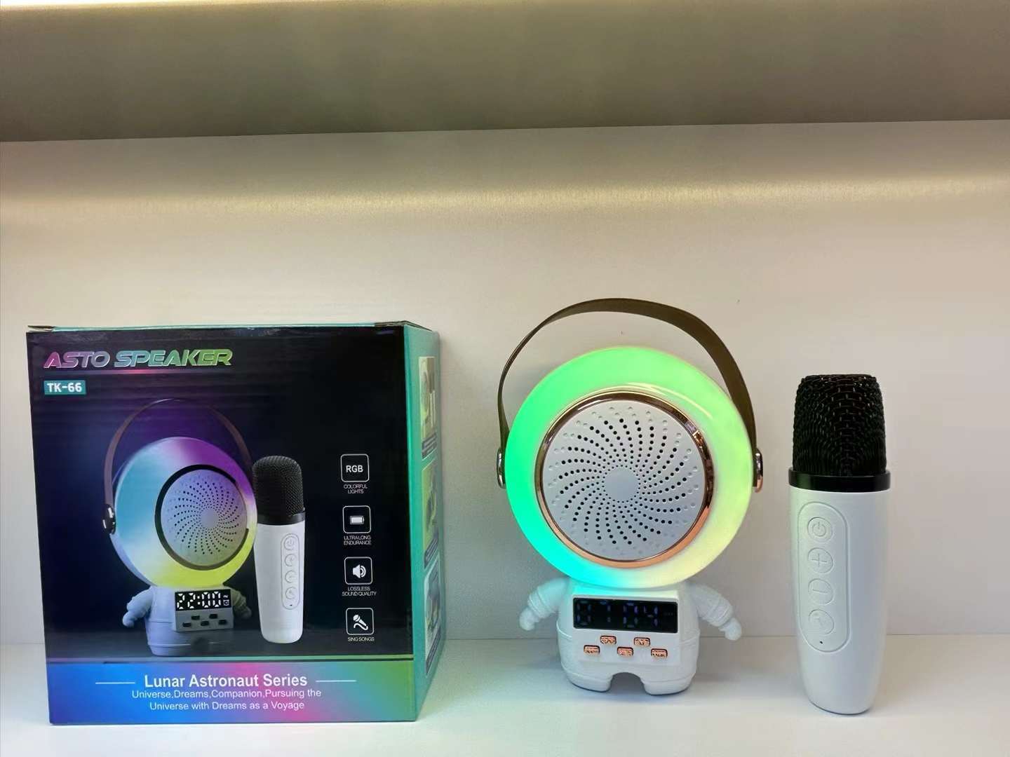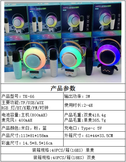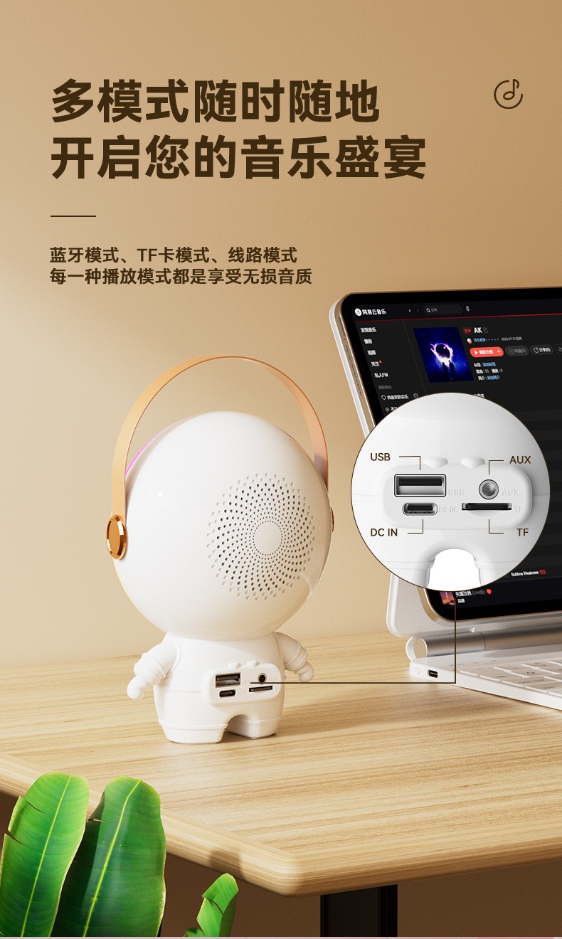 새로운 스페이스 맨 블루투스 오디오 K-노래 마이크 RGB 분위기 빛 서브 우퍼 스피커 무선 K-노래 바오 오디오스토어 가기