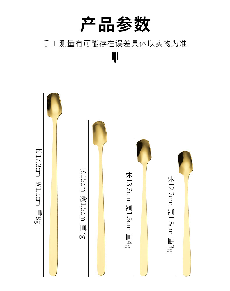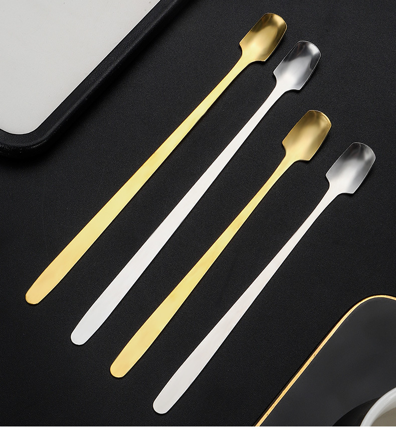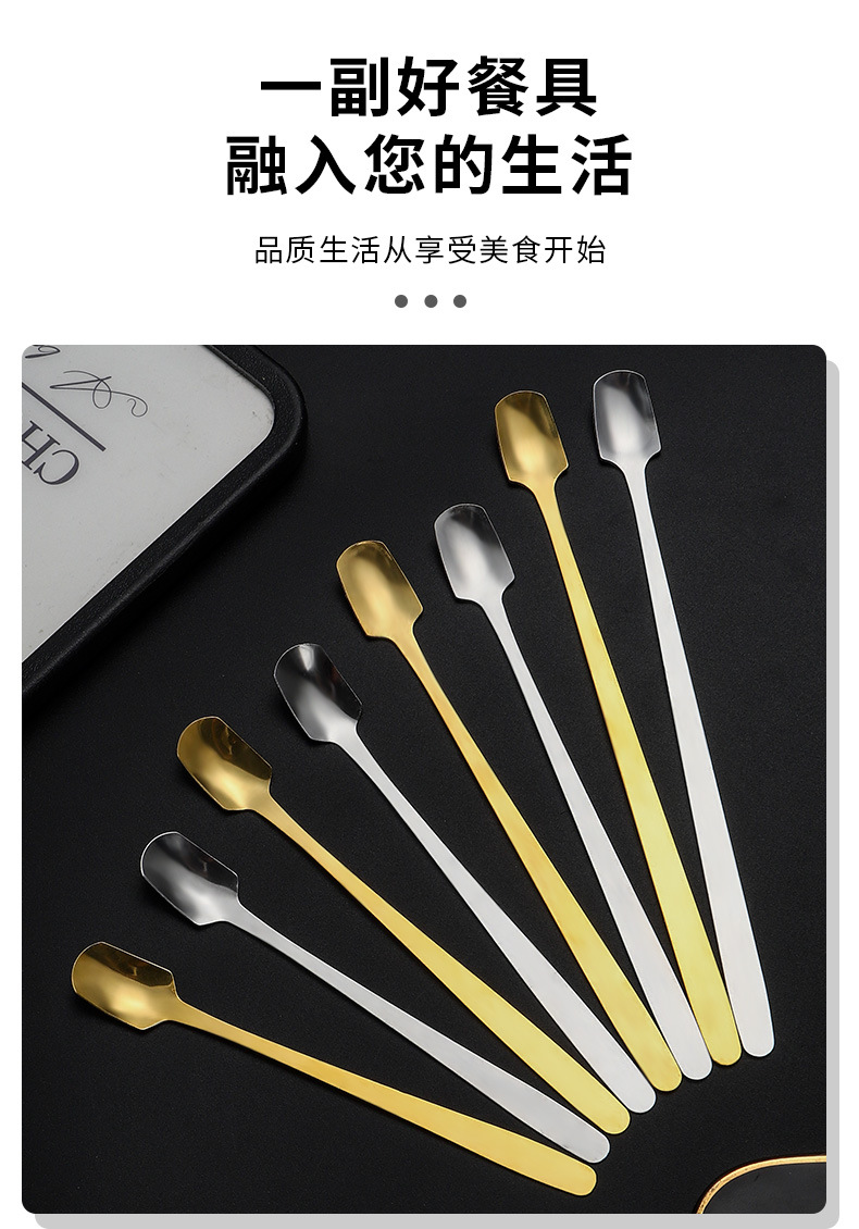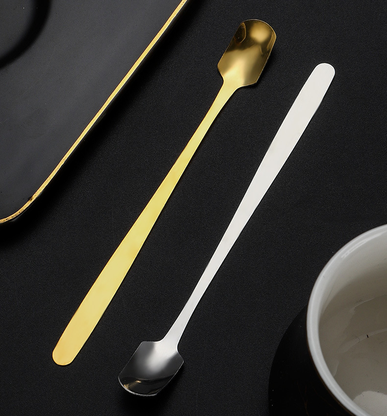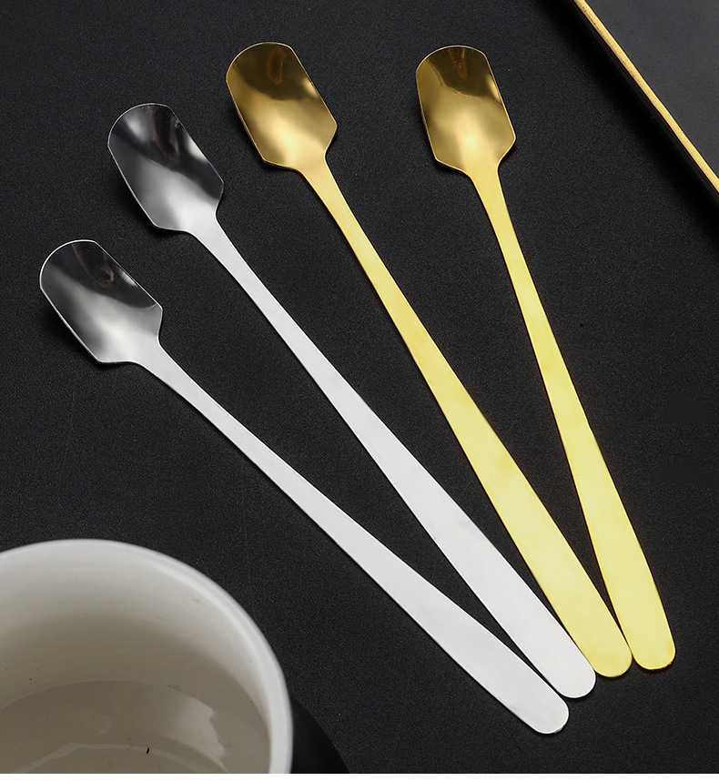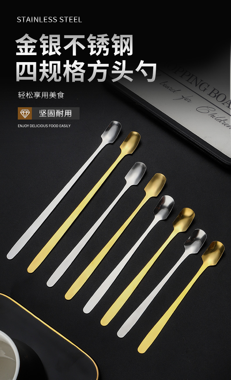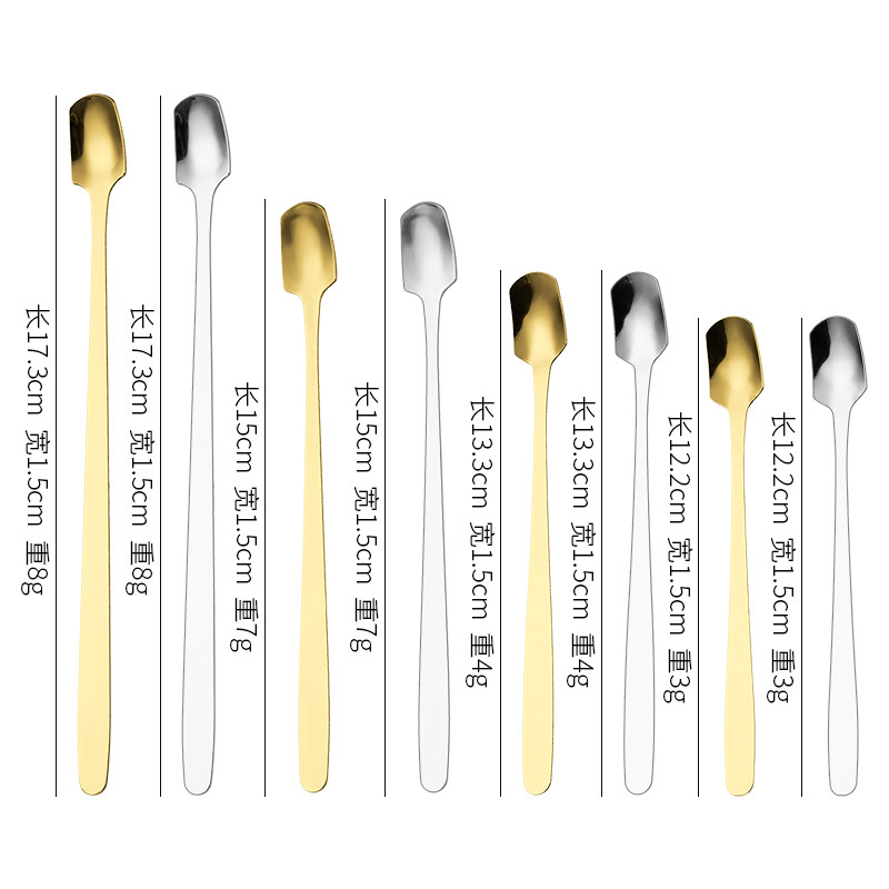 스테인레스 스틸 스퀘어 헤드 스푼 크리 에이 티브 머그잔 가정용 긴 손잡이 작은 얼음 스푼 믹싱 스푼 선물 스푼 식사 스푼 디저트 스푼 배치