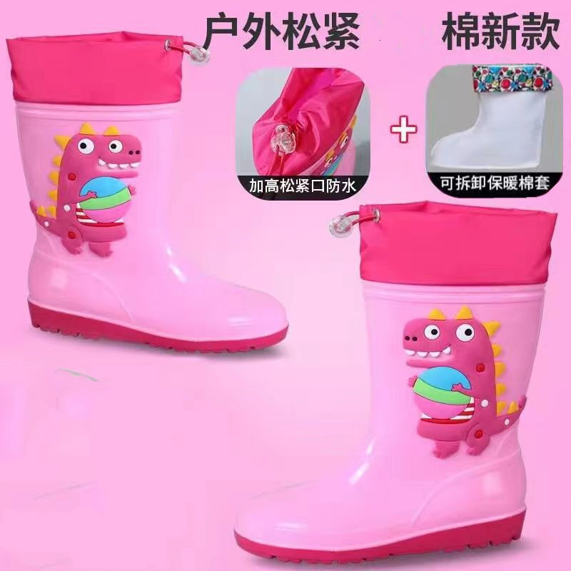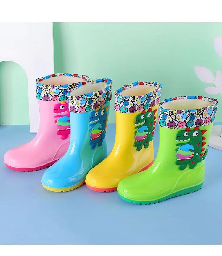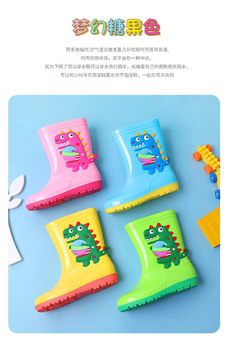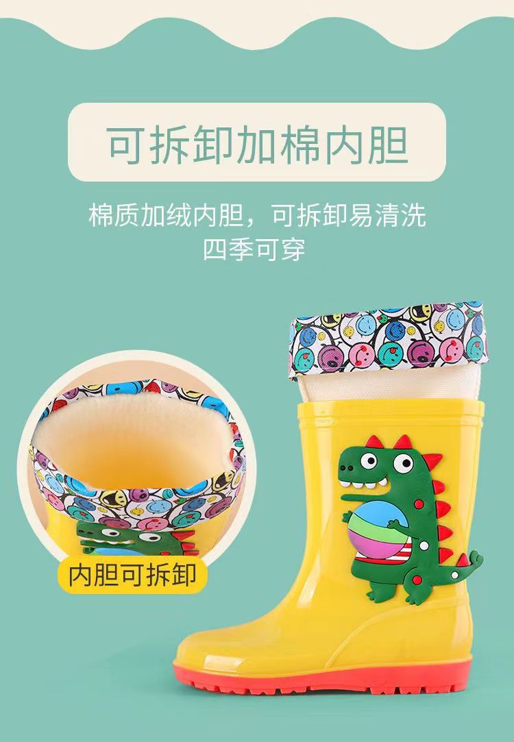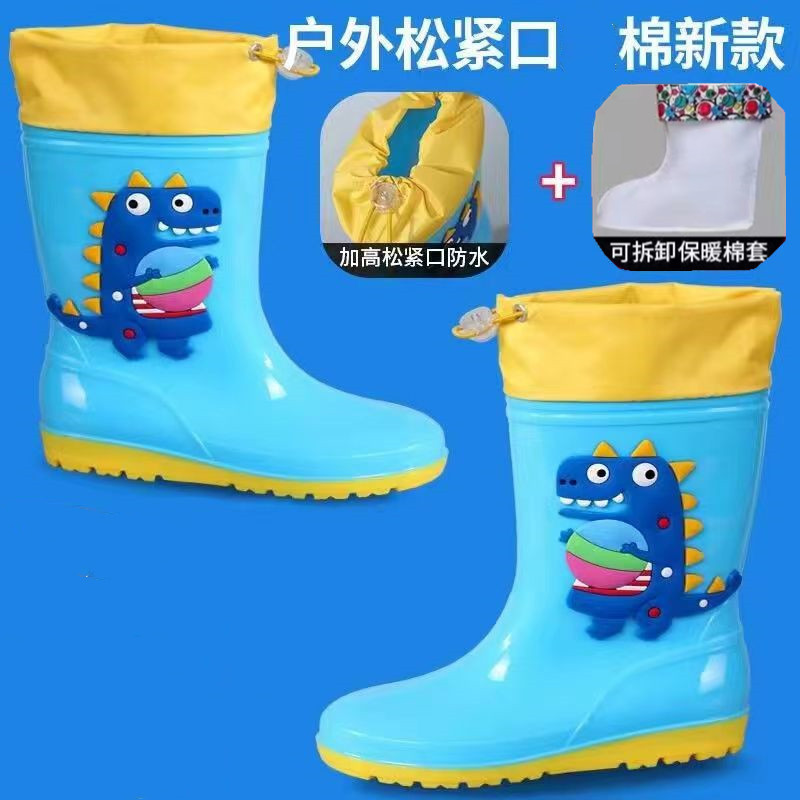 만화 공룡 어린이 장화 패션 컬러 매칭 장화 야외 푸들 미끄럼 방지 어린이 물 신발 따뜻한 커버 고무 신발스토어 가기
