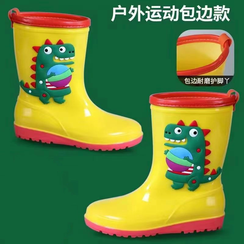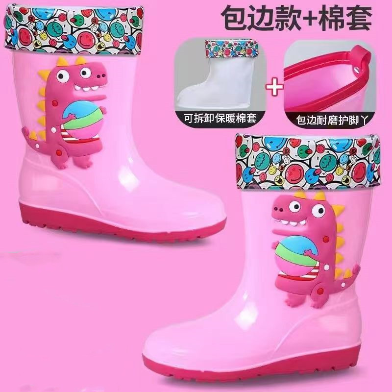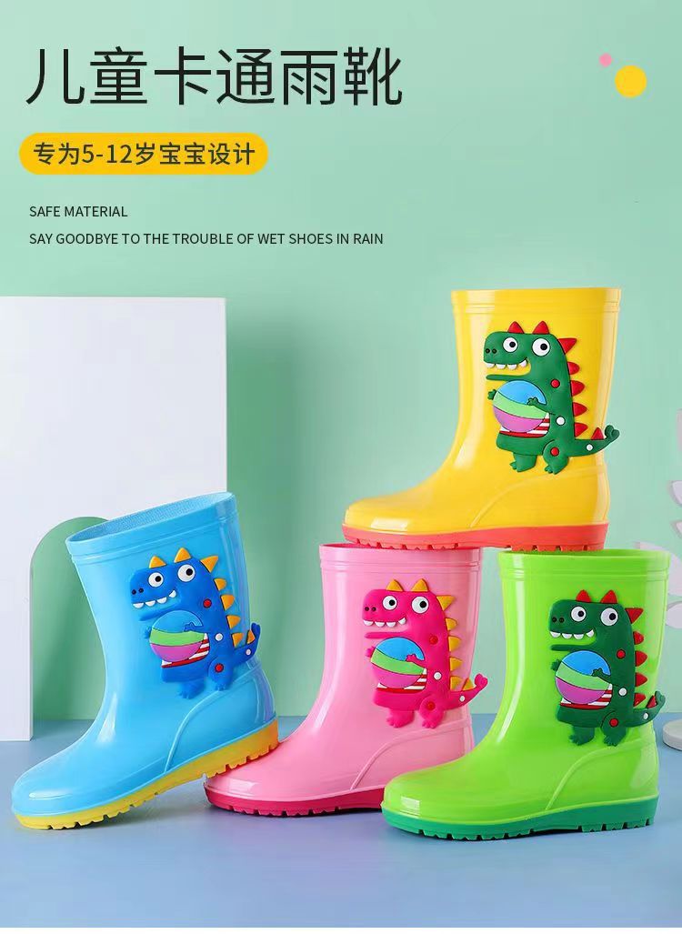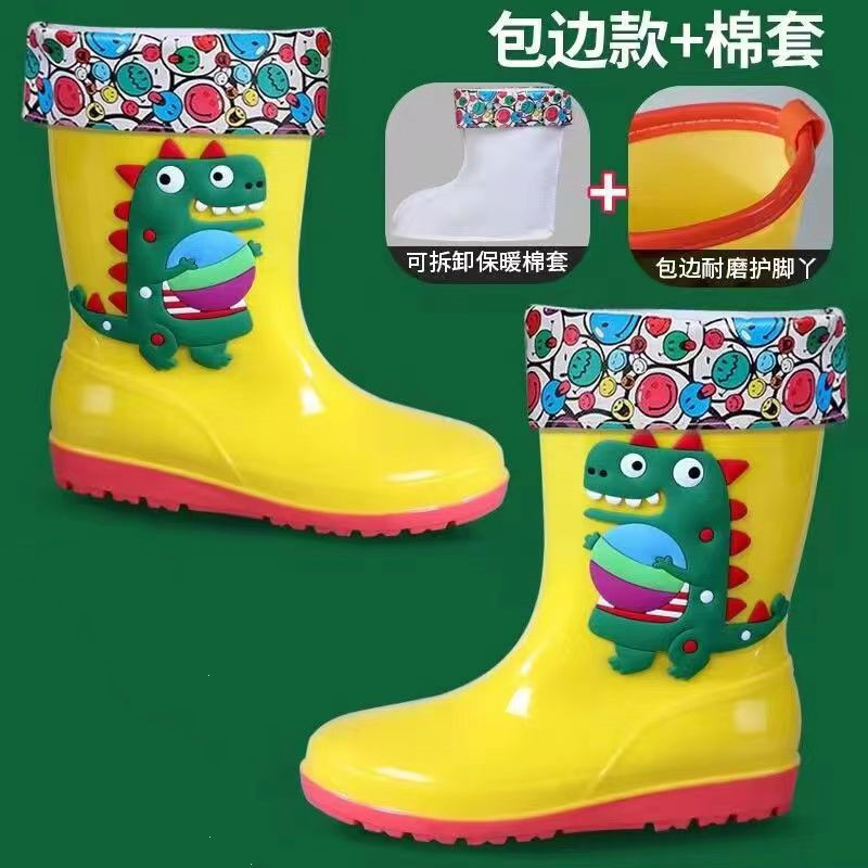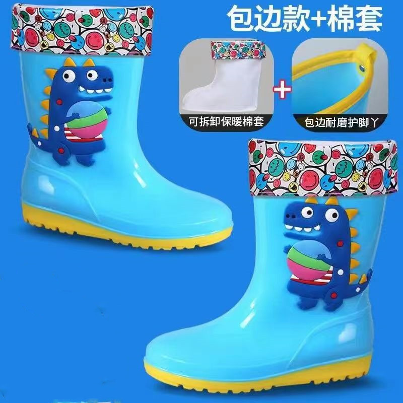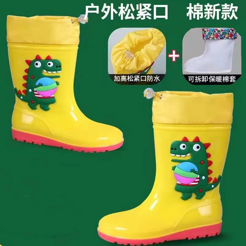 만화 공룡 어린이 장화 패션 컬러 매칭 장화 야외 푸들 미끄럼 방지 어린이 물 신발 따뜻한 커버 고무 신발스토어 가기